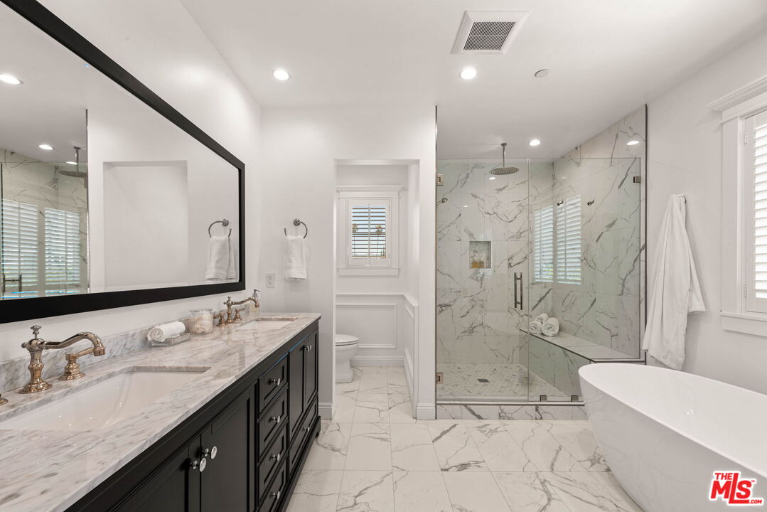 5235 Sylmar Avenue is a modern Cape Cod meticulously built in 2018 that blends timeless charm with effortless luxury. With 3,375+ sq ft, 5 bedrooms, and 5 bathrooms, this home was designed for comfort, style, and seamless indoor-outdoor living. As you enter through the inviting front porch and you're met with soaring coffered ceilings, beautiful wainscoting, wide-plank hardwood floors, and natural light at every turn. The open layout flows perfectly: a formal living room with fireplace, an elegant dining room, and a spacious family room that opens to the backyard through oversized sliding doors. At the center of it all is the chef's kitchen-custom cabinetry, quartz counters, a large island with bar seating, high-end stainless steel appliances, and a walk-in pantry. Whether it's quick weekday meals or weekend hosting, this space delivers.Upstairs, the primary suite is a true retreat with vaulted ceilings, a spa-inspired bath (soaking tub, oversized glass shower, dual vanities), and a generous walk-in closet. Four additional en-suite bedrooms provide comfort and privacy for family and guests, and a versatile loft plus upstairs laundry add everyday convenience. The backyard is your private escape: sparkling pool and spa, built-in BBQ, covered patio, and lush greenery-perfect for gatherings, lounging, or quiet evenings under the stars. Additional perks include smart-home features, custom lighting, designer fixtures, and a two-car garage with direct access. Every detail has been thoughtfully curated for turnkey living. Tucked away on a quiet, tree-lined street in Sherman Oaks-yet just minutes from Ventura Blvd's dining, shops, and canyon access-this home offers the best of Southern California living: classic style, modern luxury, and an unbeatable location. Don't miss your chance to call this exceptional residence home.