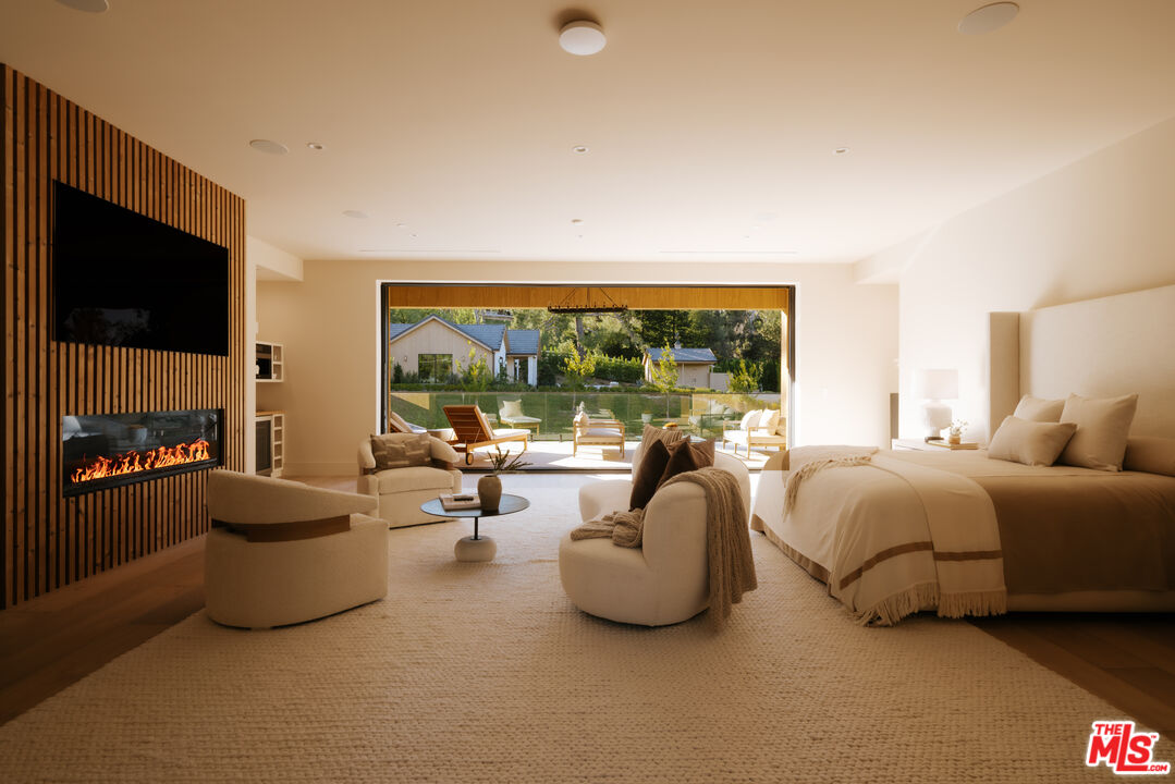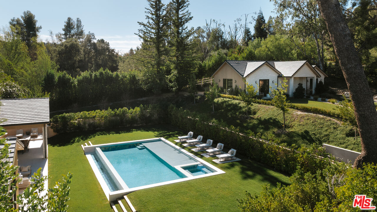 Tucked behind the gates of Hidden Hills, this modern estate unfolds like a private resort, offering over 16,000 square feet of effortless luxury. A dramatic entry and sculptural staircase open to expansive living spaces and a statement kitchen with dual waterfall islands, premium appliances, and a fully outfitted chef's kitchen. Glass walls slide away to reveal a resort-style backyard with a reverse infinity-edge pool, spa, fire features, intimate lounge areas, and a refined guest house. The primary suite is calm and indulgent with a private terrace, spa-inspired bath, and dual custom closets, while the lower level elevates daily living with a wellness-focused retreat featuring a fitness studio, theater, cocktail bar, game room, sauna, steam room, cold plunge, and massage suite. Private, polished, and impeccably executed, this is luxury living at its highest level in Hidden Hills.