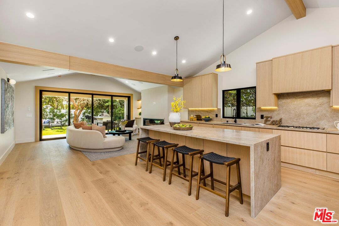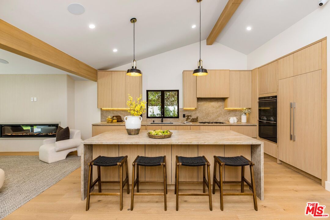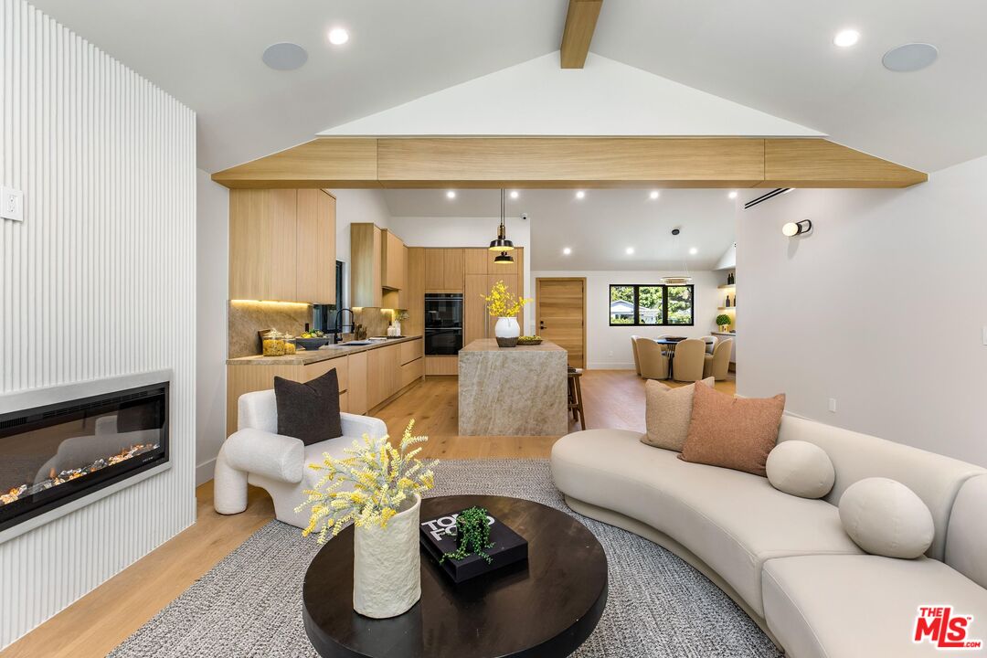 Situated on a tranquil street in the heart of Sherman Oaks, this stunning single-level residence has been thoughtfully reimagined with refined style and understated elegance. Featuring four bedrooms and three and a half bathrooms, the home showcases a generous open layout designed for both effortless living and elevated entertaining. At its center, a gourmet kitchen impresses with Fisher & Paykel appliances, sleek light-toned cabinetry, and an oversized island with bar seating, ideal for casual gatherings or everyday meals. The kitchen flows seamlessly into the living and dining areas, where a modern electric fireplace and pocket glass doors create a sophisticated connection to the backyard oasis. Down the main hallway are three bedrooms, including a serene primary suite featuring dual walk-in closets, direct access to the backyard, and a spa-like ensuite bath with a floating double vanity and expansive step-in shower with a built-in bench. A final bedroom is tucked away in the opposite wing of the home, featuring its own en-suite bath with a stone-topped vanity and luxurious step-in shower. A thoughtfully designed laundry area off of the bedroom completes the space with a deep sink, generous counter space, and additional storage. Designed for year-round enjoyment, the lush backyard embodies the best of California living with a built-in BBQ, sleek fire pit, and ample seating for gatherings under the stars. Ideally located moments from Westfield Fashion Square and the shops and restaurants of Ventura Boulevard, this turnkey home blends contemporary luxury with everyday convenience. Also available for least at $11,000//month.