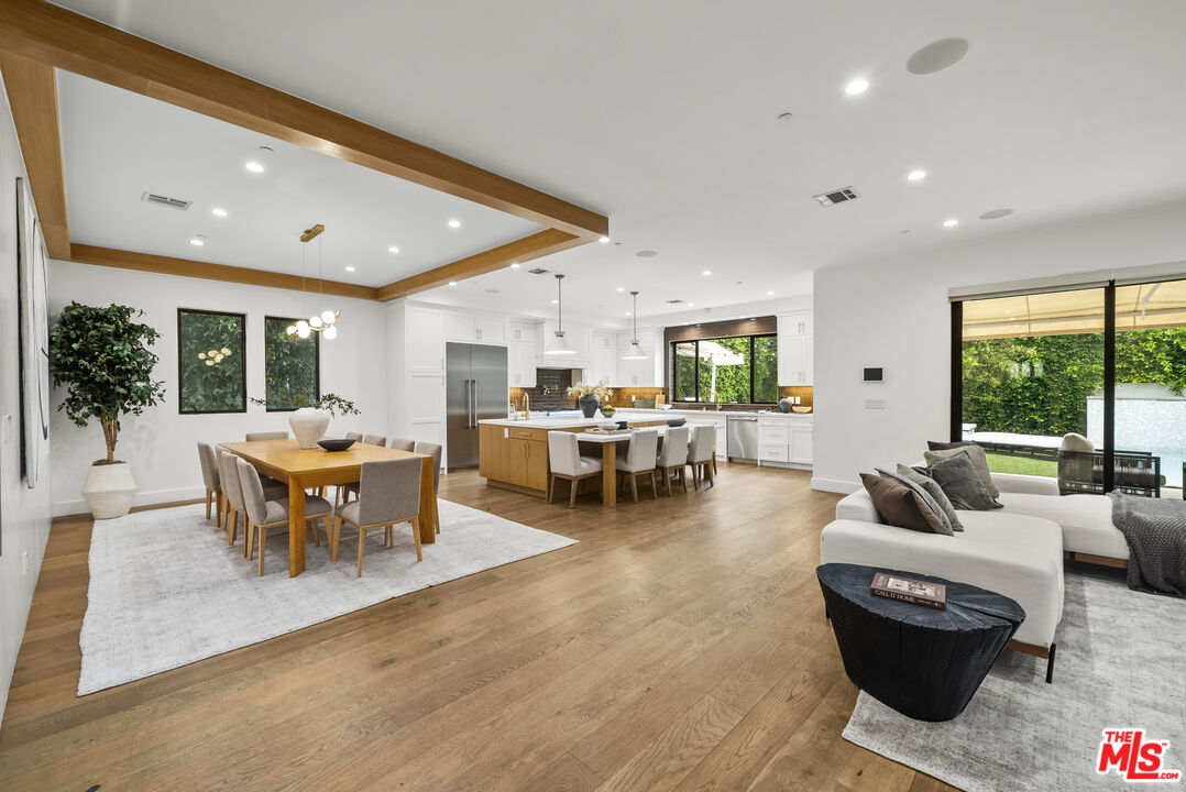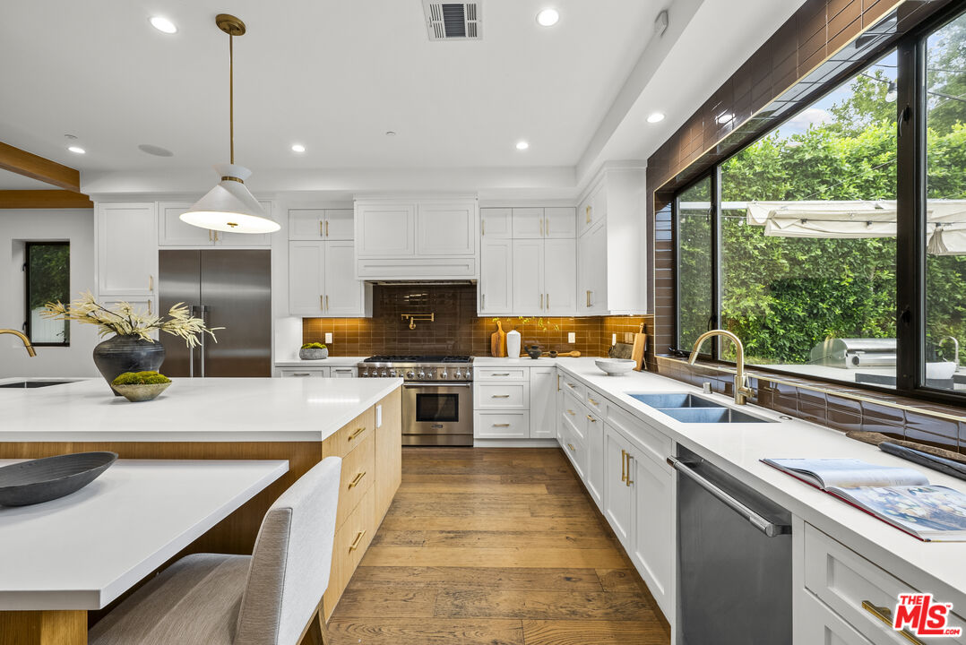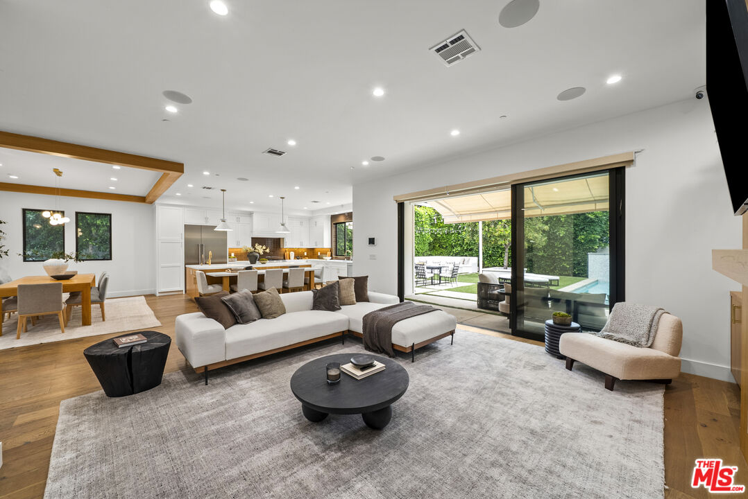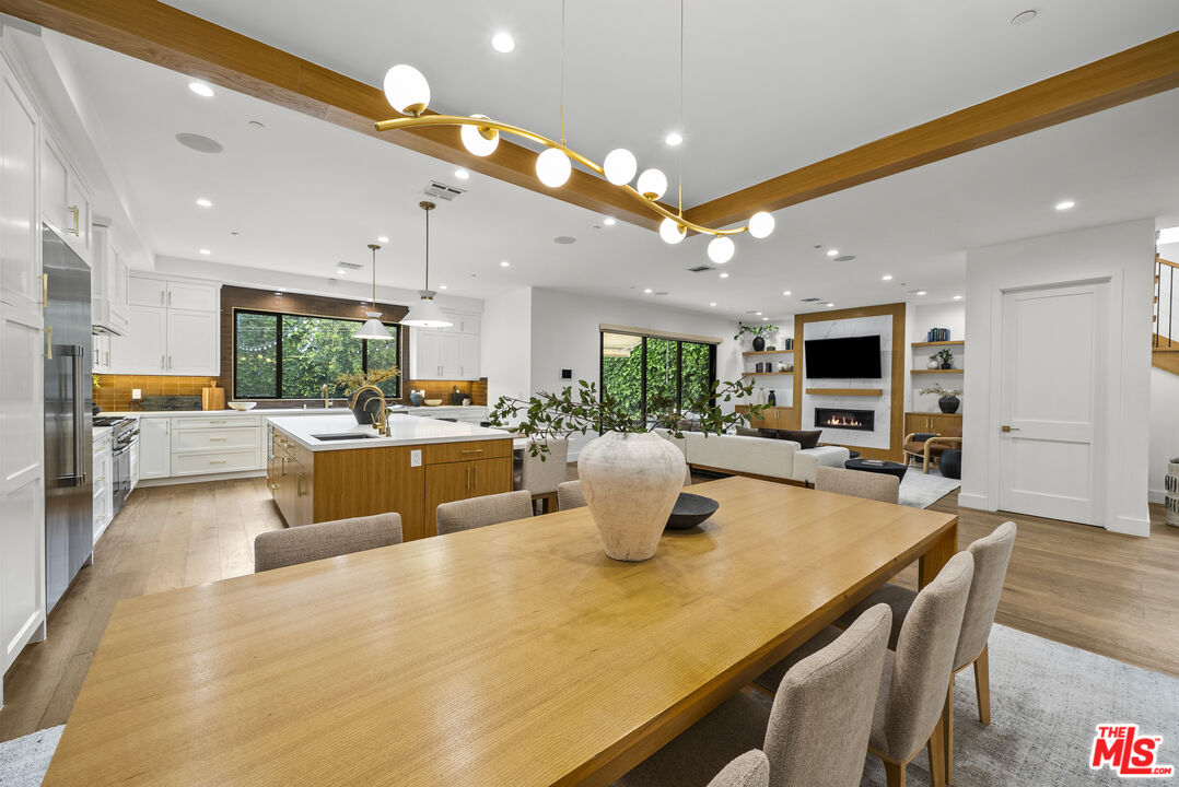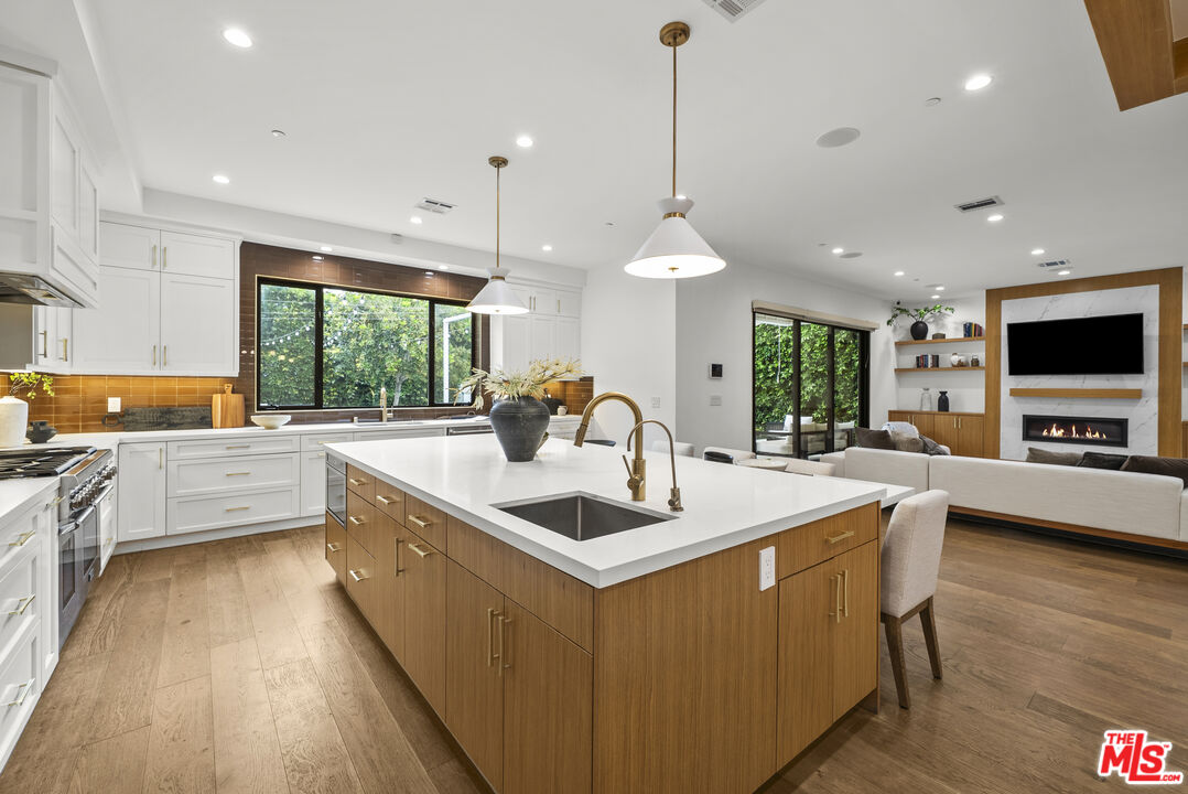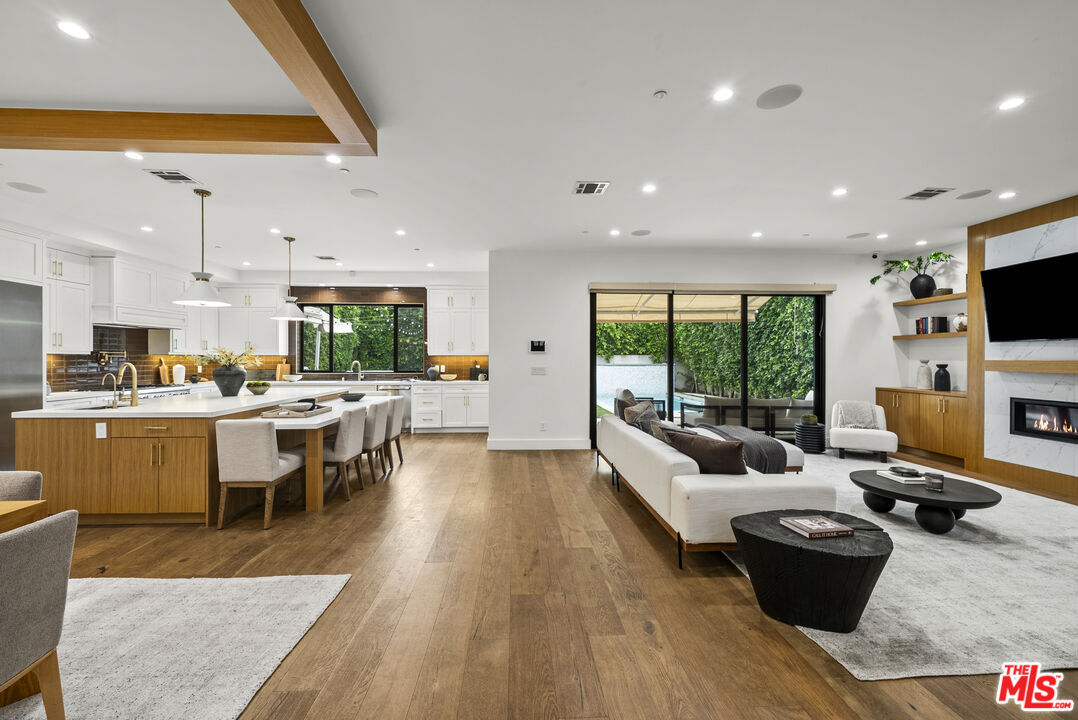 Beautiful newer home in an amazing school district, ideally located in one of Sherman Oaks' most desirable neighborhoodsjust an easy walk to Kester Elementary and close to top private schools.This thoughtfully designed 5-bedroom, 4.5-bath residence offers an open-concept layout with high ceilings, hardwood floors, and seamless indoor-outdoor flow. The chef's kitchen features custom cabinetry, quartz countertops, and premium Thermador appliances, opening to spacious living and dining areas perfect for everyday living and entertaining.The primary suite is a true retreat with a private balcony, fireplace, walk-in closet, and spa-style bath with soaking tub and dual vanities. Additional highlights include two indoor gas fireplaces, built-ins, office, laundry room, security system, and in-ceiling speakers for surround sound and whole-home audio.Designed for entertaining, the backyard features a saltwater pool and spa with waterfall, outdoor seating with gas fire pit, built-in BBQ, string lighting, and retractable awnings. Mature ficus hedges provide privacy, complemented by fruit trees and drought-tolerant landscaping.Modern upgrades include solar panels (2021), upgraded electrical panel with EV charger, and reverse osmosis water filtration system.