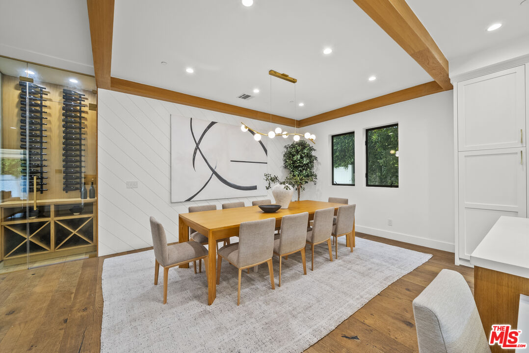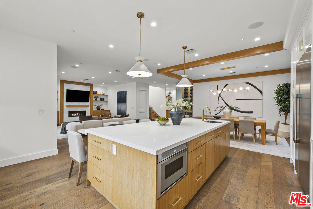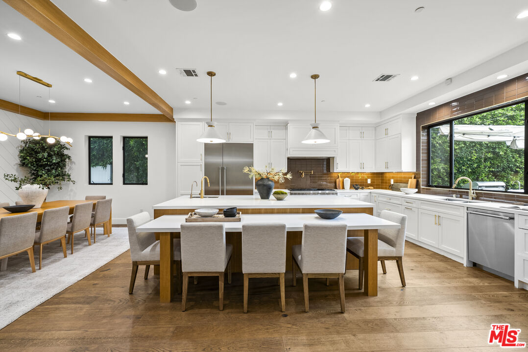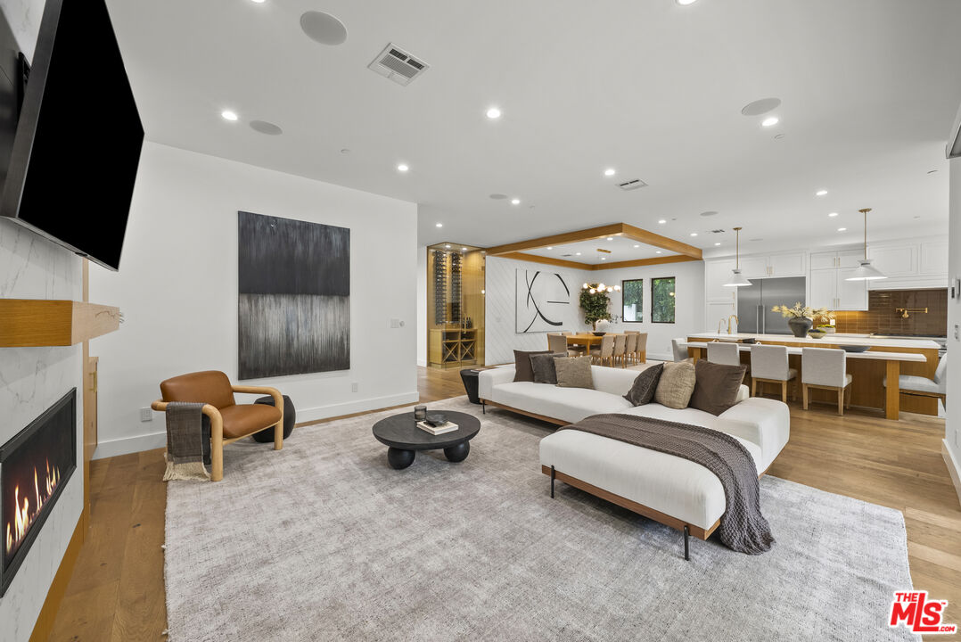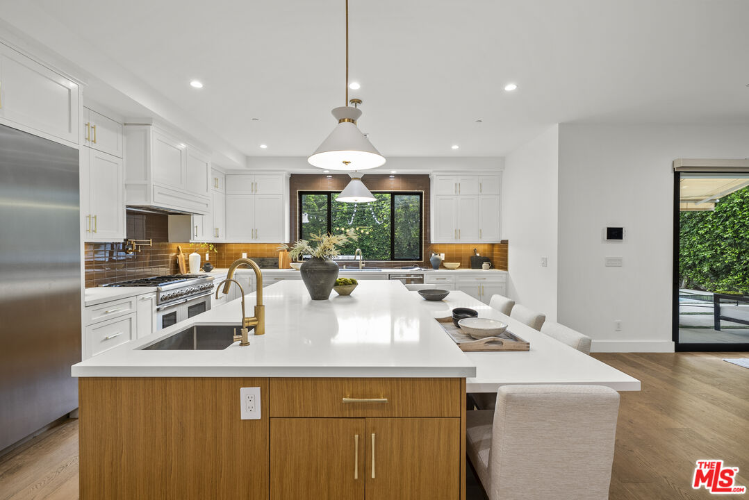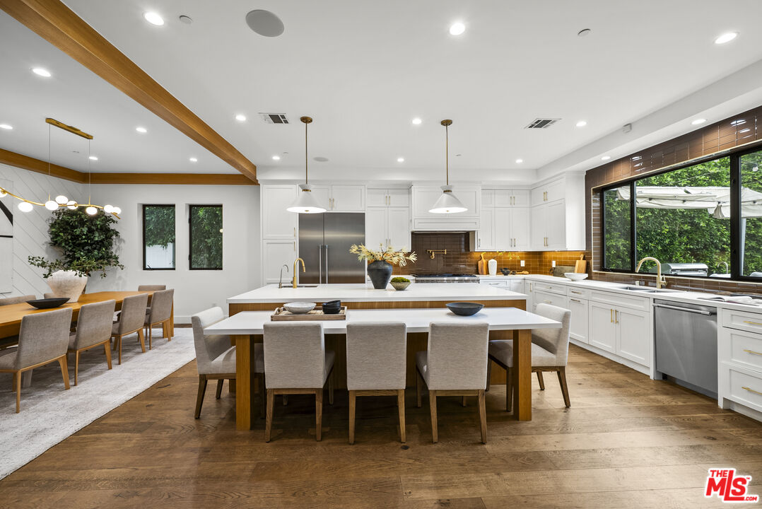 Beautiful newer home in an amazing school district, ideally located in one of Sherman Oaks' most desirable neighborhoodsjust an easy walk to Kester Elementary and close to top private schools.This thoughtfully designed 5-bedroom, 4.5-bath residence offers an open-concept layout with high ceilings, hardwood floors, and seamless indoor-outdoor flow. The chef's kitchen features custom cabinetry, quartz countertops, and premium Thermador appliances, opening to spacious living and dining areas perfect for everyday living and entertaining.The primary suite is a true retreat with a private balcony, fireplace, walk-in closet, and spa-style bath with soaking tub and dual vanities. Additional highlights include two indoor gas fireplaces, built-ins, office, laundry room, security system, and in-ceiling speakers for surround sound and whole-home audio.Designed for entertaining, the backyard features a saltwater pool and spa with waterfall, outdoor seating with gas fire pit, built-in BBQ, string lighting, and retractable awnings. Mature ficus hedges provide privacy, complemented by fruit trees and drought-tolerant landscaping.Modern upgrades include solar panels (2021), upgraded electrical panel with EV charger, and reverse osmosis water filtration system.
