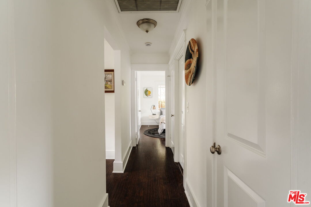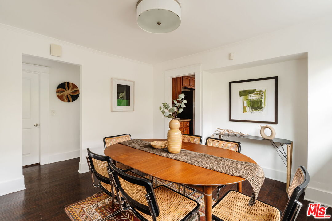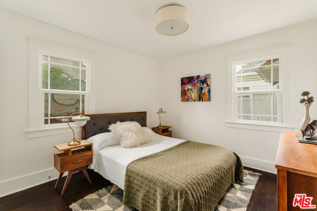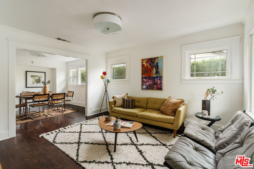 Tucked behind a redwood fence and enveloped by mature bamboo, this enchanting 1921 Craftsman reveals a serene private oasis in the heart of rapidly evolving East Hollywood. Ideally positioned near Hollywood, Silver Lake, and Los Feliz, this two-bedroom, one-bath residence beautifully blends timeless character with thoughtful modern upgrades. A welcoming front porch introduces interiors filled with warmth and light. The spacious living room flows effortlessly into a formal dining room, creating an ideal setting for both relaxed daily living and effortless entertaining. Period charm is complemented by hardwood and tile floors throughout, while solar panels offer meaningful energy efficiency. The stylishly updated kitchen features quartz countertops, generous cabinetry, and stainless steel appliances. Both bedrooms are generously sized with ample closet space and connect via a long central hallway with dual linen closets, along with a refreshed bathroom finished in a clean, modern style. Just beyond the kitchen, the backyard becomes a true extension of the home - an inviting outdoor living and dining retreat perfect for al fresco evenings and weekend gatherings. The detached rear garage includes a washer and dryer and provides valuable additional storage or off-street parking for one car. An exceptional condo alternative, this special property places you in one of the city's most dynamic neighborhoods, moments from beloved dining, nightlife, the Metro and iconic destinations including Hollywood Boulevard, the Griffith Observatory, Barnsdall Park and Sunset Junction.
