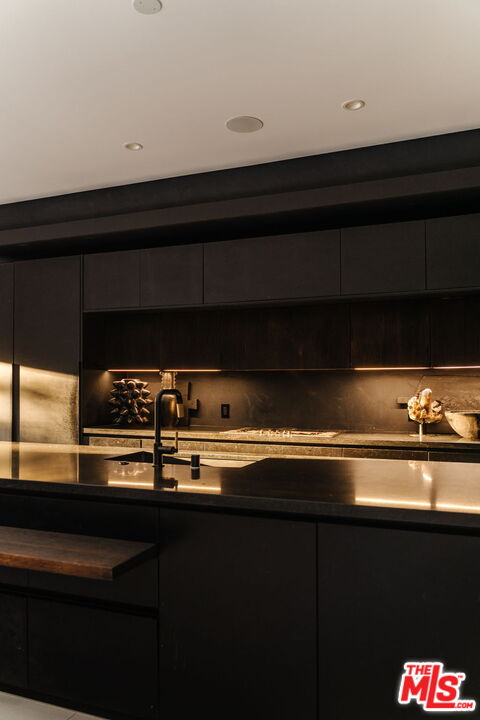 Welcome to 537 N Alta Vista Blvd, an exquisite modern masterpiece built in 2020, offering 4,312 sq ft of curated living space on a secure and gated 7,700 sq ft lot. Through the striking smoked-glass accent entry door, guests are welcomed into a generous open floor plan featuring soaring ceilings and designer finishes throughout. Just off the entry is a sophisticated office featuring custom built-in shelving crafted from Japanese flamed shou sugi ban wood, black Venato marble accents, custom lighting, and a recording studio. The sleek gourmet chef's kitchen is equipped with dual wall ovens, an espresso machine, a custom walk-in pantry, and an oversized center island with a prep sink and integrated breakfast table. The kitchen flows seamlessly into the dining area and spacious living room, complete with a stone fireplace, custom bookshelves, and floor-to-ceiling pocket doors that open to the ultimate entertainer's backyard. Upstairs, the luxurious primary suite features a dramatic custom wall of raw Pierre Blue stone imported from Belgium, bespoke Japanese flamed shou sugi ban woodwork, a projector screen, fireplace, private balcony, and two generous walk-in closetsone of which includes a custom pink rose onyx makeup room. The spa-like primary bath offers a custom dual vanity with Black Zimbabwe stone, heated floors, a Japanese soaking tub, an oversized glass rain shower, and a separate water closet with a Toto toilet. Two spacious en-suite guest bedrooms complete the upper level. Designed for year-round entertaining, the oversized backyard features a sparkling pool with elevated spa, outdoor BBQ center, grassy lawn, fire pit, and an enclosed cabana with outdoor bathroom. Additional amenities include a Control4 smart home automation system, koi pond, security cameras, a water filtration system, and surround sound throughout. This home exemplifies the very best of California living, located near some of the world's finest restaurants, shopping, and entertainment. Showings by appointment only with 24 hours notice.