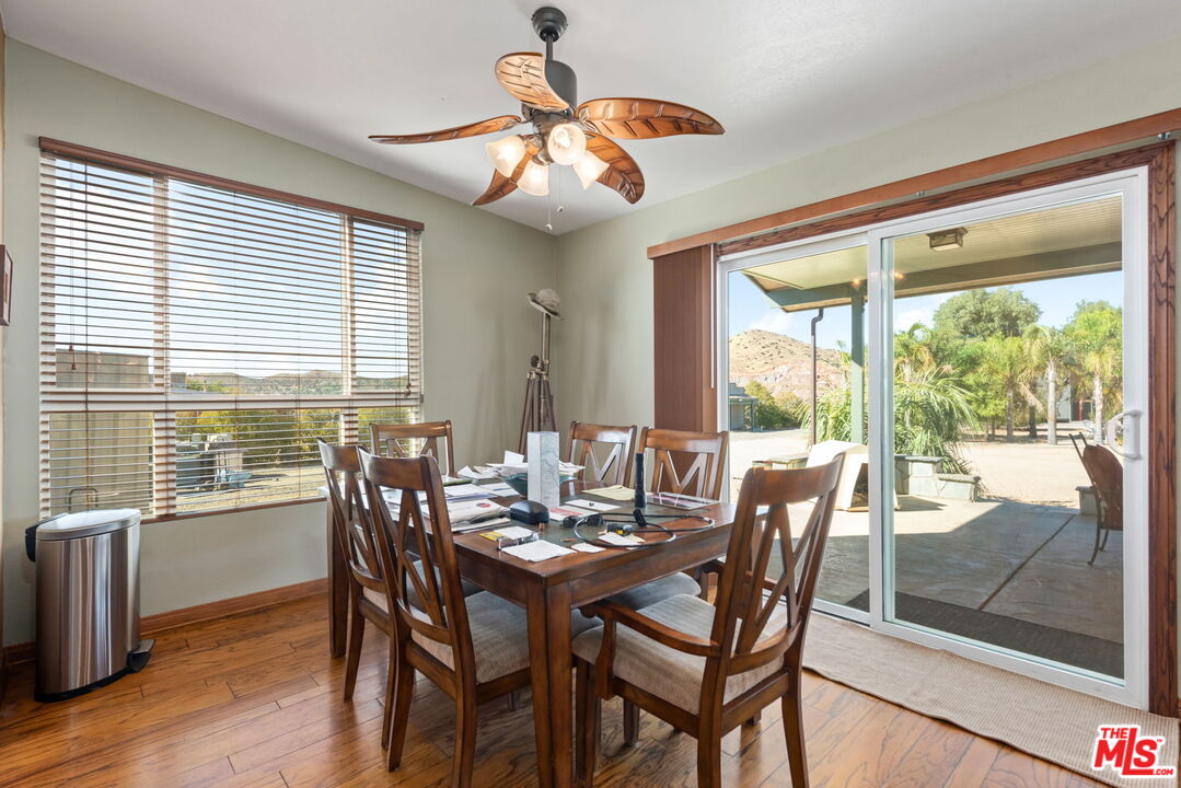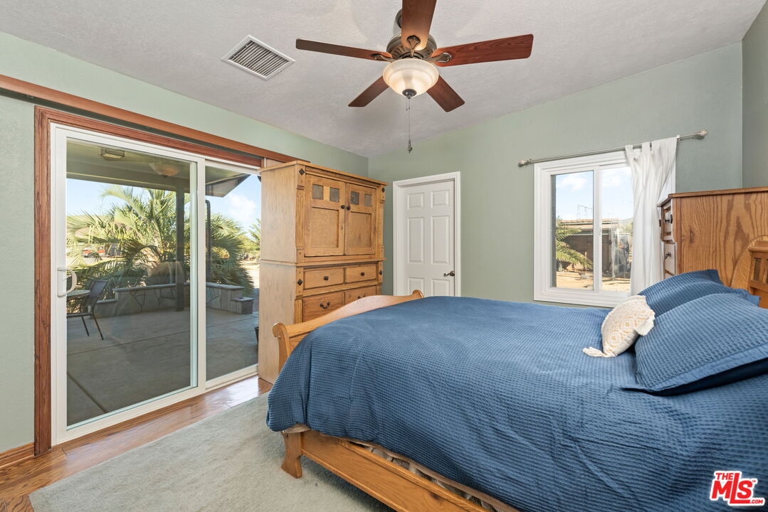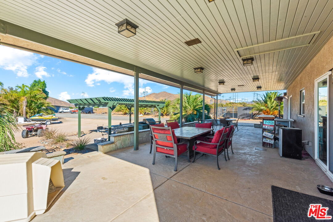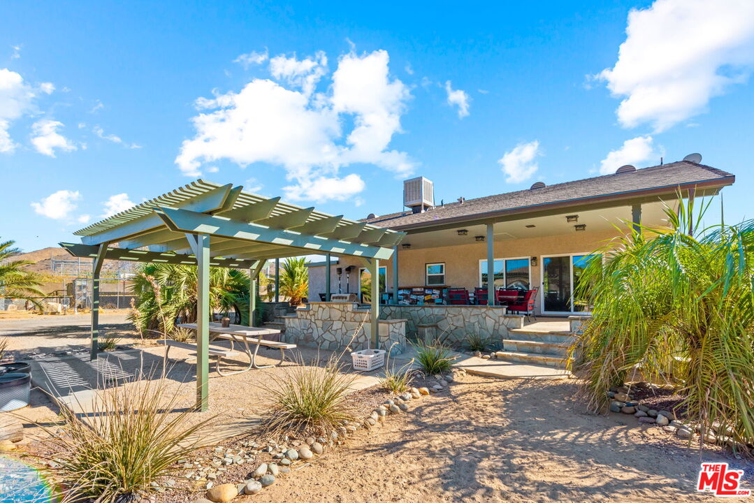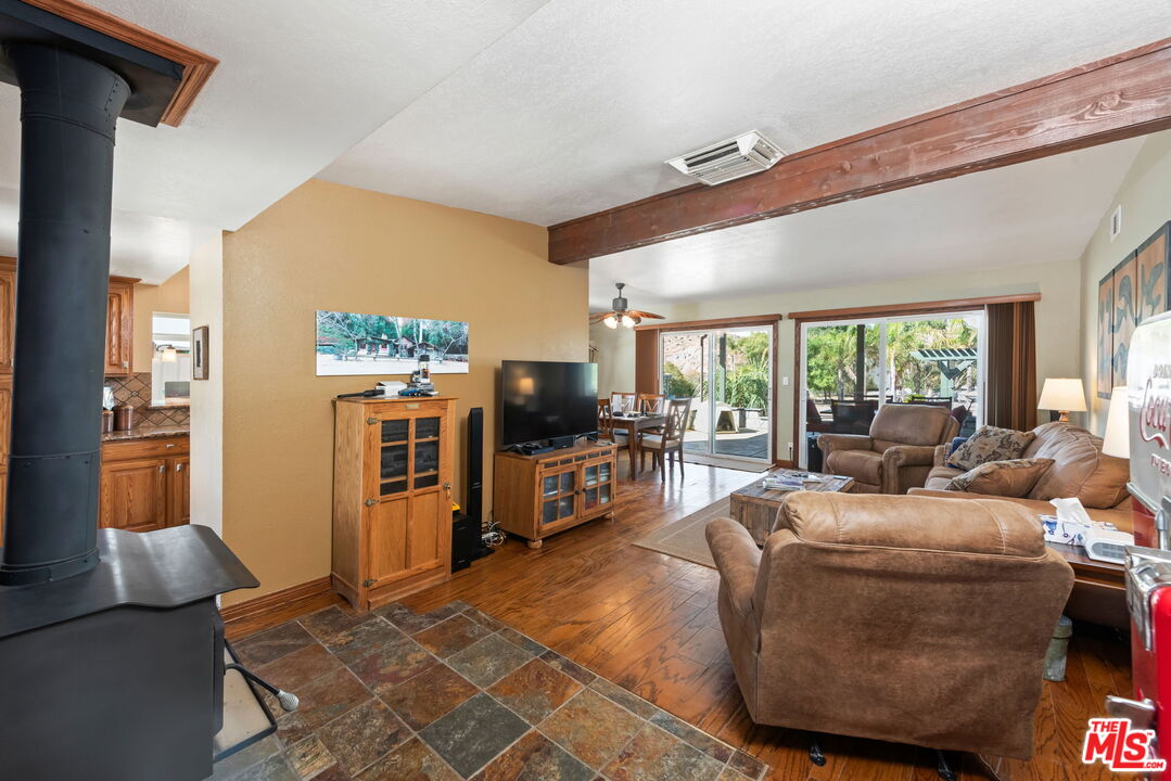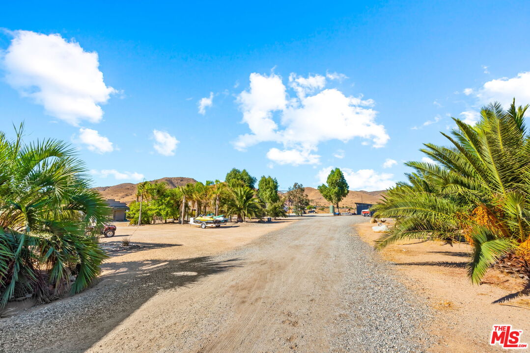 Discover the endless possibilities of this unique property, nestled on 2.5 flat, usable acres, zoned for horses and agriculture. This charming single family home boasts hardwood floors, a cozy wood-burning stove in the living room, and a kitchen with granite countertops and stainless steel appliances. Enjoy the stunning backyard views from the large covered patio, perfect for entertaining with its built-in BBQ area and palm trees swaying in the breeze. The property offers versatile outdoor features, including a custom two-level shed, a shed for pump equipment for the water well, (which is on the property and is shared with the neighbor), with extra storage, multiple RV hook-ups, and ample space for expansion. The custom-built 4-car garage with a workshop in the rear and a 2-car garage with additional carports in the front, provide abundant storage and workspace for projects (permits for the larger garage and sheds to be verified by the buyer). With breathtaking views, and vast yard space, this property is an ideal blend of rural charm and modern convenience, ready to be tailored to your vision. A must-see!