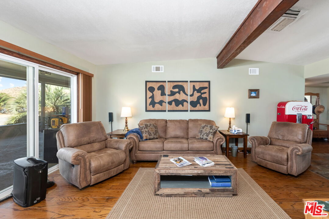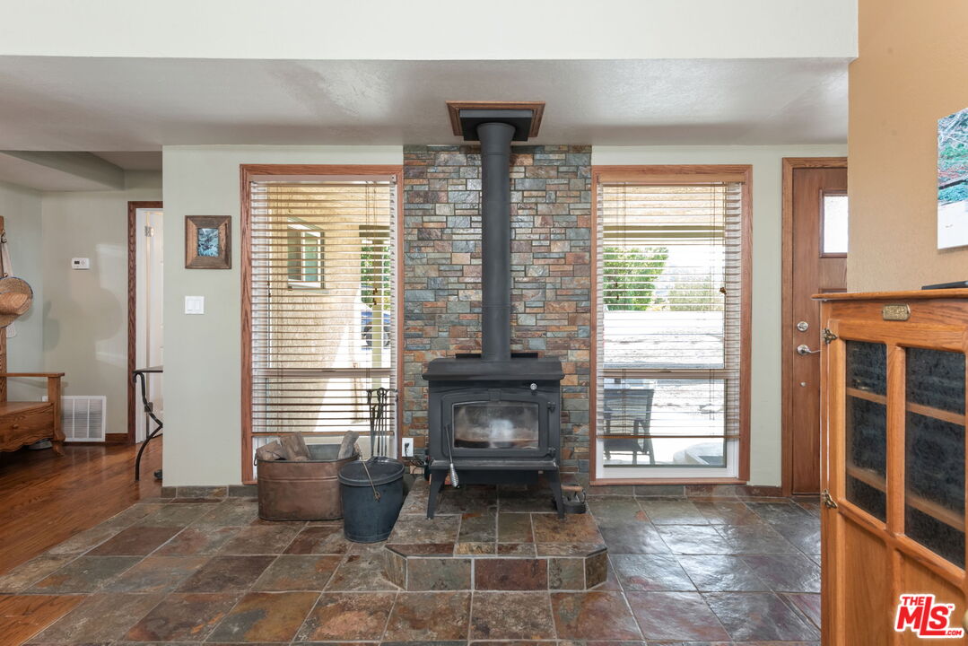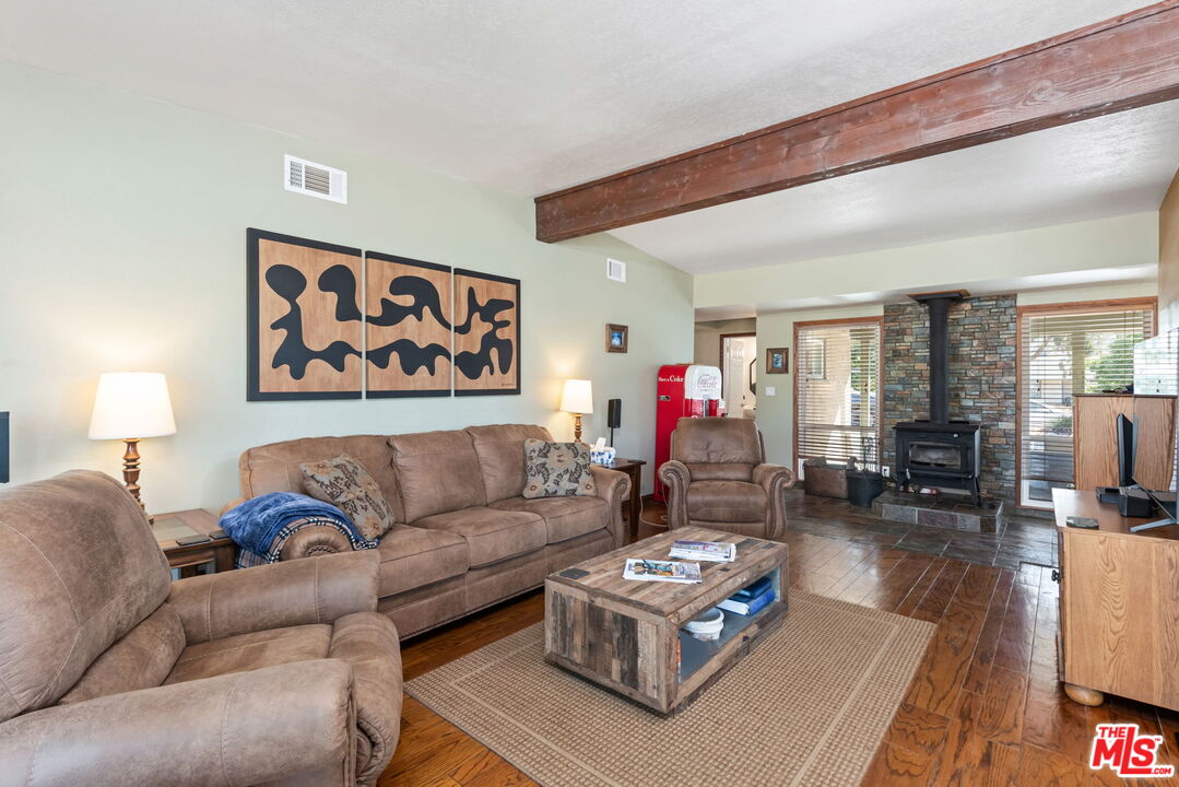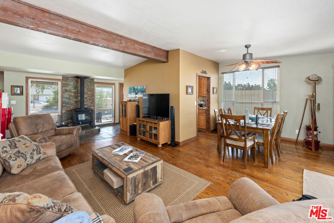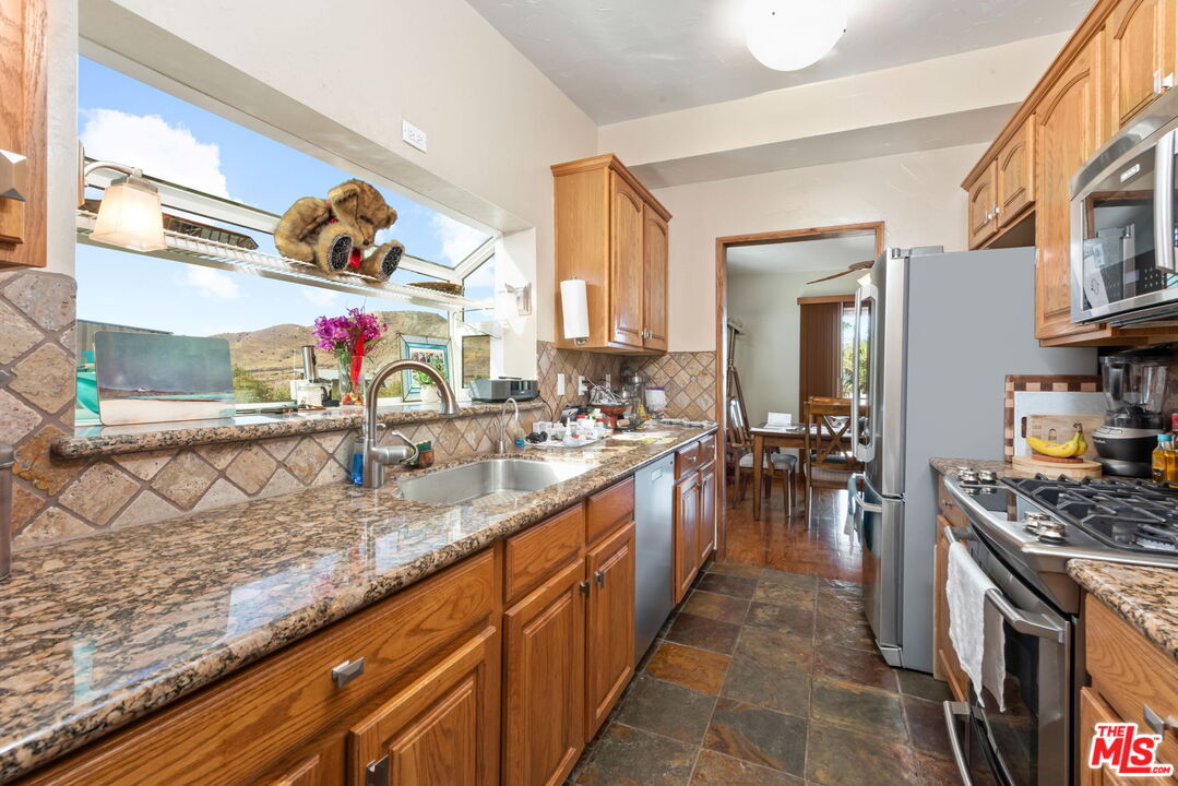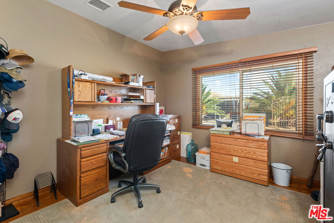 Discover the endless possibilities of this unique property, nestled on 2.5 flat, usable acres, zoned for horses and agriculture. This charming single family home boasts hardwood floors, a cozy wood-burning stove in the living room, and a kitchen with granite countertops and stainless steel appliances. Enjoy the stunning backyard views from the large covered patio, perfect for entertaining with its built-in BBQ area and palm trees swaying in the breeze. The property offers versatile outdoor features, including a custom two-level shed, a shed for pump equipment for the water well, (which is on the property and is shared with the neighbor), with extra storage, multiple RV hook-ups, and ample space for expansion. The custom-built 4-car garage with a workshop in the rear and a 2-car garage with additional carports in the front, provide abundant storage and workspace for projects (permits for the larger garage and sheds to be verified by the buyer). With breathtaking views, and vast yard space, this property is an ideal blend of rural charm and modern convenience, ready to be tailored to your vision. A must-see!