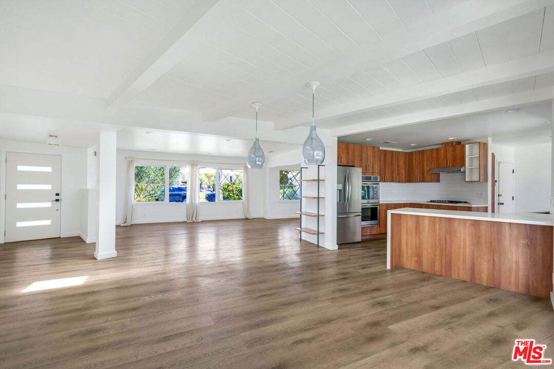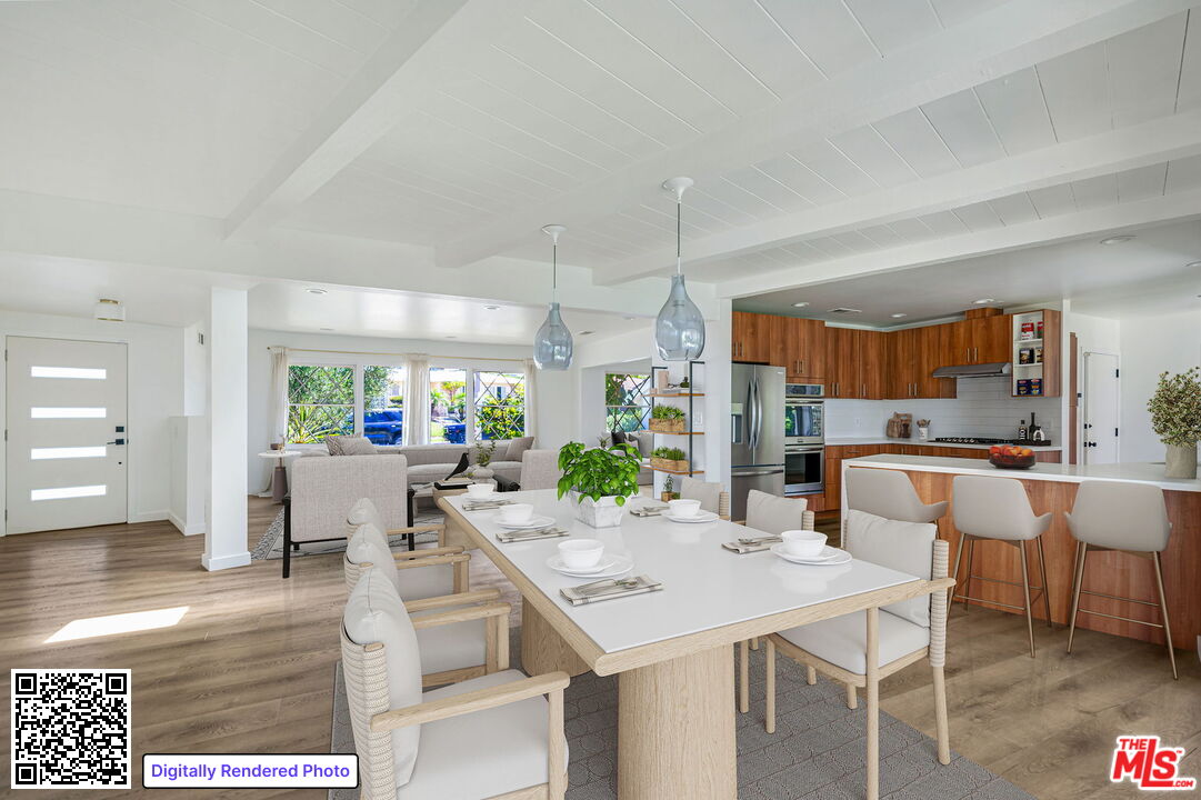Set on a nearly 10,000 sq ft lot along a premier Upper Ladera Heights street, this updated California Ranch blends Modern Mediterranean style with scale, privacy, and seamless indoor-outdoor living in a rare Westside setting. Five (5) bedrooms and 3.5 bathrooms, with a functional layout that balances open-concept living areas and well-separated private spaces. The main living areas are anchored by a bright, expansive great room enhanced by a large skylight and wide-plank light hardwood flooring, creating a natural flow throughout. Formal living and dining spaces connect effortlessly to the outdoors through a four-panel retractable sliding door system, opening to a the expansive backyard: gated and private, with mature trees, ample space for entertaining, recreation, or the addition of a pool. A covered patio accommodates lounge seating & outdoor dining. A remodeled kitchen boasts ss appliances like a French-door refrigerator, double oven, cooktop, & dishwasher. The open floor plan highlights a breakfast nook, dining area that opens to the backyard. Four (4) main level bedrooms are thoughtfully set apart from the primary living areas. The lower level primary suite opens to the backyard & includes a remodeled bathroom w/dual vanities and a spacious rain shower. A 5th bedroom is an upstairs suite that offers flexibility as a secondary primary, guest quarters, office, or retreat, complete with its own bathroom and elevated views of the grounds. Additional features include an attached 2-car garage, a dedicated laundry room w/washer & dryer, storage/pantry & a guest bathroom with shower. Located on Shenandoah Avenueconsidered one of the most desirable streets in the neighborhood due to its western edge positioningthis home benefits from both tranquility and accessibility. Ladera Heights is known for its quiet residential character while remaining minutes from Playa Vista, Culver City, Marina del Rey, Silicon Beach, and LAX. Nearby amenities include Westfield Culver City, Trader Joe's, Sprouts Farmers Market, Whole Foods Market Playa Vista, and Amazon Fresh, along with recreation at Fox Hills Park, offering tennis, paddle tennis, basketball, volleyball courts, and open green space. This is a rare opportunity to acquire a large, move-in ready residence with substantial outdoor space in one of Los Angeles' most centrally located and quietly established communities.