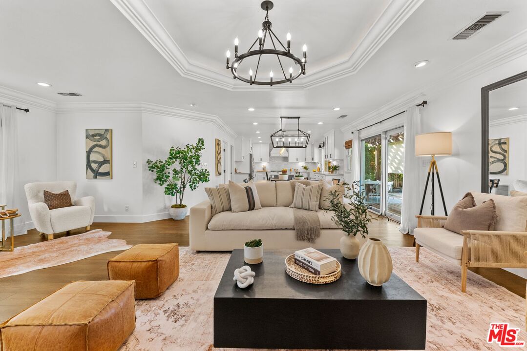This storybook Chandler Estates residence embodies timeless California living with its graceful charm, quality craftsmanship, and modern comfort. Set on a beautifully landscaped 9,600 square foot lot with over seventy feet of frontage, it is framed by mature trees and a lush front garden that create a sense of privacy and warmth from the moment you arrive. Inside, the single-level floor plan offers effortless flow from the chef's kitchen to the dining and living areas, all filled with natural light and thoughtful design. The kitchen is a true centerpiece with custom cabinetry, stone countertops, and premium appliances including a Wolf range, Bosch dishwasher, and LG refrigerator, ideal for both everyday use and entertaining. The primary suite serves as a peaceful retreat with a spa-inspired bath featuring dual vanities, a jetted soaking tub, a frameless glass shower, and a generous walk-in closet. Two additional bathrooms have been elegantly updated with designer finishes. Interior highlights include crown molding, recessed lighting, fresh designer paint, and dual-pane Pella windows that bring in the beauty of the outdoors. French doors open to a private backyard oasis with a deck off the dining room, a sparkling saltwater pool, and a spacious grassy yard surrounded by mature landscaping and blooming gardens. Thoughtful upgrades include owned solar, a newer roof, updated electrical systems, a replaced sewer line and main tie-in, two tankless water heaters, and central heating and air conditioning. With a two-car garage and extended driveway parking, this home sits proudly on one of the most picturesque, tree-lined streets in Chandler Estates, offering a rare blend of character, comfort, and sophistication.