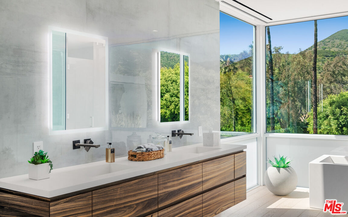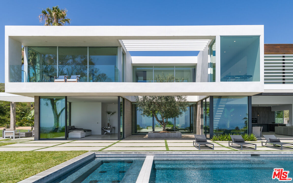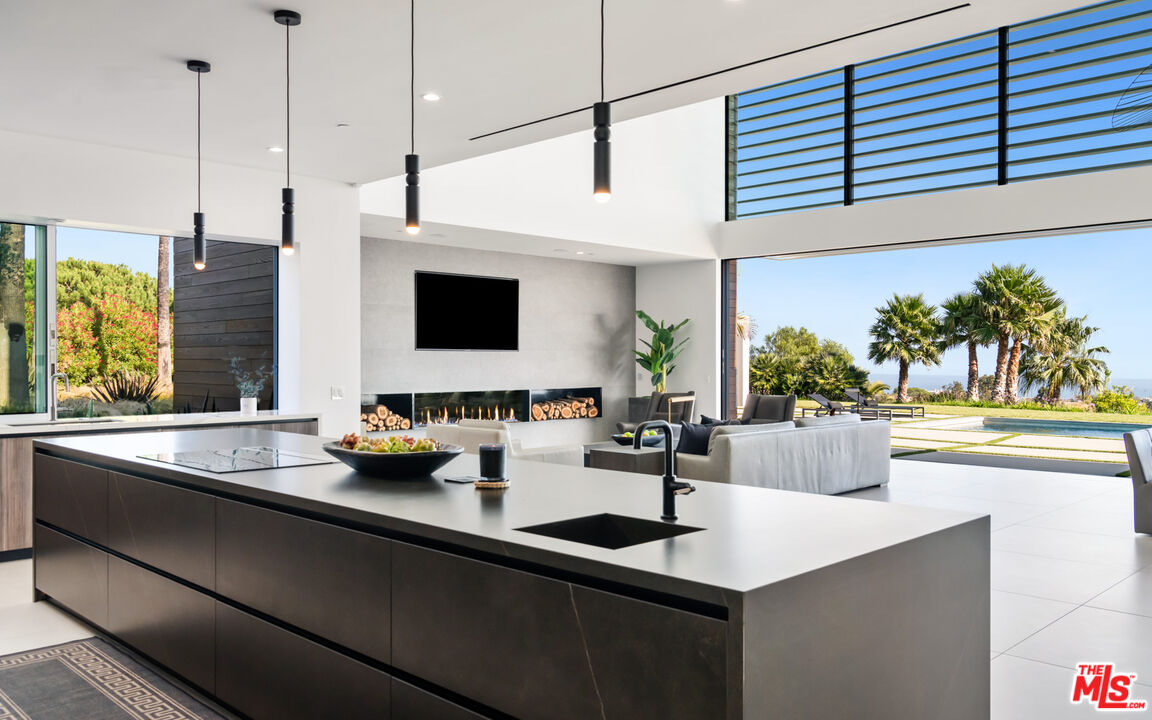 Nestled on a serene 2.8 acre bluff overlooking the Pacific Ocean, this architectural masterpiece epitomizes coastal luxury. Newly completed and designed by renowned architect Steven Kent, this 5-bedroom, 5.5-bathroom residence offers unparalleled privacy and breathtaking ocean views. Step into sophistication as you're greeted by a meticulously crafted interior, where an expansive double-height living volume overlooks the spacious backyard entertainment area and infinity-edge pool. Floor-to-ceiling glass doors and windows seamlessly connect the indoor and outdoor spaces, allowing for effortless entertainment and relaxation. Architectural elegance abounds with board-formed concrete walls, creating a harmonious blend of contemporary design and natural elements. Ascend the open staircase to discover a bridge that offers panoramic views of the ocean. Indulge in the epitome of luxury in the primary suite, featuring dual walk-in closets, a private balcony, and a spa-inspired ensuite with sweeping hillside views from the soaking tub. Each additional bedroom boasts its own ensuite, walk-in closet, and private balcony. Embrace the Southern California lifestyle in the expansive backyard retreat, featuring a 60 ft. zero-edge swimming pool, oversized spa, chic cabana and firepit, tennis court, and mesmerizing city and sunset views. Additional amenities include a gourmet kitchen with Miele appliances and a built in wine refrigerator, imported Italian Doca cabinetry, a Control 4 Smart Home system, custom DaVinci gas fireplace, motorized Lutron shades throughout, wide-plank Italian flooring, solar-powered pool heating, and an attached 3-car garage with hydraulic doors.