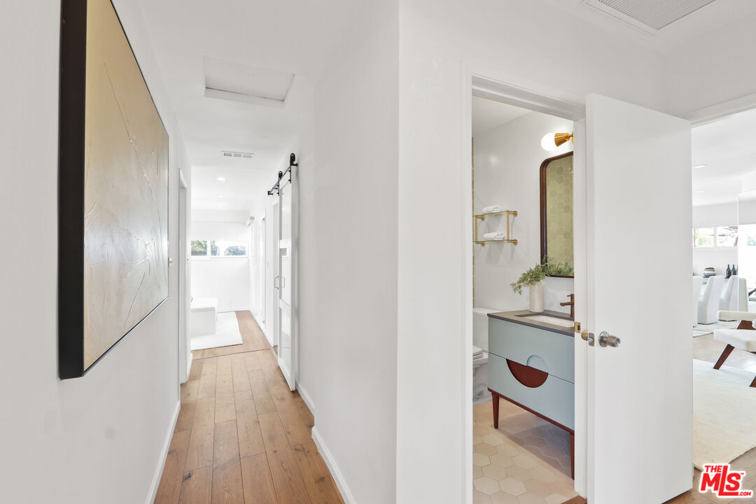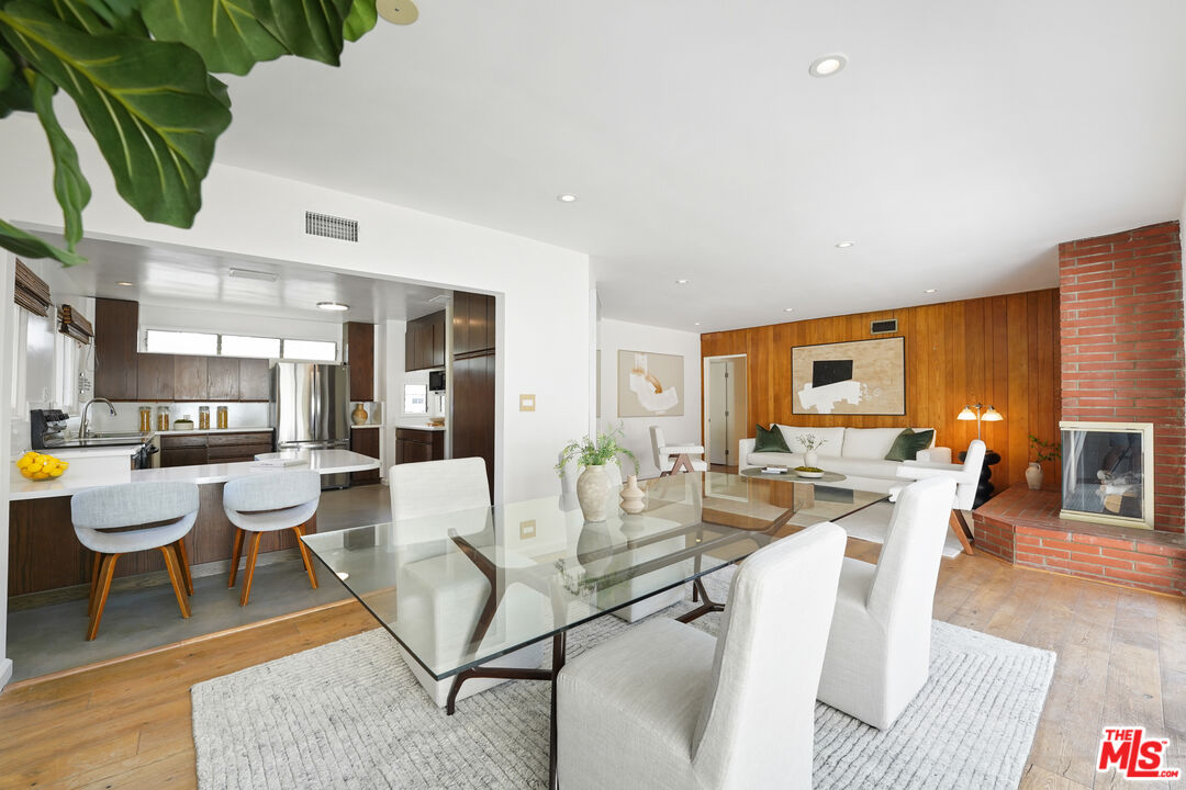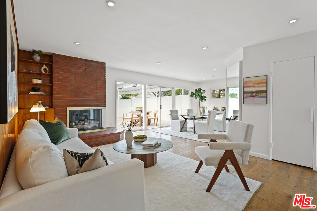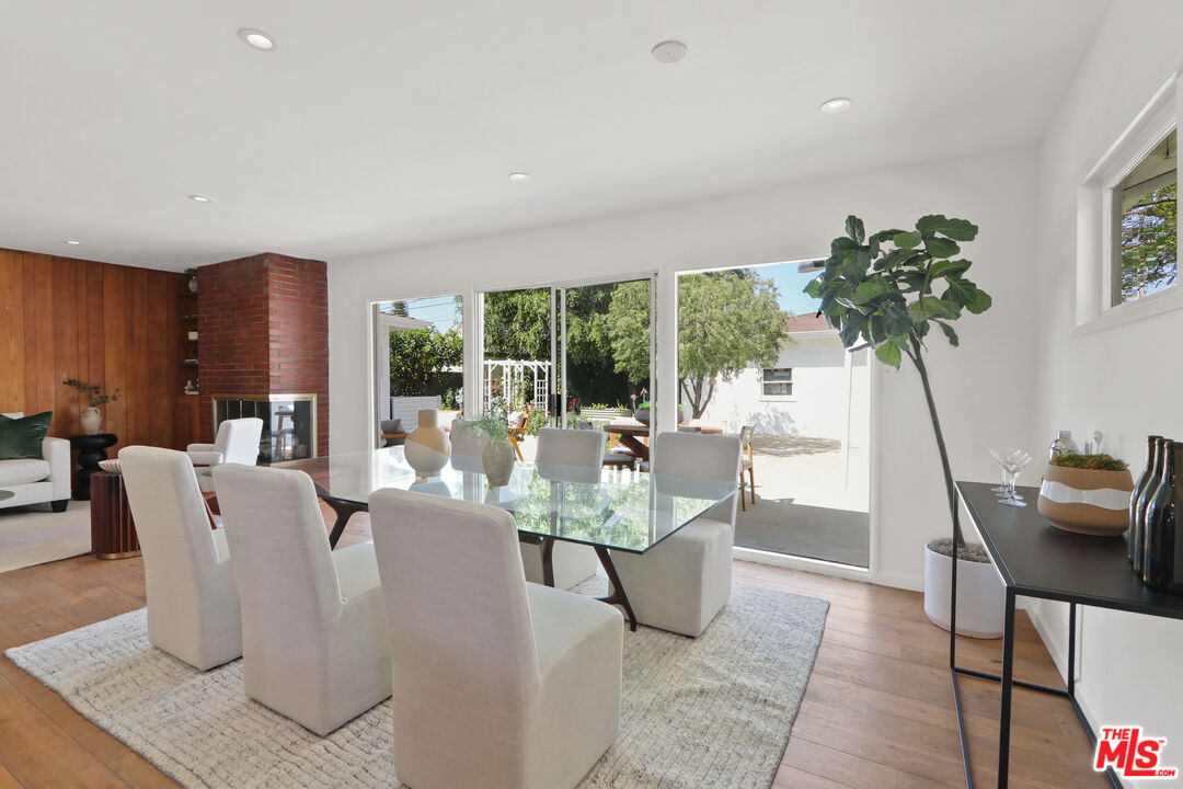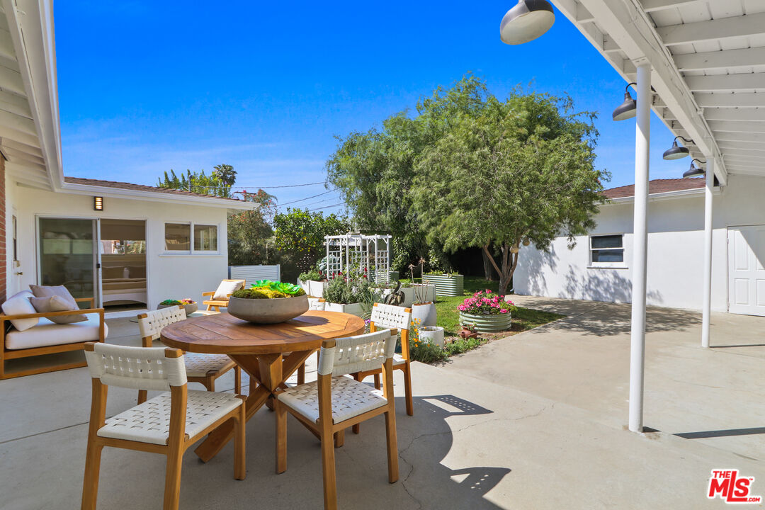 This is a beautiful mid-century home with wonderful character situated on a large sought after corner lot. The living room features a stylish glassed-in gas fireplace and large glass doors leading to a back patio. The formal dining area is adjacent to the large kitchen and has views of the spacious patio and backyard. Every room has lovely window lines that bring in cheerful natural light. The primary bathroom is large, modern, and has both a walk-in shower and a chic designer stand-alone tub. The second bath is brand new, and beautifully designed with a gorgeous Italian vanity and custom tile. There are three large bedrooms, each with custom roll-up window blinds, and a very convenient laundry room with a newer LG washer and dryer. The large back-yard has several raised garden beds, a lemon tree, and a breezeway leading to a two car garage with extra space for storage. The water heater is tankless. This property is in a neighborhood located several blocks from a new metro line station and the recently completed Cumulus residential and retail development. Within Cumulus there is a Whole Foods grocery store, restaurants, gym, apartments, coffee shop and other amenities. Also nearby are HBO/Max and Apple office complexes.