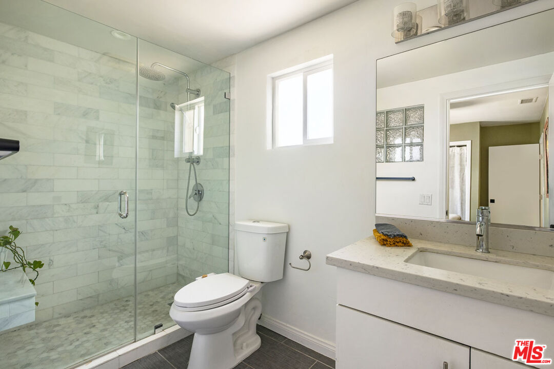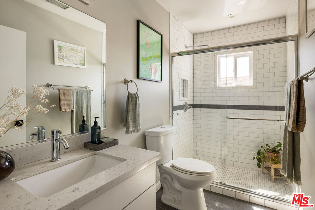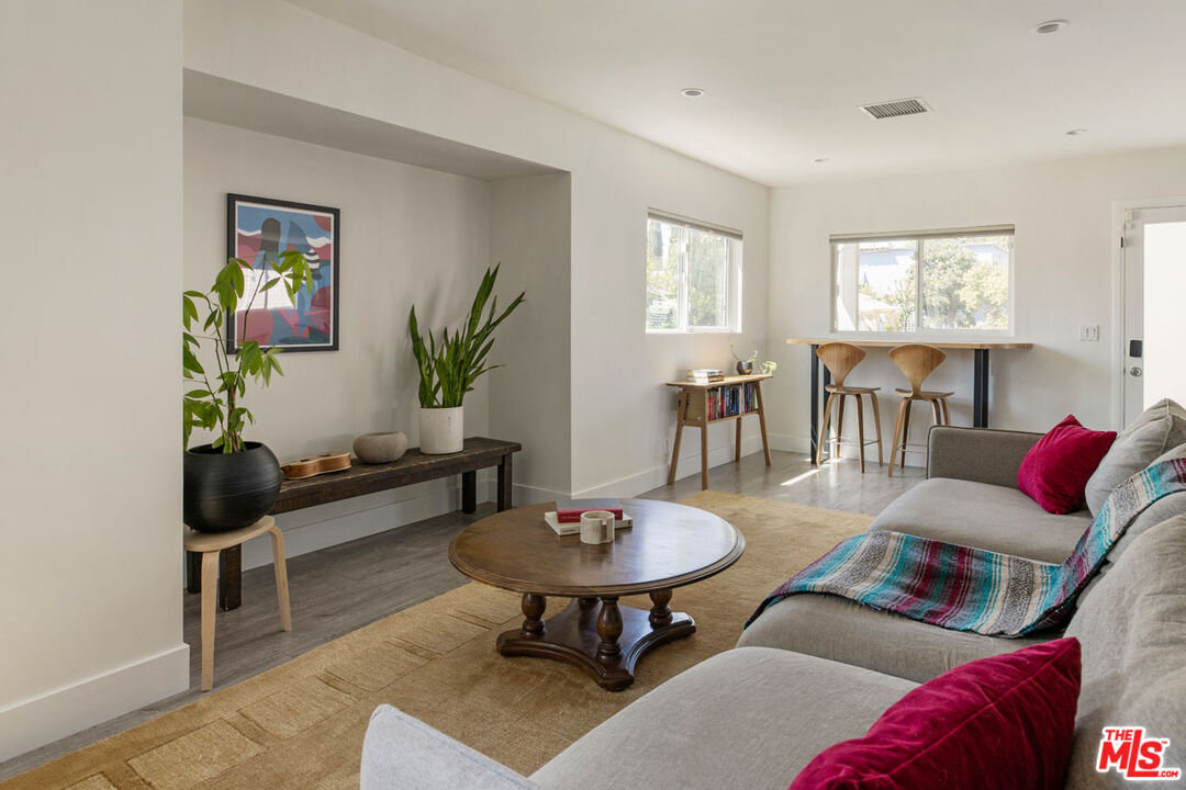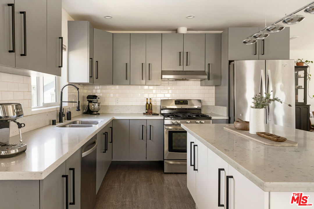 In Highland Park, this updated 1932 bungalow delivers space, privacy, and a generous yard for enjoying the outdoors. A tiled front porch is a lovely spot for morning coffee; the open great room is filled with sunlight, and hard surface floors flow throughout. The kitchen is well-appointed with stainless appliances, quartz countertops, a tile backsplash, and an oversized center island. Three bedrooms include a primary suite with an ensuite bath; both bathrooms are tastefully finished with tiled showers and vanities. The lower-level rec room with its own entrance and polished concrete floors is perfect for a home studio, gym, or office. Entertaining is easy in the private yard with peekaboo hillside views, a shaded patio for alfresco dining, and a flat grassy expanse for play and pets. Amenities include central AC, laundry, and a long driveway with ample parking. York Boulevard is two blocks away, brimming with great coffee, eats, boutiques, and neighborhood gems like Bob's Baker Marionette Theater.