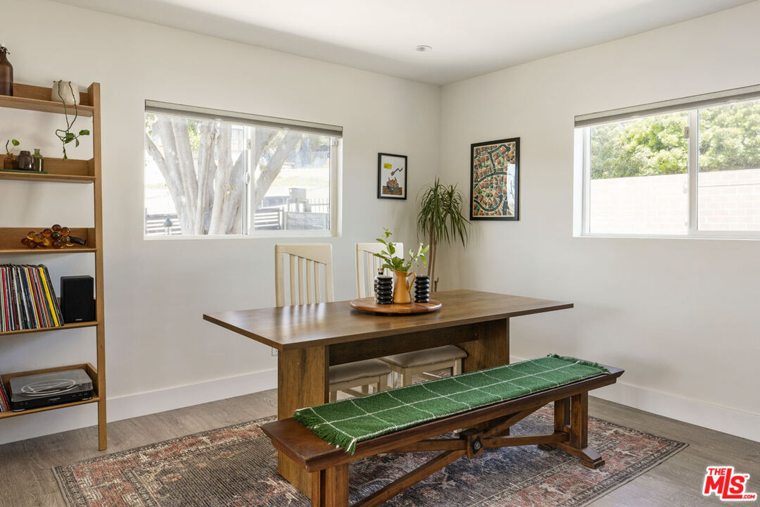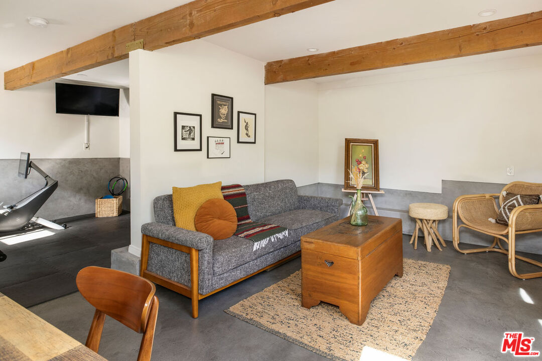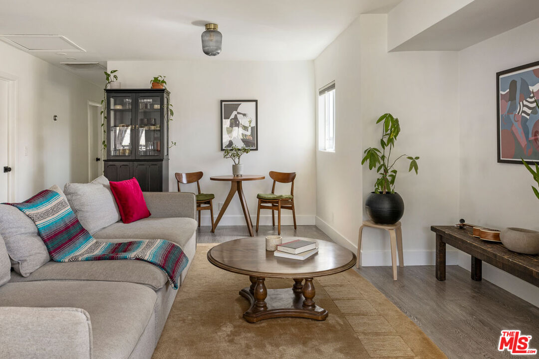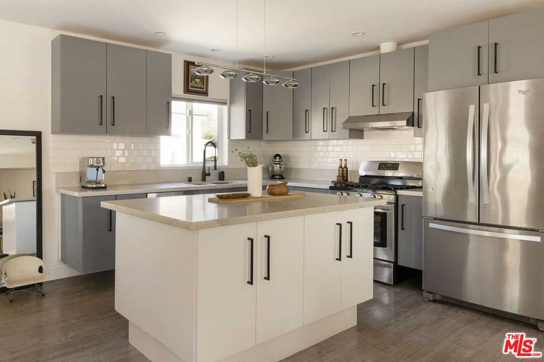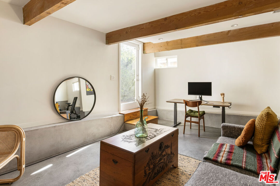 In Highland Park, this updated 1932 bungalow delivers space, privacy, and a generous yard for enjoying the outdoors. A tiled front porch is a lovely spot for morning coffee; the open great room is filled with sunlight, and hard surface floors flow throughout. The kitchen is well-appointed with stainless appliances, quartz countertops, a tile backsplash, and an oversized center island. Three bedrooms include a primary suite with an ensuite bath; both bathrooms are tastefully finished with tiled showers and vanities. The lower-level rec room with its own entrance and polished concrete floors is perfect for a home studio, gym, or office. Entertaining is easy in the private yard with peekaboo hillside views, a shaded patio for alfresco dining, and a flat grassy expanse for play and pets. Amenities include central AC, laundry, and a long driveway with ample parking. York Boulevard is two blocks away, brimming with great coffee, eats, boutiques, and neighborhood gems like Bob's Baker Marionette Theater.