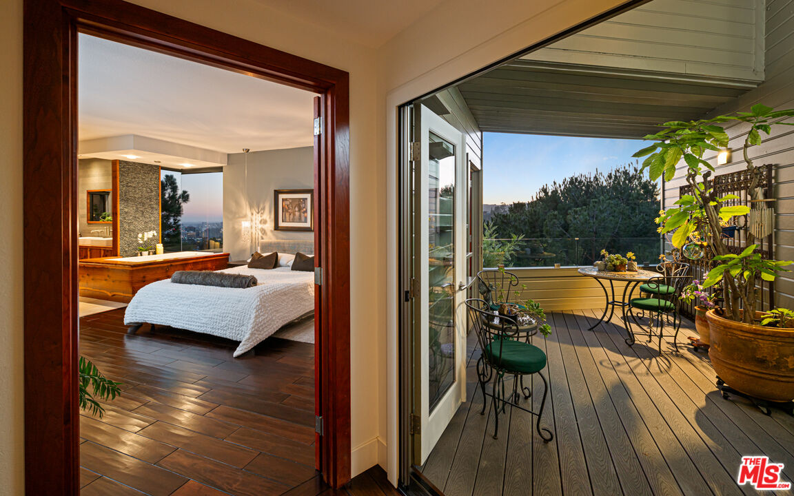 Perched above the city on a quiet street in the coveted Los Feliz Oaks, this architectural residence by Tony Ngai, AIA, is a rare offering of design, privacy, and breathtaking scale. Thoughtfully positioned to embrace its surroundings, the home captures sweeping canyon, city, and ocean views, creating a seamless connection between nature and modern living. A dramatic living room with soaring ceilings, expansive windows, and a custom fireplace anchors the home, opening to terraces that invite an effortless indoor-outdoor experience. Natural light moves beautifully throughout the space from morning to sunset, while the loft above adds dimension and flexibility. Designed for both everyday comfort and entertaining, the home offers multiple gathering spaces, including a sophisticated media room and a light-filled dining area that flows into the chef's kitchen, outfitted with Sub-Zero, Gaggenau, and Bosch appliances. Extensive upgrades and curated finishes elevate the home throughout, including mahogany floors, custom cherry interior doors with Valli & Valli hardware, Ann Sacks and Walker Zanger tile, and Lutron smart lighting. The primary suite is a true retreat, featuring its own fireplace, custom closets, and a spa-inspired bath with radiant heated limestone floors, Duravit porcelain sinks, a Kohler soaking tub, and exquisite custom woodwork. Two additional bedrooms offer generous scale and storage, each thoughtfully designed with high-end finishes. Additional amenities include automatic shades, a temperature-controlled wine closet, EV-ready garage with dual 220V outlets, upgraded electrical and HVAC systems, tankless water heater, integrated security cameras, and smart home features throughout. Lush, drought-tolerant landscaping and automated irrigation complete the private, tranquil setting. Moments from Griffith Park, the Observatory, the Hollywood Bowl, Greek Theatre, Franklin Village and Beachwood Canyon, this is quintessential Hollywood Hills living. Now is your chance to own a private sanctuary that is architecturally significant, deeply intentional, and effortlessly connected to its surroundings.