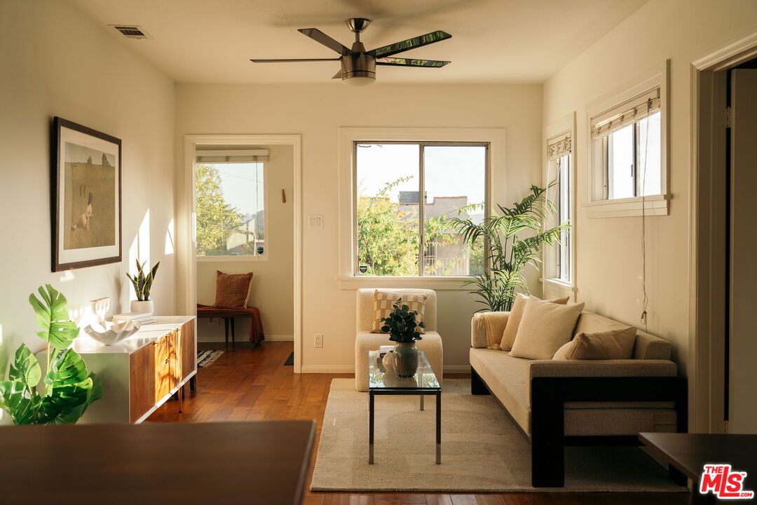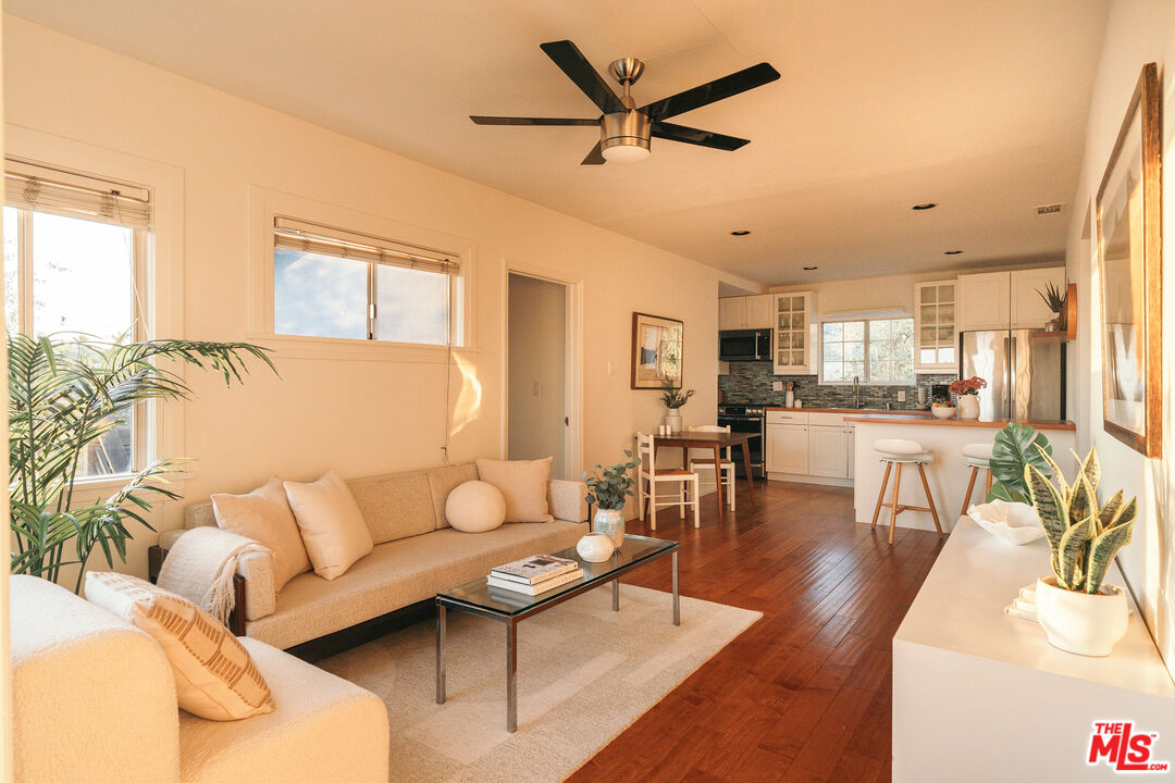 Set high above the street in the sought-after enclave north of York Blvd. in Highland Park, 5711 Stratford Rd. is a home that reflects the very best in NELA living--vibrant urban life at your doorstep and a peaceful hillside retreat to call your own! Past the front door and generous foyer, find yourself in an airy haven where massive windows look out upon rolling green hills and bathe the room in natural light. The kitchen--open to the living room--is the heart of the home and features stainless steel appliances, newly refinished butcher block countertops, plentiful storage space, and rich, warm floors. Cheerful hand-painted murals and stylish wallpaper adorn the bedrooms and add just the right touch of romantic whimsy. The home's unique 3 bed/1.5 bath footprint allows for hard-to-find versatility for something of its size--ideal for those who work from home, host guests, need a serene creative studio, or want everyone to have a corner of their own. The real magic begins when you head through the French doors and into the yard outside: an expansive redwood deck boasts breathtaking panoramic views that sweep across the city beyond. It's where you'll gather with friends for golden-hour dinners as the sun sets behind the hills to the west, watch fireworks bloom across the skyline, or simply sit beneath a canopy of stars and twinkling lights, feeling a world away from the city below. Thoughtful updates--Nest thermostat, central A/C and heat, newer roof and updated sewer line, ample sub-deck storage, herb garden and vegetable boxes, and a detached garage--ensure a life as effortlessly functional as it is beautiful. And while coming home feels like entering a sanctuary from the hustle and bustle of city life, your only blocks away from some of Highland Park's most beloved restaurants, bars, and shops: Amiga Amore, Cafe Jane, Hermosillo, Kumquat, and so many more are right down the way, offering unparalleled urban accessibility. With its effortless charm, convenience, and truly inspiring views, 5711 Stratford is a rare gem--a soulful space that reflects the creative spirit and beauty of Highland Park.