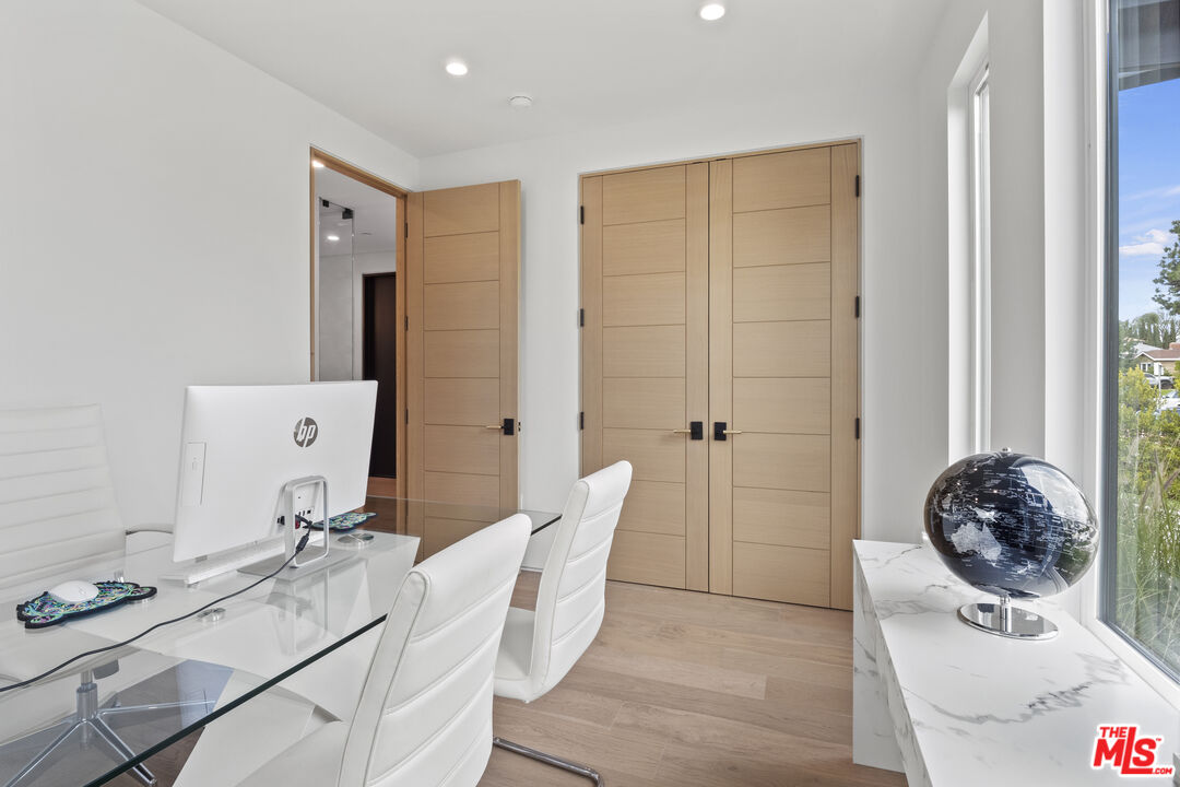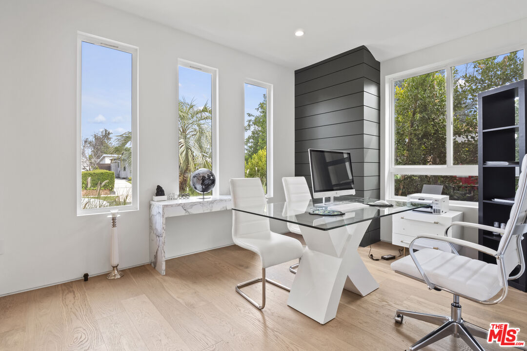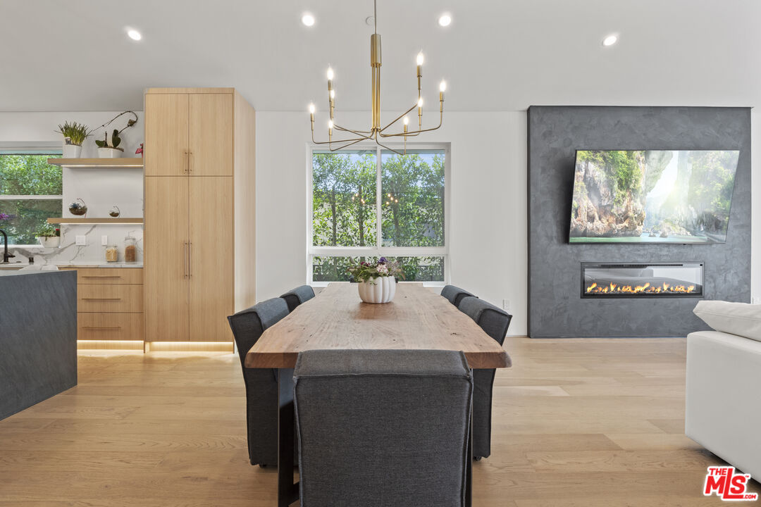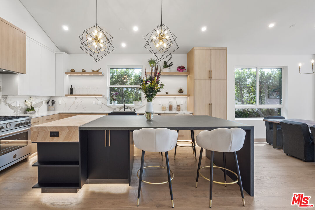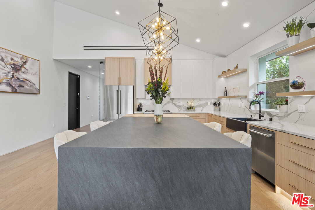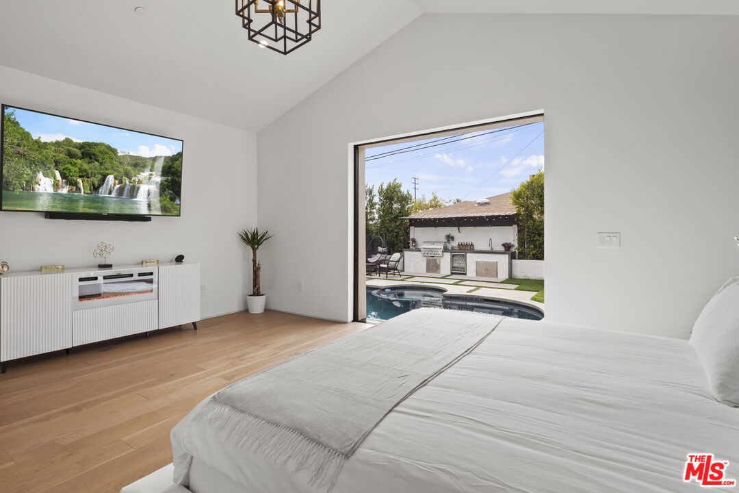 Introducing North Hollywood's latest gem, a stunning modern home situated just moments away from the bustling studios, the NoHo Arts District, and the brand-new NoHo West shopping center. With its contemporary design and abundance of modern amenities, this newly developed home is a true statement-maker. As you step inside, you'll immediately notice the airy open floor plan with high ceilings and a plethora of smart home features. The main living space is expansive and boasts impressive 15ft vaulted ceilings that create a grand ambiance. The designer chef's kitchen is a masterpiece, featuring high-end Bertazzoni appliances, a massive center island with a butcher block slab, and built-in features like an integrated pet bowl, paper towel holder, and a drawer microwave. The family room is the perfect spot to relax and unwind, with a beautiful fireplace and pocketing glass doors that create a seamless indoor/outdoor living experience. Step outside, and you'll find a heated pool and spa, as well as a covered outdoor kitchen complete with a BBQ, sink, and mini-fridge. The luxurious primary suite is a true sanctuary, featuring cathedral ceilings, a spacious walk-in closet, and a sumptuous bathroom with a lavish soaking tub. There are also two additional ensuite bedrooms with walk-in closets, a fourth bedroom/office, a custom wine rack, LED-lit mirrors in every bathroom, and a laundry room. The home also boasts a dog run, a two-car garage, and a built-in home speaker system. This exceptional modern home in North Hollywood is an absolute must-see, offering unparalleled luxury and convenience in a prime location.