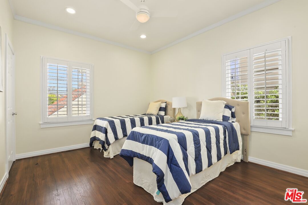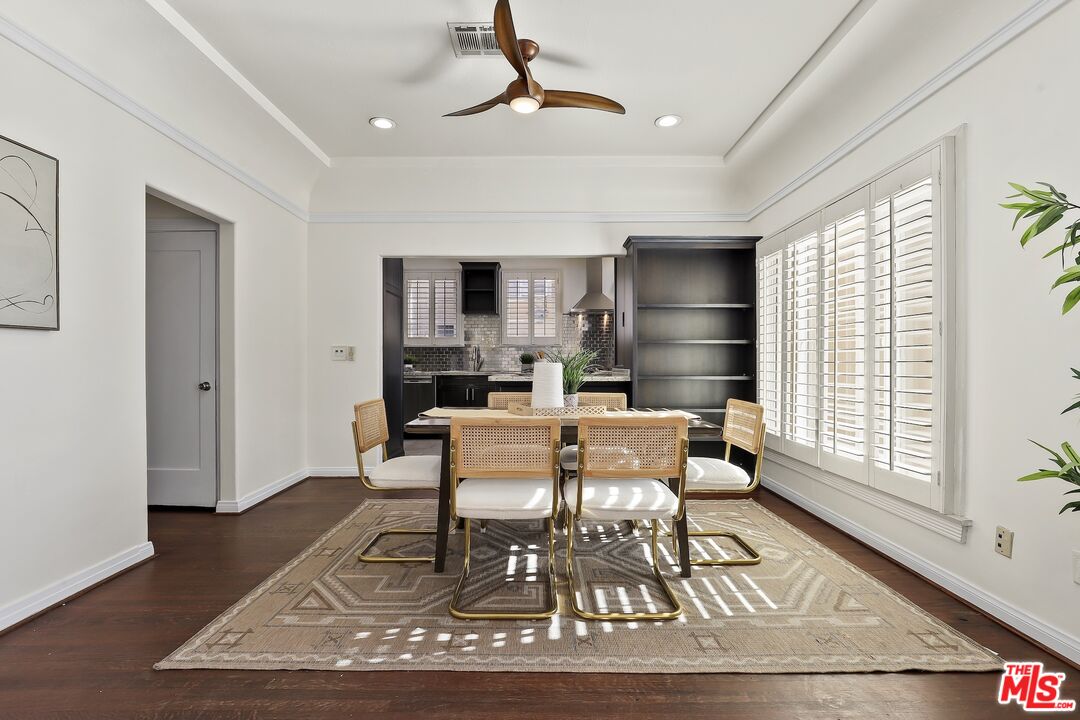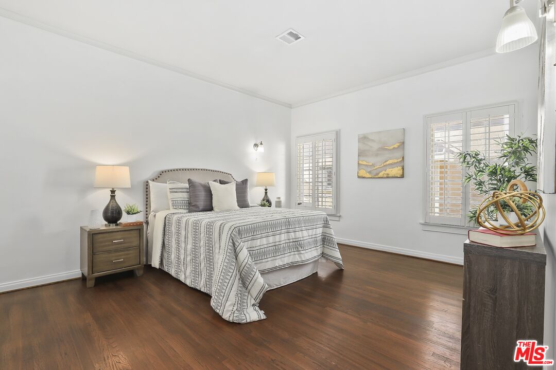 Welcome to this inviting 4-bedroom, 4-bath ranch home where original character and timeless charm create a space that truly feels like home. A striking barreled ceiling welcomes you into the living room, anchored by a cozy fireplace and rich hardwood floors throughout. The thoughtfully designed layout offers comfortable spaces to gather, create, and grow.The home features a spacious dining room, a large gourmet kitchen with a charming breakfast alcove, and an oversized laundry room conveniently located just off the kitchen. Two bedrooms offer en-suite baths, while the expansive primary suite is filled with natural light and provides a peaceful retreat.A versatile lower-level bonus areacomplete with kitchen, dining, living space, bath, and an additional bedroomoffers endless possibilities, ideal for extended family, guests, a creative studio, or work-from-home living.Outdoors, enjoy a fenced, green backyard perfect for entertaining or play. A large garage, storage shed, and generous storage throughout add to the home's functionality, while a long driveway with parking for 8+ vehicles provides rare convenience.Centrally located near restaurants, coffee shops, theaters, and everyday amenities. Zoned R3 and located within an HPOZ. Buyers to verify all information and conduct their own due diligence regarding square footage and permits. Active Camera surveillance on exterior of home.
