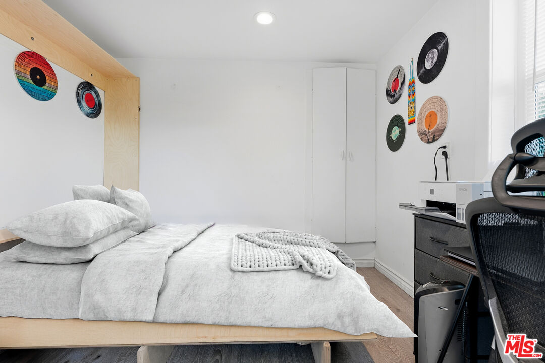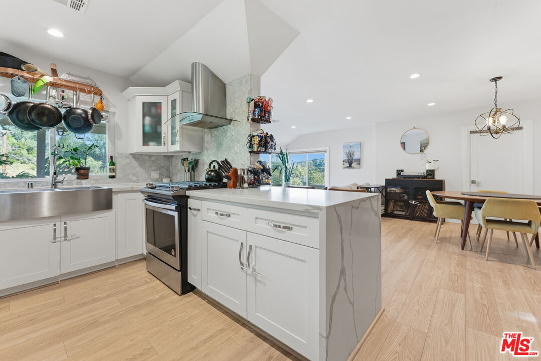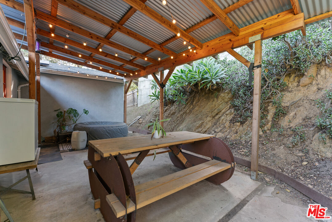 In the hills of Highland Park, this remodeled cottage-style home offers sweeping hillside and mountain views from nearly every room. The main level features two bedrooms with custom closets, brand new luxury vinyl flooring, light-blocking blinds, and serene outlooks, while the open living and dining areas flow into a bright kitchen with bar seating. The lower level includes a third bedroom with a private entrance, ideal for a home office, studio, gym, and a large additional storage space. Step out to a covered patio and garden that wraps to the front entrance, with mountain views as the backdrop. Featuring an expansive street-to-street lot with a backyard terrace above, revealing panoramic DTLA views--perfect for extra parking, relaxing, or entertaining. Additional highlights include solar panels for energy efficiency, four parking spaces, and a prime location near hiking trails and just minutes to downtown, blending hillside tranquility with city convenience.