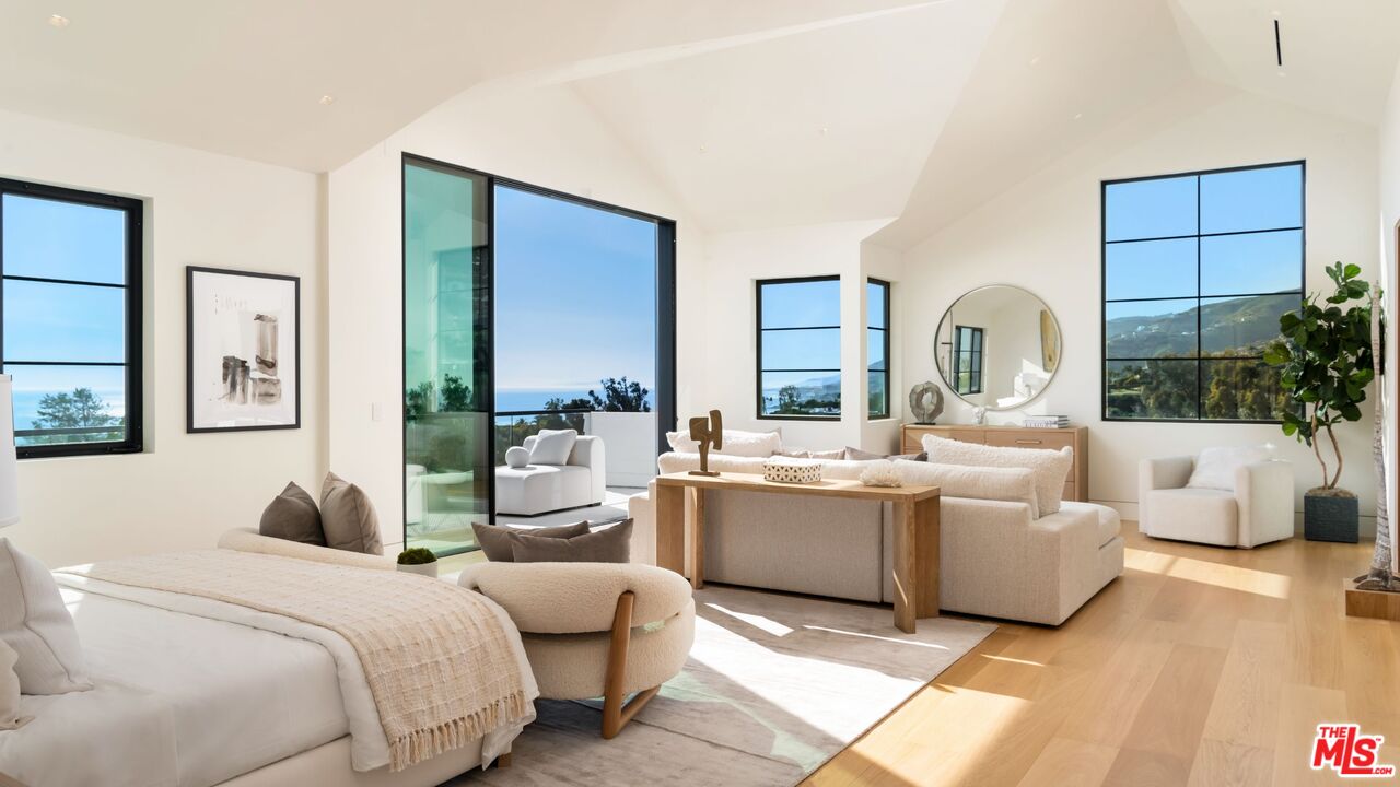 The Malibu Sunset Estate is a private coastal retreat set on approximately 1.5 flat acres in one of the area's most sought-after enclaves. A long, gated driveway leads to a newly completed three-level residence designed for effortless indoor-outdoor living, with panoramic ocean views from nearly every room. The main living spaces open seamlessly to expansive terraces, creating a relaxed flow for entertaining and everyday family life. The dining area connects naturally to a chef's kitchen equipped with top-tier appliances and generous workspace. The primary suite feels like a resort escape, featuring vaulted ceilings, sweeping ocean views, a wraparound balcony, spa-inspired bath, and dual walk-in closets. Additional bedrooms are well-positioned for comfort and privacy, along with a dedicated home office. All the latest and greatest amenities including a private theater, temperature-controlled wine tasting room, gym, an infinity pool that overlooks the Pacific Ocean, and parking on site for 40 cars. A detached ADU offers its own kitchen, living area, and bedroom for guests or extended stays. Just moments from Point Dume, Zuma Beach, fine dining, shopping, beaches, surfing, hiking, and the ultimate nature living. Here is your chance to live the Malibu sunset dream.
