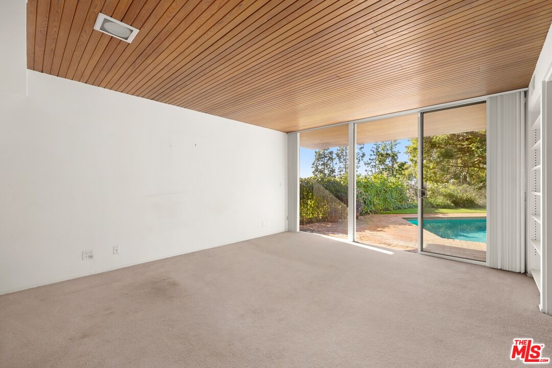 Set on a rare half-acre along prestigious Tigertail Road, this gated Mid-Century home presents an exceptional opportunity in the heart of Brentwood to build your dream home or reimagine the current property. Reached via a private drive, the property features a generous motor court, mature landscaping, soaring palms, and a free-form pool. The current residence highlights classic Mid-Century details, including floor-to-ceiling glass, wood-paneled ceilings, a brick accent wall, and a striking stone fireplace. Main living spaces and the primary suite open directly to the backyard, while a den with wet bar and a secondary bedroom with ensuite bath add flexibility. Tigertail is one of Brentwood's most coveted streets, surrounded by estates exceeding $20M. A rare offering with immense potential located moments away from Los Angeles' top restaurants and shopping. Plans and renderings available.