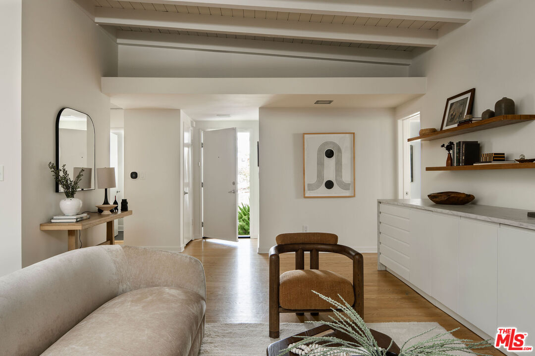 Mid-Century Modern gem in prestigious Encino Village Designed by renowned architect Martin Stern, AIA. Located in the highly sought-after Encino Elementary School district, this beautifully updated 4-bedroom, 3-bath home features one of the most desirable and spacious floor plans in Encino Village. Thoughtfully renovated for today's lifestyle, it blends modern finishes with timeless mid-century design elements. Inside, you'll find hardwood floors throughout, dramatic open-beam vaulted ceilings, and a classic floor-to-ceiling mid-century fireplace. The versatile den is perfect as a home office or creative space. The remodeled kitchen boasts custom Corian countertops with integrated dual sinks, soft-close drawers, and premium stainless steel appliances including a GE Monogram Advantium microwave with convection, Monogram oven, and Bosch dishwasher. All bedrooms feature vaulted ceilings and hardwood flooring. A newly added, fully permitted primary bathroom offers spa-like luxury with a quadruple-head Kohler Smart Shower with steam, dual vanities, and a private water closet. Outside, enjoy lush yet low-maintenance landscaping with an eco-friendly drip system as well as orange, lemon and peach trees. The 15-foot "X500" swim spa from Endless Pools is ideal for relaxing year-roundwhether on warm summer days or cool winter nights. Additional highlights include: Custom Milgard aluminum windows that replicate the original 1950s style, Copper plumbing, updated HVAC with whole-house air filtration, 200-amp electrical panel and an attached two-car garage with built-in storage and workshop. Situated just moments from the park with access to playgrounds, tennis courts, soccer and baseball fields and a community center. Nearby bike paths lead to scenic Lake Balboa. Minutes from the 101 and 405 freeways, Encino Village is an idyllic neighborhood known for its strong sense of community and regular block parties.