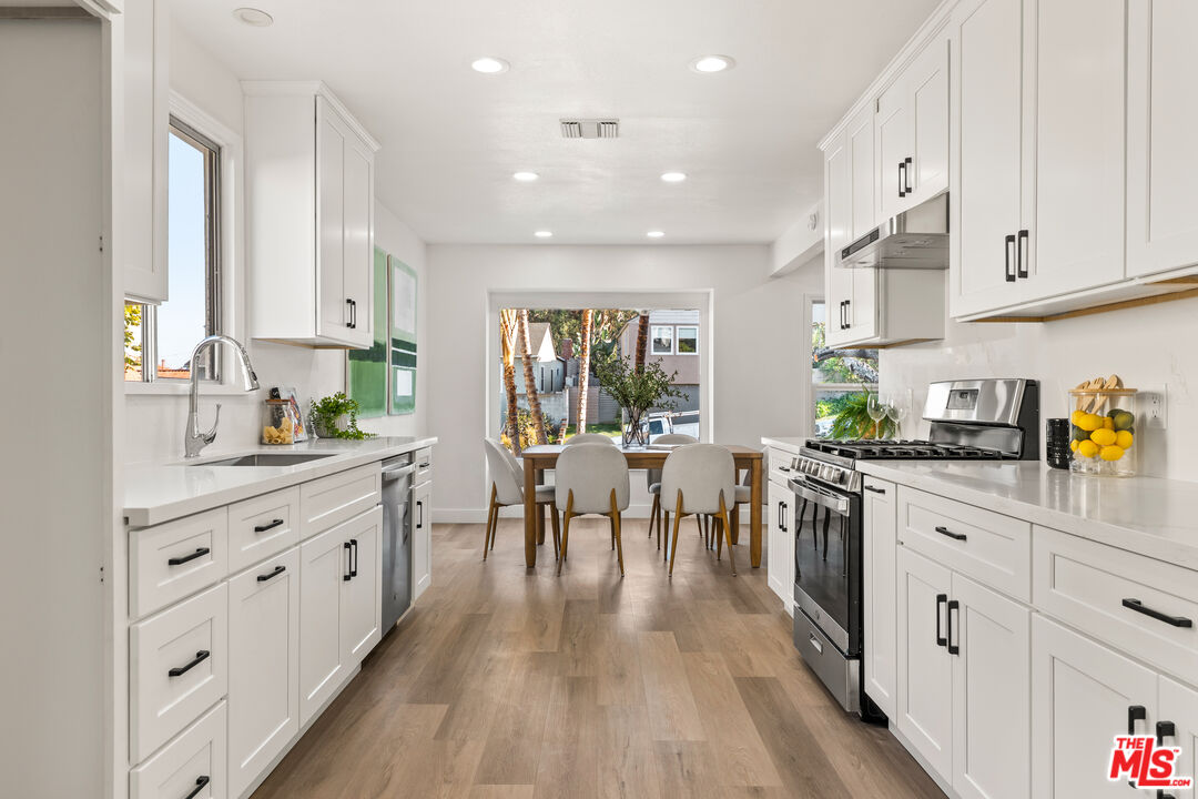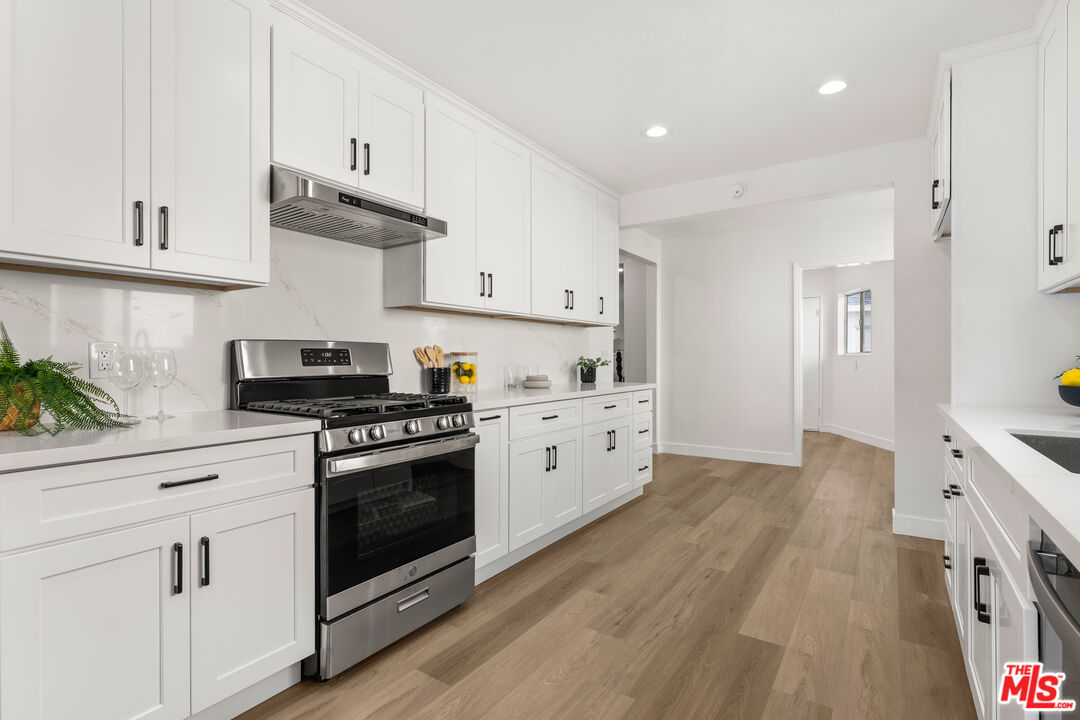 Welcome to 6027 W 76th Street - a beautifully reimagined four-bedroom, four-bath residence in Westchester's coveted North Westport Heights enclave. Thoughtfully blending timeless design with modern refinement, this home offers a graceful balance of comfort, sophistication, and effortless California indoor-outdoor living. Inside, an inviting formal living room anchored by a classic fireplace sets the tone for warmth and connection. Toward the rear, a spacious family room with custom built-ins opens seamlessly to the backyard - perfect for both entertaining and unwinding. The formal dining area overlooks the landscaped front garden, while the remodeled kitchen impresses with quartz countertops, white shaker cabinetry, stainless steel appliances, and generous storage - a space where style meets function. Outdoors, the property unfolds into a private retreat designed for relaxation and gathering. Three distinct terraces offer an array of experiences: a lower level with a sparkling pool and spa, a middle patio with a built-in barbecue for al fresco dining, and an upper terrace with sweeping city views, a lush lawn, and a charming gazebo. Upstairs, the expansive primary suite serves as a tranquil sanctuary with its own fireplace, city-light vistas, and a spa-inspired ensuite featuring a soaking tub and separate shower. A secondary ensuite bedroom on this level adds comfort and versatility, complete with an oversized bath featuring a soaking tub and separate shower. On the main level, two additional bedrooms include one with its own ensuite bath, while the other enjoys a guest bathroom in the hallway with a step-in shower. Additional highlights include a full-size laundry room with storage, a detached two-car garage, and a long driveway offering ample parking or potential for a future studio or pool house. Perfectly situated near Westchester's vibrant shops, restaurants, beaches, and the best of LA's Westside, 6027 W 76th Street embodies elevated Southern California living - where classic design, modern luxury, and location converge in effortless harmony.
