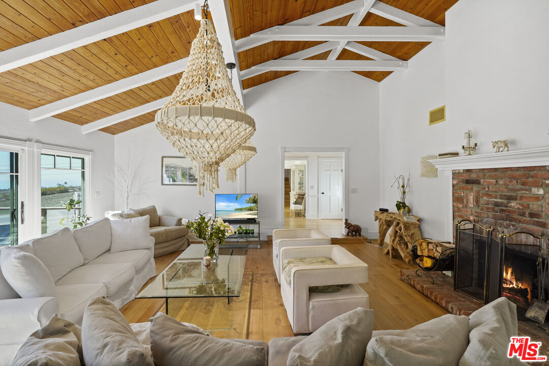 Gated and remodeled home on just shy of an acre, zoned equestrian with horse stalls and tack room. Gorgeous property with stunning ocean and sunset views, pool, spa and separate guesthouse. An ideal Malibu location, just a short distance to the world acclaimed, wide-open, sandy beaches of Zuma; with excellent surfing for all levels. Play volleyball and use the boardwalk for walking, jogging or biking. Nearby shopping, restaurants, banking, schools, amazing hiking, biking and horse trails to explore for miles. Main home is approx. 3,613 square feet with 5 bedrooms, plus maid's room with separate access. Additional detached guest home has its own entrance (and parking space) with 7th bedroom and approx. 558 square feet, totaling approx. 4,171 square feet in living space overall. The primary suite is located separately on the 2nd floor, with ocean and mountain views, three walk in closets and romantic sitting room with wood burning fireplace. Upon entering the home you are greeted by an enormous great room with high ceilings with exposed beams, wood burning fireplace and French doors to a balcony. Recently remodeled kitchen with outdoor breakfast area. Impressive library with loft and built-in shelves. French doors lead out from the family room and wet bar to the beautiful backyard. Enjoy several gardens with sitting areas and a built-in barbecue. Towards the back of the property is the horse facility with stalls, tack room and open space for horses to play.