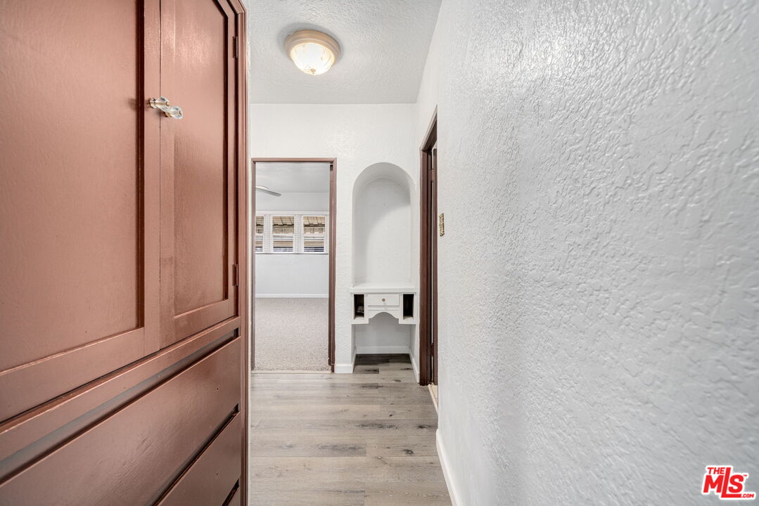 A historic opportunity to purchase a home in one Los Angeles' growing areas: First time on the market in over 30 years, this beautiful home has been impeccably cared for and updated with uncompromising integrity, awaiting its next generation of owners. This 2-bed, 1-bath Spanish blends old-world charm with thoughtful, modern updates. Showcasing the distinctive elements of Spanish architecture, such as the iconic red clay tile roofing and smooth stucco exterior, this residence embodies both timeless beauty and lasting design, while celebrating exquisite attention to detail and orientation. The timeless splendor with contemporary twist can be the perfect space for entertaining, for a family of all ages. From the moment you step inside you are greeted by arched ceilings and a stately fireplace that complements the home's grandeur. Then, the formal dining area flows seemingly into the freshly painted kitchen which leads to a breakfast nook with original cabinetry; a perfect setting for your first sip of coffee in the morning. Both bedrooms have been recently updated with fresh paint and floors and the spacious bathroom boosts built in cabinetry; the perfect balance between old world charm and modern comfort as many original doorknobs are still in place. A spacious laundry area available for your splendor leads you to the side door and transports you to the newly re-designed backyard which serves as private oasis, featuring drought resistant verdant landscaping and DG pathways quintessential for al fresco dining while basking in the California sunshine. The front yard features lush palm trees and manicured hedges which creates a tranquil, tropical ambiance. A rare opportunity to be the next steward of this lovingly cared for home.