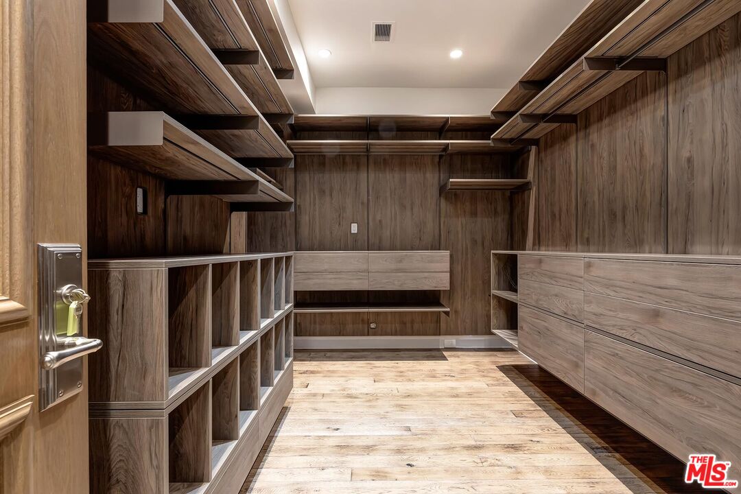This remarkably tasteful custom 2019-built 3-level Traditional on a world-renowned road is available for sale for the first time. Featuring super high ceilings, incredible materials, exquisite stone and herringbone wood floors, detailed mouldings, wainscoting, built-ins, and smart-home technology. Grand and gracious 2sty entry with inlaid marble floors, clerestory windows, and a sweeping staircase flows perfectly to the gallery hall, stunning library/living, dining, and family rooms. Beautiful elevator and secondary staircases to all floors. Phenomenal main and prep kitchens with top stainless appliances. Kitchen opens to major dining and family rooms which lead to a wide covered/heated patio and resort-style private grounds with patios, pool, spa, fountain, pergola, outdoor shower, and pool house (guest unit) with bath. 4 (or 5) bedroom suites upstairs displaying bathrooms as "works-of-art". Substantial primary retreat with large office (possible 5th upstairs bedroom), 2 walk-ins, 2 luxe baths, fireplace, and an amazing nearly 60ft wide rear balcony with treetop views. Enormous secluded main floor bedroom suite could readily be a 2nd primary. Lower level features natural light, 2 big bedroom suites, a comfortable central entertaining space, wine cellar, and direct access to an enormous 5 car subterranean garage (nearly 1,300SF) and large storage room. Two separate laundry spaces (2nd floor and lower level) for convenience. Sited just moments from internationally acclaimed shopping, dining, hotels, medical services, and entertainment, the epitome of a luxurious lifestyle resides here. Shown only to highly pre-qualified buyers.