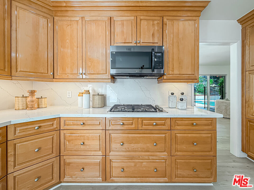 Discover a haven of tranquility and elegance at 6129 Rod Avenue, nestled in the prestigious Valley Circle Estates Woodland Hills at its finest. This 4-bedroom, 2.5-bath single level residence spans approximately 2,293 square feet on a generous 12,644-square-foot lot, offering privacy, modern updates, and effortless SoCal living.Step inside to an open, bright floor plan filled with natural light from three huge stunning picture windows and a sliding glass door, that create a seamless indoor-outdoor flow and frame serene views of the lush yard. The inviting kitchen features modern appliances including double ovens, refrigerator, and dishwasher plus new countertops, perfect for both casual dining and entertaining. High-pitched ceilings and recessed lighting further enhance the home's spacious, airy ambiance.The en-suite primary bedroom opens directly to the backyard with views of the sparkling pool and spa. It offers a walk-in closet and a designer bathroom with dual vanities and stylish finishes. Three additional bedrooms provide flexibility for family, guests, or a home office. A convenient laundry room with washer and dryer, central A/C, and a thoughtfully remodeled powder room complete the interior.Outdoors, the private backyard is a true retreat with a variety of fruit trees, a recently replastered pool and spa, built-in BBQ, and a covered patio with ceiling fan and charming gazebo perfect for relaxing or al fresco dining. A lovely brick-lined entryway adds timeless curb appeal. Located near award-winning schools, fine dining, The Village, The Commons, premier shopping, and scenic hiking trails, this home embodies the very best of Woodland Hills living.