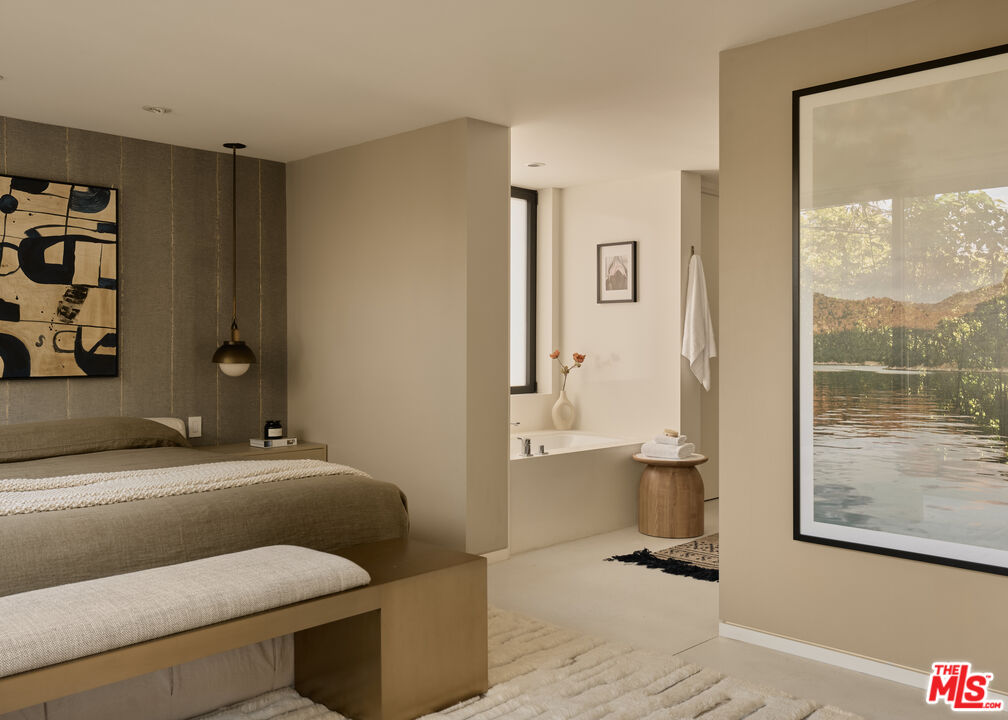 Ultra-sophisticated, this modern Venice residence showcases walls of glass, expansive living spaces, and a private rooftop deck capturing sweeping views. Spanning nearly 3,000 square feet, the three-bedroom, four-bath home offers a refined coastal lifestyle just moments from the boutiques and dining of Abbot Kinney and the beach. The main level unfolds as a bright, open-concept floor plan where floor-to-ceiling windows flood the interiors with natural light and create a seamless indoor-outdoor feel. Anchoring the dining area, a double-sided fireplace adds architectural presence, while the adjacent chef's kitchen features a sculptural island, integrated appliances, and a marble backsplash. The primary suite is a serene retreat, highlighted by a wall of glass overlooking lush greenery and a spa-like bath with a glass-enclosed shower, soaking tub, and dual-sink vanity. Designed for both elevated entertaining and relaxed everyday living, the expansive rooftop deck offers a true outdoor oasis with a built-in BBQ, lounge seating, dining area, and fire pit, perfect for hosting or enjoying intimate evenings with sweeping vistas. Thoughtfully designed throughout, this residence delivers both style and function in one of the Westside's most coveted locations.