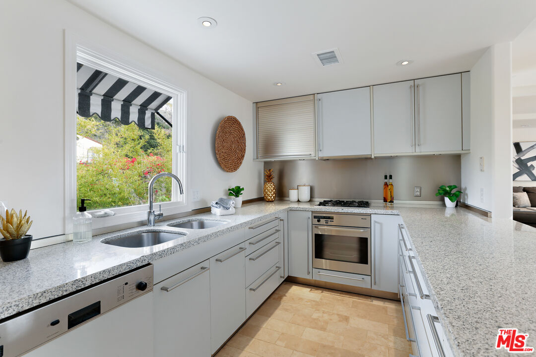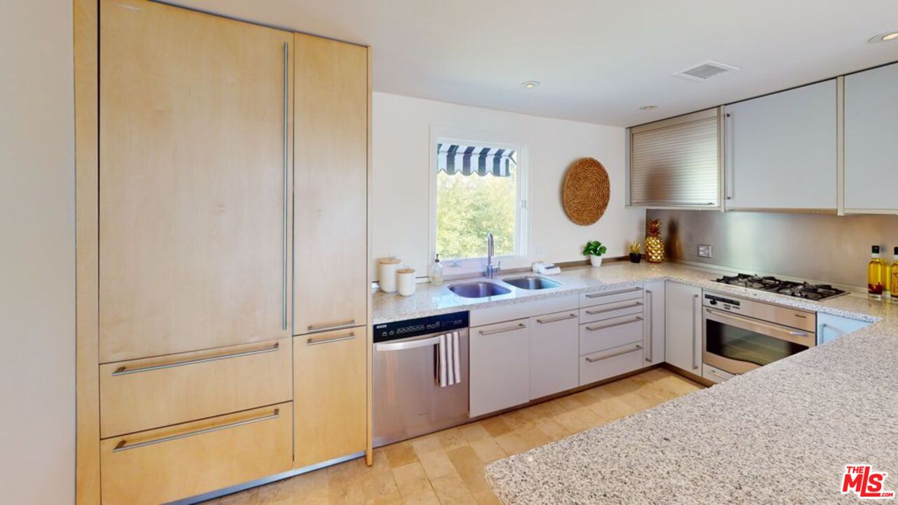 Perched just below the iconic Hollywood Sign, this hillside retreat is pure California cinema. The kind of address where martinis are shaken, not stirred, and the sunsets deserve their own applause. Whether you're making your grand entrance to the Golden State or simply ready for your next act, this home delivers the lifestyle worthy of its marquee location. Step inside to discover a main level starring two bedrooms, two-and-a-half baths, Travertine floors, dramatic windows, French doors, and a dual-sided fireplace straight out of a studio set. The dining area glows beneath a chic Sputnik chandelier while jetliner views set the scene. The European-inspired kitchen co-stars with stone countertops, designer cabinetry, high-end appliances, and a 2022 Sub-Zero-style refrigerator, a perfect space for midnight conversations and impromptu dinner parties. The primary suite is a showstopper, featuring sweeping views of the Griffith Observatory and a private ensuite retreat made for slow mornings and late-night scripts. Down below, a bonus suite with exterior access offers a bedroom, bath, and kitchenette ideal for guests, live-in support, or that visiting friend seeking a little LA liberation. Outdoors, a remodeled wrap-around deck invites you to savor the city lights with a gin and tonic in hand, while the fenced yard keeps Rex and Dolly content between takes. A two-car tandem garage and city-permit street parking complete the production. This isn't just a home, it's Hollywood living at its most dazzling. Cue the spotlight.