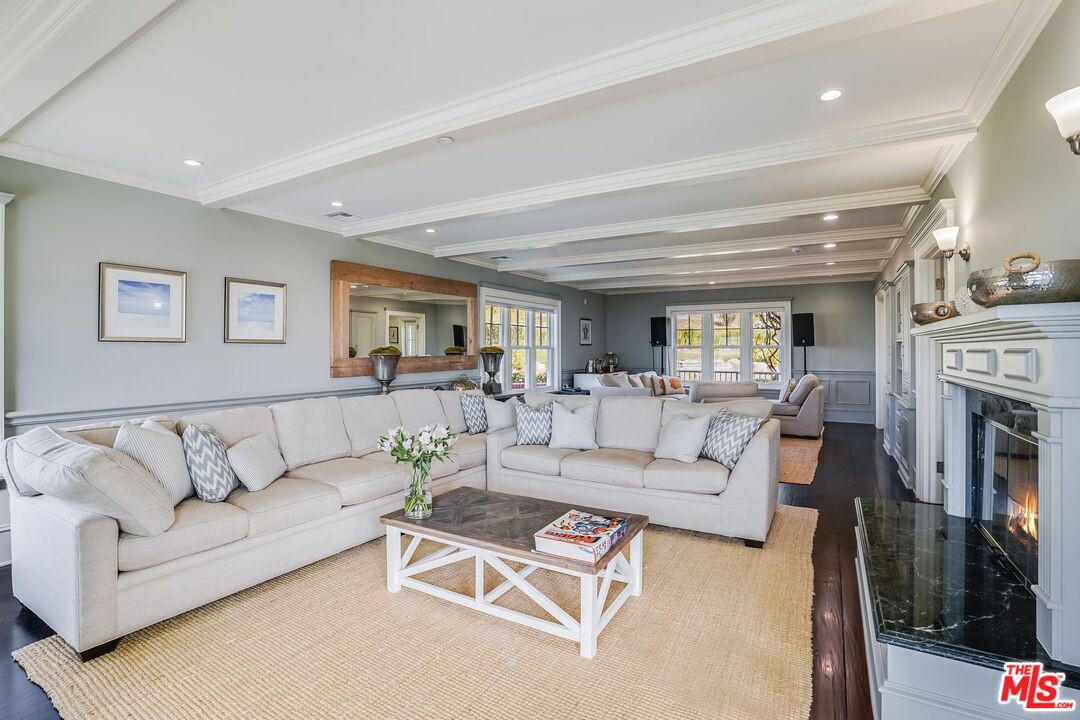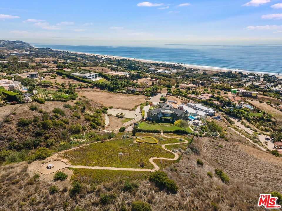 Nestled within an exclusive gated community, this exquisite Cape Cod style estate offers the ultimate in coastal luxury and understated elegance. Fully gated and private, the residence captures panoramic ocean and mountain views from nearly every room and is perfectly designed for both grand entertaining and comfortable everyday living. The six -bedroom and six-bath main house features hardwood floors throughout and a stunning entry with a sweeping staircase. The formal living room showcases bay windows, a fireplace, and French doors that open to a resort-style outdoor oasis with a sparkling pool and spa, fire pit, and multiple seating areas for entertaining. A formal dining room with coffered wood ceilings and a gourmet kitchen with a central island w/ Carrera marble countertops, and high-end appliances complete the main level. Upstairs, the romantic primary suite offers a fireplace, dual walk-in closets, and a luxurious ocean view spa bath. A dedicated two-bedroom plus den kids' wing, along with an additional en- suite bedroom, provide ideal spaces for family or guests. The dramatic fourth-floor rotunda makes for a stunning ocean-view office or retreat. The lower level features a versatile fifth bedroom or gym, a pool table/game room, an additional bedroom, and a laundry room and dry sauna. Additional highlights include a three-car garage and a large grassy yard surrounded by mature trees and a walk path that winds its way down to the detached guesthouse. The separate, detached guest house with wraparound decks and a full kitchen and laundry, enjoys sweeping ocean vistas perfect for guests, an office, or studio. Expansive landscaped grounds include a charming waterfall and a secondary solar power system. Experience privacy, sophistication, and the best of Malibu coastal living in this one-of-a-kind estate.