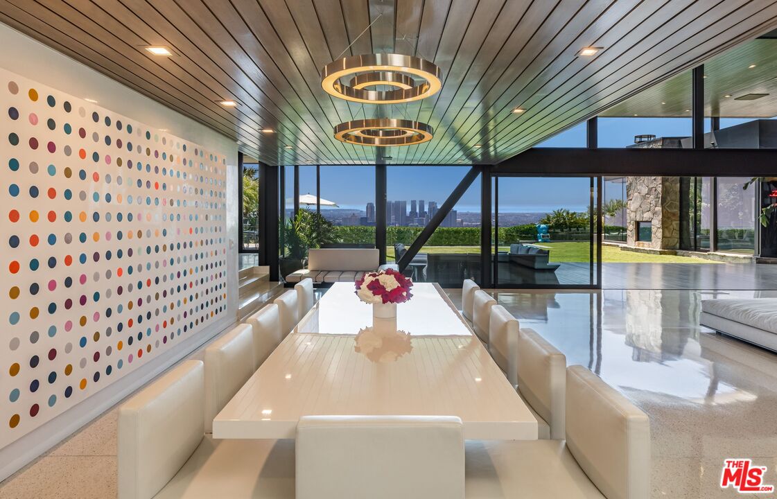 Elvis, Sinatra, Dean Martin: there's good reason that the world's style masters chose to call Trousdale home. Architectural tour de force in the most coveted location of Beverly Hills, Trousdale Estates. Originally designed in 1973 by renowned architect Amir Farr and reimagined by Belgian-born designer Maxime Jacquet, this Lautner-esque modern estate captures the essence of California living. Constructed from glass, steel, stone, and redwood, the residence spans over 8,000 SF and sits at the end of a quiet cul-de-sac. A soaring two-story living room with retractable glass walls frames sweeping city-to-ocean views and opens seamlessly to the expansive lawn, outdoor lounge, and infinity pool and spa. Inside, a sleek kitchen flows into the family room, while the interiors pay homage to the 1970s' open-space aesthetic with a sophisticated, earth-toned palette. The lavish primary suite offers its own lounge, stone fireplace, walk-in closet, and panoramic vistas. Designed for entertainment and relaxation, the estate includes a tiered screening room with state-of-the-art sound, fully integrated Crestron automation, and interiors that balance architectural drama with livable luxury in one of Beverly Hills' most exclusive enclaves.