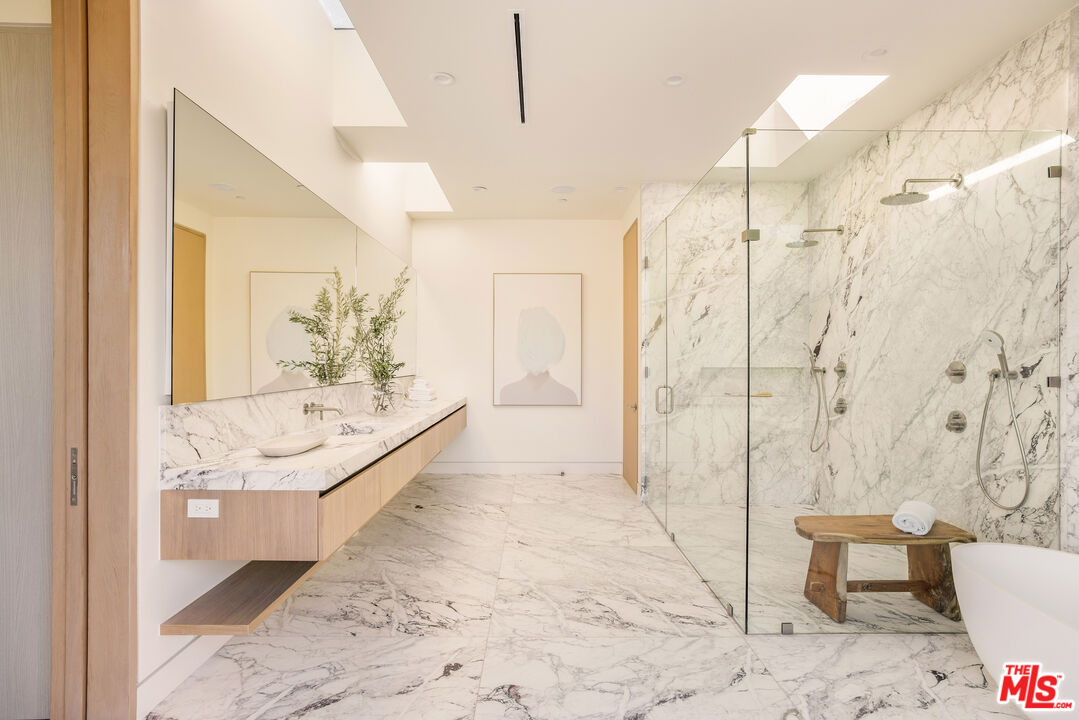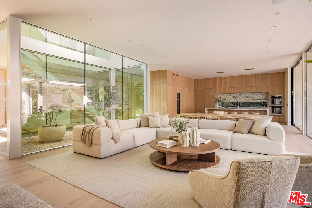A stunning brand new warm contemporary by Wylan James and Ezequiel Amado Cattaneo Architects. Featuring an incredible blend of design and architecture located on one of Brentwood's most prime streets. A stunning light filled entry and living room with center courtyard & open floor plan are perfect for large scale entertaining or intimate gatherings. High ceilings, walls of glass and warm light woods throughout create a calming ambience. An Incredible kitchen, family/great room open to the private grassy garden and pool, office, theatre, gym/wellness area, and separate guest house. There is a large primary suite with huge closets and luxurious spa like baths. Incredible materials, craftsmanship and exacting details for the most discerning.