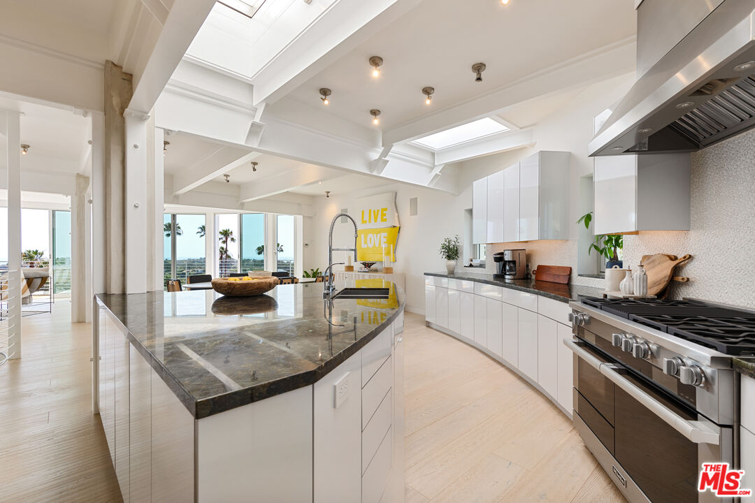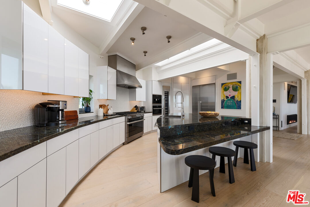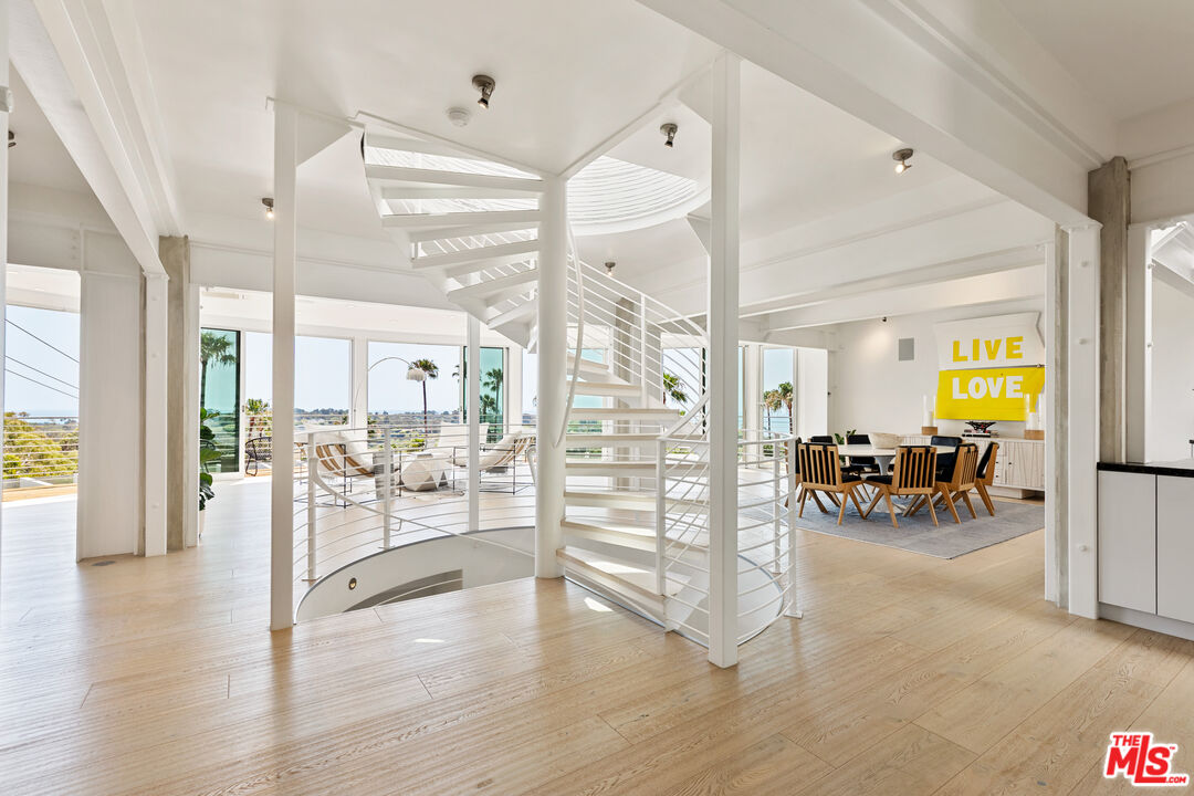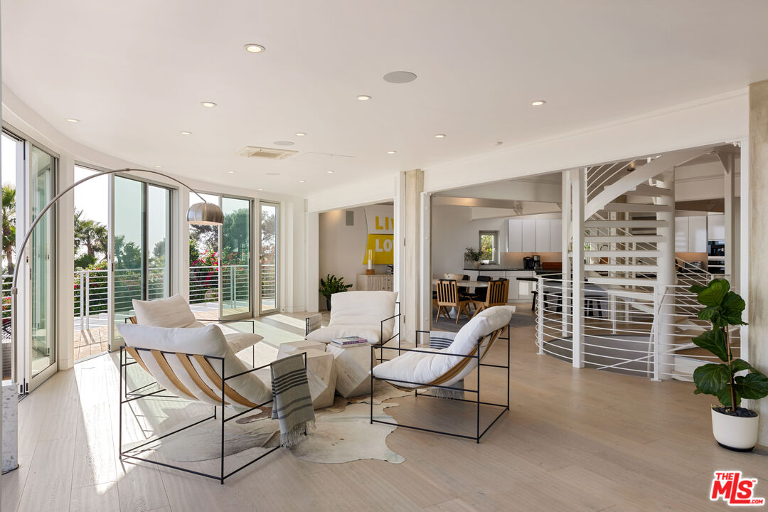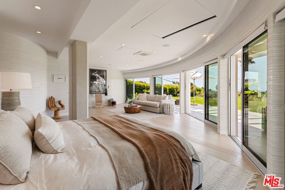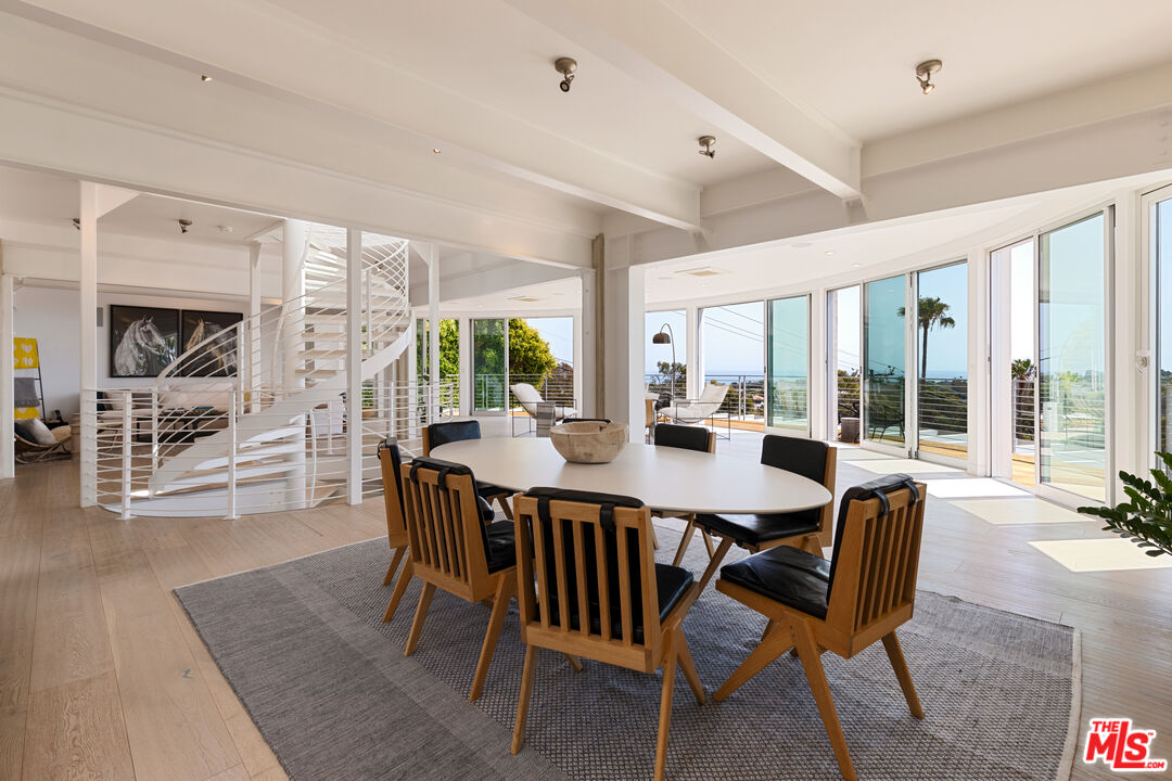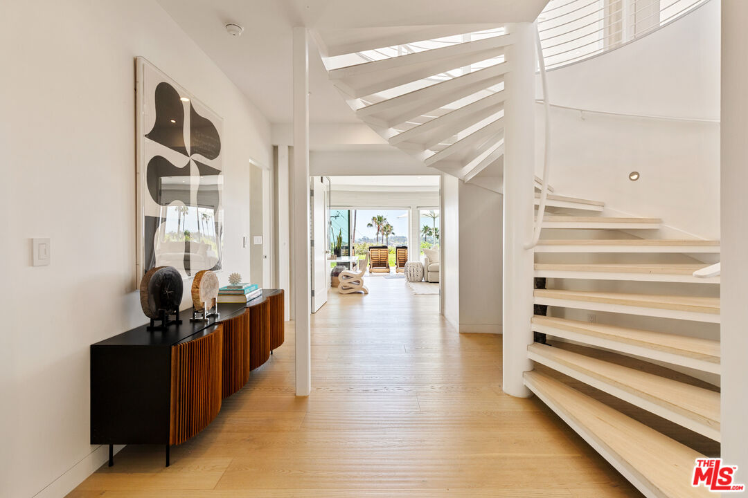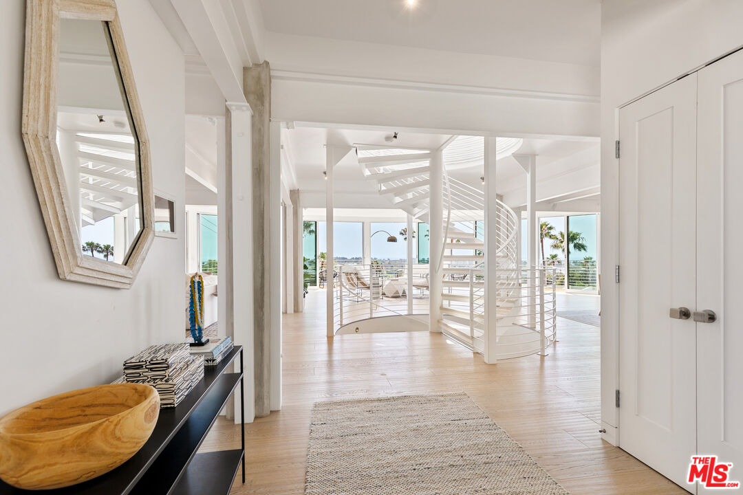 Presenting the Malibu Water Tower House - an iconic architectural residence where history, design, and panoramic ocean and mountain views converge. Originally constructed as a Malibu water tower and later transformed in the early 1980s by renowned local architect Doug Rucker, the home retains its distinctive cylindrical form while adapting seamlessly to modern living. The result is a rare example of sculptural architecture that feels both timeless and uniquely Malibu. Set at the end of a quiet cul-de-sac within the exclusive gated Cavalleri enclave, the property offers privacy and a true sense of retreat, with convenient trail access and a central location just minutes from Malibu's top beaches, markets, schools, restaurants, and local amenities. Completely renovated, the interiors feature a clean, modern aesthetic with warm natural materials. White Oak floors, curated designer finishes, and a central spiral staircase define the space, while walls of glass open to two wraparound decks, creating effortless indoor-outdoor flow. The main level unfolds as an open-concept great room, where the living and dining areas connect to a refined yet functional kitchen equipped with Miele appliances, Labradorite stone countertops, a gas range with dual ovens, and a large island with bar seating. Upstairs, the rooftop deck captures 360-degree unobstructed views from the Santa Monica Pier to Palos Verdes and Catalina Island, extending to the whitewater at Point Dume. Downstairs, the primary suite offers a private ocean-view retreat with a lounge area, motorized drop-down television, walk-in closet, and a spa-like bath with a free-standing porcelain soaking tub and dual rain steam shower. Two additional en-suite bedrooms and a separate one-bedroom, one-bath guest suite provide flexibility for guests, a workspace, or creative use. A generous grassy lawn wraps the home, with plans available for a pool. Additional features include a full-home Sonos system, remote-controlled blackout shades, two-car garage, driveway parking, and a laundry room. This is a coveted opportunity to own one of Malibu's most recognizable architectural properties - move-in ready and available fully furnished.