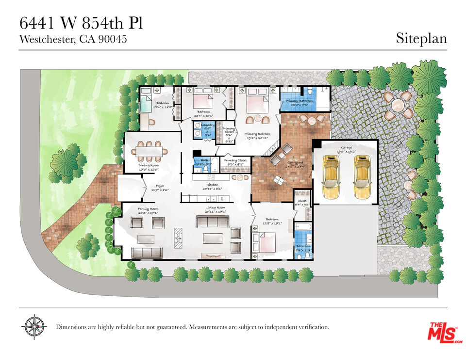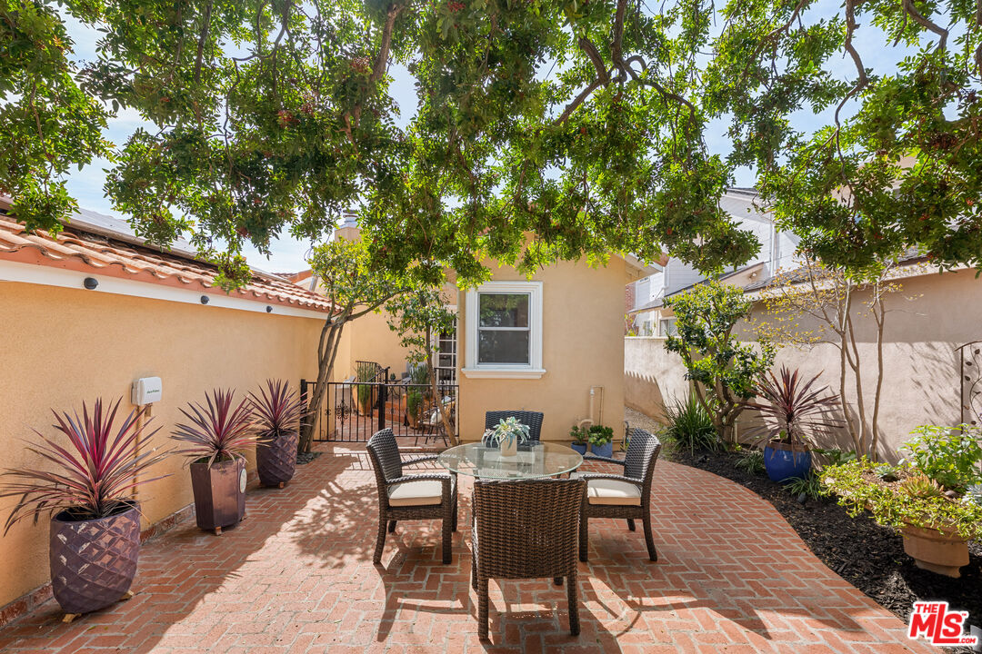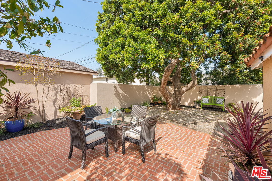 Welcome to this inviting Westchester residence, thoughtfully designed for comfort and effortless everyday living. This single-level home offers a beautifully considered layout that balances openness with privacy. The formal living room, highlighted by an oversized front window that fills the space with natural light, flows seamlessly into the family room, with the two spaces thoughtfully divided by a striking two-sided fireplace. Soaring vaulted ceilings extend across both rooms, creating an airy sense of scale while the shared fireplace adds warmth, character, and architectural interest at the heart of the home. Plantation shutters throughout provide elegant light control and privacy. The galley kitchen flows seamlessly from the living areas, offering stainless steel appliances, a dishwasher, microwave, refrigerator, and disposal. A cozy dine-in area makes everyday meals feel special, while two sun tubes overhead brighten the space naturally throughout the day. Tile flooring extends from the welcoming foyer, distinguished by an elegant compass-pattern inlay, through the kitchen, creating continuity and polish. This 4-bedroom home includes two ensuite bedrooms positioned on opposite sides for optimal privacy, ideal for guests, multigenerational living, or a home office. The guest suite boasts vaulted ceilings, a walk-in closet, bidet, and Jacuzzi tub/shower. The primary suite is a serene retreat with vaulted ceilings, skylight, fireplace, built-in armoire, and his-and-her walk-in closets. Two additional bedrooms offer flexible space, served by a hallway bath with tub/shower and built-in linen storage. A central courtyard connects multiple rooms, opening to a charming brick patio perfect for outdoor dining and relaxation. The walled-in private backyard offers complete seclusion. Situated on a corner lot, the property includes a detached two-car garage and eco-friendly upgrades including an owned solar system, water softener, and reverse osmosis system.