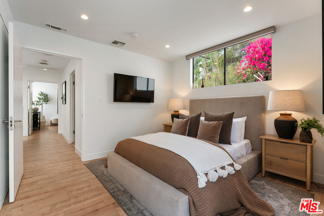 BEST OPPORTUNITY IN THE HOLLYWOOD HILLS!!!! Elevated above the city in the Hollywood Hills this striking modern retreat defines the pinnacle of California living. Floor-to-ceiling glass captures sweepingcityscapes and canyon vistas, while seamless indooroutdoor flow leads to sun-soaked patios, a sparkling pool, and intimate spaces for dining beneath the stars. The chef'skitchen is a true centerpiece, boasting a 6-burner Viking range, custom Dacor built-in refrigerator, new cabinetry, and generous counter space, designed to inspire bothculinary creativity and effortless entertaining. On the second level, an expansive living room opens to multiple terraces, each offering breathtaking views and creating anideal setting for gatherings large or small. A versatile office doubles as a media room, providing both functionality and style for modern living. Upstairs, the primary suite is aserene sanctuary, anchored by a fireplace and framed by gracefully curved windows that showcase the glittering downtown skyline. The spa-inspired ensuite features dualsinks, a rain shower, and a spacious walk-in closet, perfectly blending luxury with comfort. Two additional bedrooms are bright and generously proportioned, including onewith direct access to the sun-drenched, solar-heated pool. Every detail has been meticulously considered: smart lighting and shades, Multiple zoned SONOS home audio, CAT 5 Wiring, 240v EV charging, and refined finishes throughout. This home is for the discerning buyer who seeks sophistication, privacy, and effortless access to LosAngeles' finest dining, shopping, and cultural experiences. Fireplaces are strictly decorative.