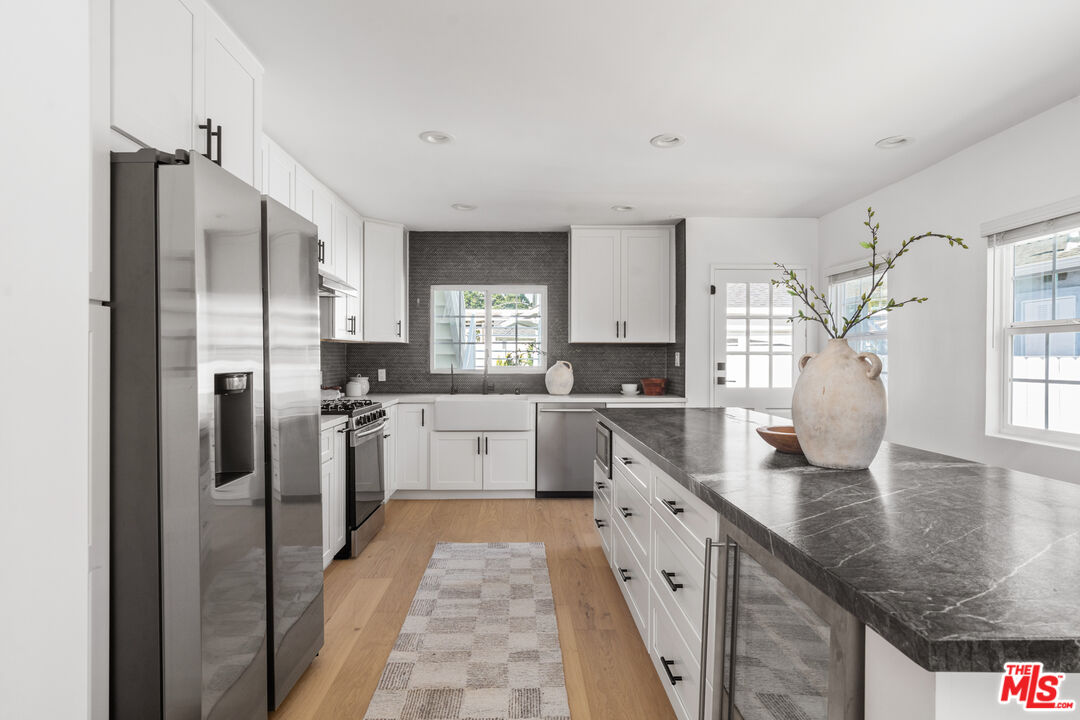 Welcome to this exceptional 5 bedroom 4 bath two-story family home nestled in the highly desirable Kentwood pocket of Westchester. Beautifully landscaped and set on an expansive 6,000+ square-foot lot, this property offers a rare, oversized backyard made even more impressive by the efficient footprint of a two-story design. Step inside to soaring ceilings and an abundance of natural light that immediately create a bright, welcoming atmosphere. The front family room flows seamlessly into a stunning chef's kitchen, highlighted by a massive island perfect for everyday dining, entertaining, and gathering. The main level features a private primary suite with an en-suite bathroom, walk-in closet, and large double vanity, along with two additional guest bedrooms that share a well-appointed hallway bathroom. Upstairs, a thoughtfully designed loft provides a flexible retreat ideal for lounging, a home office, playroom, or space for older kids while two spacious en-suite bedrooms complete a layout that mirrors new construction. A two-car garage offers ample storage or secure parking, and just beyond it sits a fantastic bonus space with an attached bathroom, perfect for a home office, gym, workshop, or pool house. The expansive backyard is an entertainer's dream, with room to add a pool, swing set, or outdoor living areas, all while still leaving plenty of space for kids to play. Enjoy your morning coffee or evening cocktail on the patio off the primary suite as you soak in sunny California days. Westchester is one of the most community-driven neighborhoods in Los Angeles, with many local schools located right within the neighborhood. You'll be friends with your neighbors in no time as residents are always out walking, gathering, and enjoying everything the area has to offer from Fourth of July block parties and a phenomenal Halloween to an unmatched holiday spirit. Zoned for the highly coveted Kentwood Elementary School, this is a home and lifestyle that truly shouldn't be missed.RTI plans for a brand-new ADU are available upon request.