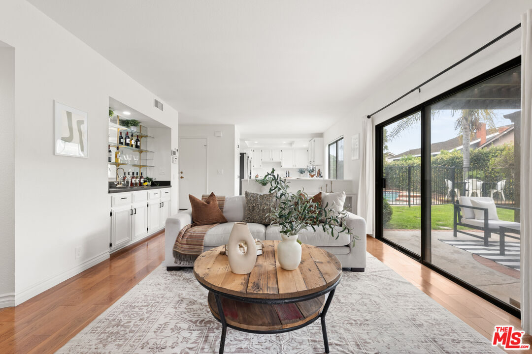 Nestled in the Heights at Ladera community, this beautifully updated 4 Bed, 2.5 Bath home offers a harmonious balance of contemporary style and everyday comfort. As you enter, the grand formal living room welcomes you with voluminous 18-foot ceilings and an abundance of natural light. The main level features a formal dining room, a newly remodeled kitchen with white cabinetry, quartz countertops, and stainless-steel appliances, plus a versatile secondary family room with an elegant wet bar, creating the perfect floor plan for entertaining or relaxing with friends & family. The lower floor also includes a convenient powder bath, laundry room, and direct access to the two-car garage, with plenty of built-in storage for everyday ease. The grand staircase serves as the centerpiece of the home, leading to all four bedrooms conveniently situated on the upper level. The expansive primary suite boasts soaring vaulted ceilings, a generously sized walk-in closet, and a newly renovated bath with a walk-in shower. The two secondary bedrooms share a newly renovated full bath, while the fourth bedroom functions perfectly as a home office, offering a versatile and family-friendly layout. Enjoy watching the sunrise & sunset in the spacious backyard perfectly designed for seamless indoor-outdoor living. Featuring a sparkling heated pool and jacuzzi with an enclosed safety gate, lush lawn with tall hedges for ample privacy, and a generously sized shaded patio area perfect for indulging in outdoor barbecues or weekend soires. Additional highlights include: a newly installed patio covering & exterior fence, a brand new automatic pool cleaner, exterior motion lights, security cameras, & Ring doorbell, along with ample street parking for guests. Nested in a tranquil enclave adjacent to Ladera Heights and only minutes from major freeways, LAX, SoFi, & Silicon Beach, this turnkey home offers an exceptional blend of convenience and serenity. Making its first market debut since 1985, this home blends timeless style, modern functionality, and a prime central location all in one.