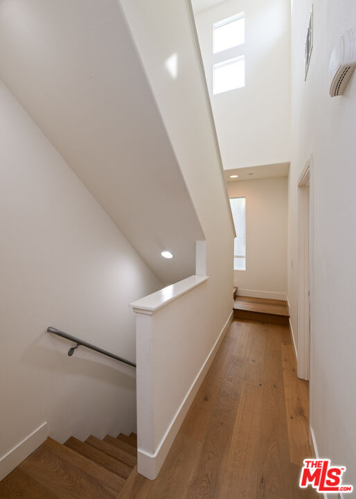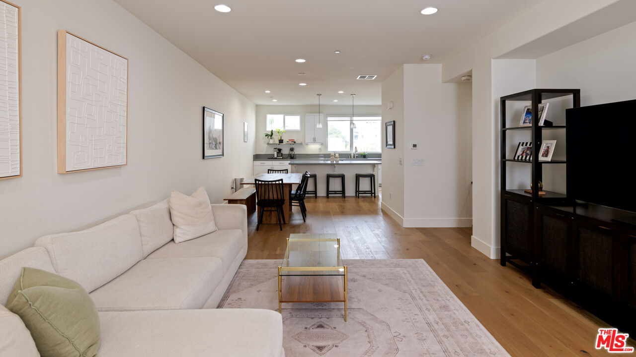 This contemporary retreat in Hancock Park, built in 2014, offers modern living just moments from the charm and convenience of Larchmont Villageone of the city's most coveted neighborhoods. Set within a secure gated community, this residence offers both privacy and unmatched accessibility. Designed with light, volume, and flow in mind, the 3-bedroom, 3.5-bath home offers 9-foot ceilings, windows on both ends for maximum light, and a private rooftop deck with sweeping 360 views of the Hollywood Sign and Downtown Los Angeles.The ground floor welcomes you with direct entry from a private two-car garage, alongside a flexible bedroom or office space ideal for guests or work. The second level unveils an open living and dining space, centered around a sleek chef's kitchen with custom cabinetry, premium countertops, and top-of-the-line appliances entertainer's dream framed by natural light on both ends. The third floor features two en-suite bedrooms and a dedicated laundry room, with the primary suite designed as a sanctuary: a generous walk-in closet, dual vanities, and a spa-inspired shower, evoking a sense of daily luxury. Crowning the home, the expansive rooftop patio transforms into an elevated lounge and dining space, a rare offering for hosting under the Los Angeles skyline. The HOA community offers guest parking as well as a common pet area. This is a residence that balances design, comfort, and an extraordinary location urban retreat that redefines modern city living.