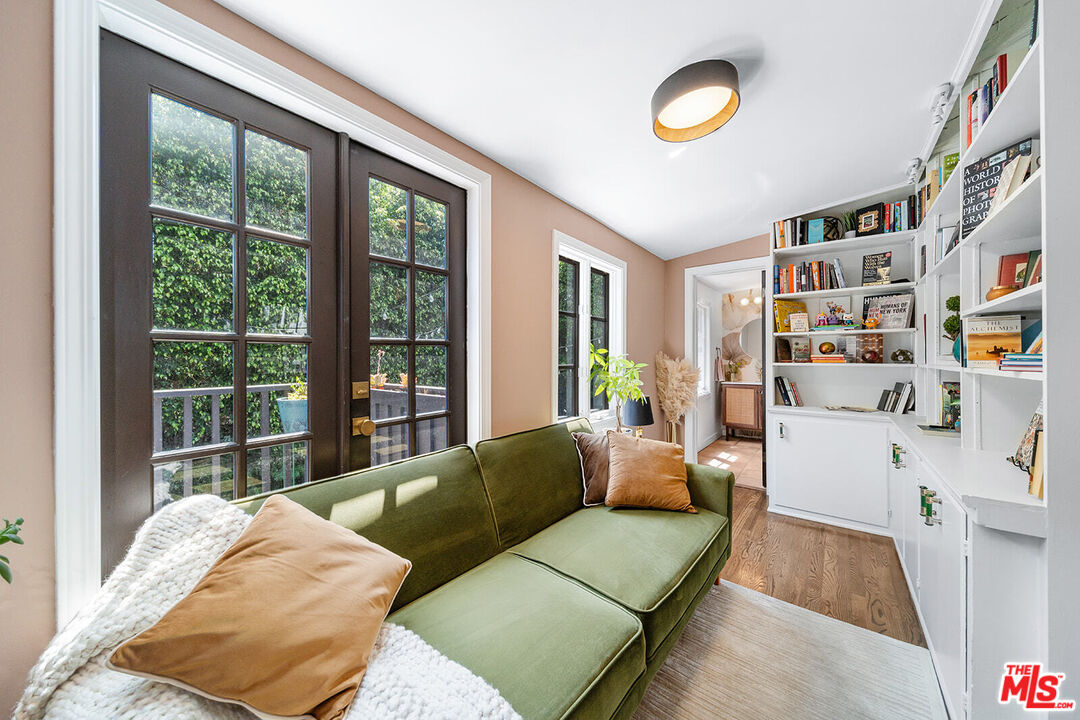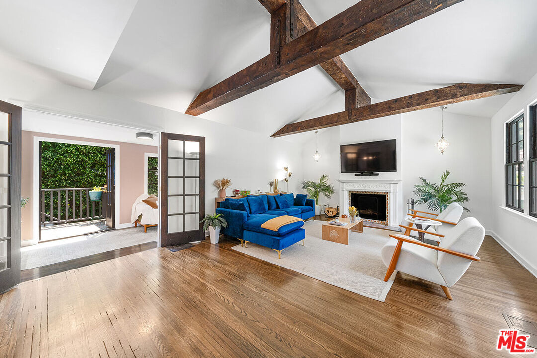 Oasis in the heart of the city, nestled in the Hollywood Hills, offering the perfect blend of tranquil sanctuary and Old Hollywood Charm with convenient access. The beautifully landscaped gated courtyard encompasses a lush flower garden with a gorgeous patio and a classic stone fountain. Built in 1927, this artful home showcases incredible Spanish Revival design elements -- an original stained-glass window, Spanish tile throughout, and a classic fireplace. You'll pass through the intricately carved 18th-century wooden entryway, where you'll be engulfed by the spacious living room enhanced by a vaulted ceiling, dramatic beams, Moroccan lanterns, a striking fireplace, original hardwood floors, and a formal dining area. All that next to a tastefully renovated downstairs bathroom and an adjacent sun room with a library that opens up through two sets of French doors onto the private back patio. The kitchen has been updated and offers stainless steel appliances, including a six-burner designer Wolf range, combining modern convenience with classic elegance. Upstairs, you'll find two bedrooms, a cozy balcony, and one bath providing a harmonious retreat. The rear yard is surrounded by mature hedges providing complete privacy. A native-plant garden, relaxing 8-person hot tub, larger-than-life Buddha fountain, and an additional deck create a meditative, shaded outdoor haven. Additionally, the home comes with two sizable bonus spaces that can be used as bedrooms, studios, offices, or flex spaces. The location of this home offers central proximity to major studios, renowned restaurants, and vibrant nightlife. The picturesque Lake Hollywood Reservoir is a twenty-minute hike through the hills, with iconic entertainment venues such as the Hollywood Bowl and John Anson Ford Theatre within a short distance. This one-of-a-kind sanctuary in an idyllic Hollywood Hills neighborhood has some of the most elevated, inspired aesthetics you'll find in Los Angeles! Available fully furnished with the right offer.