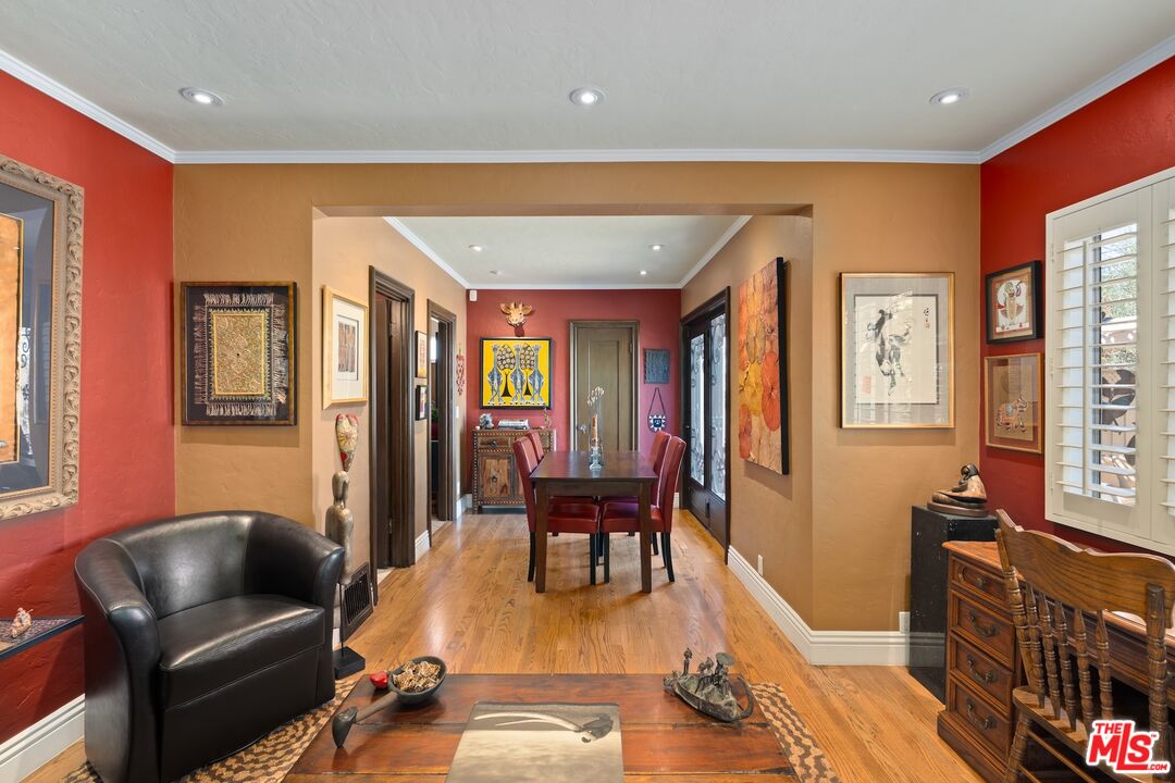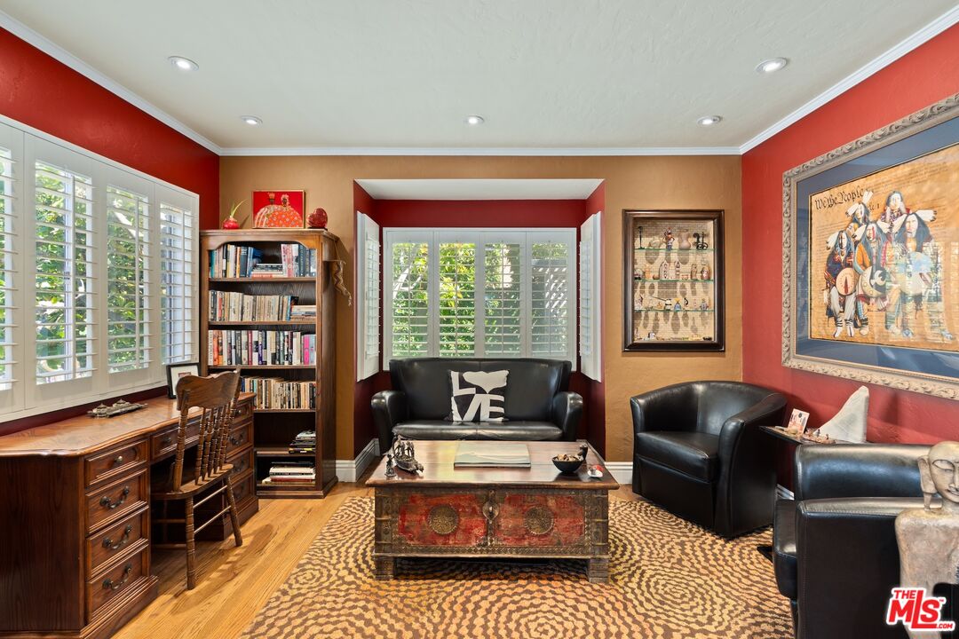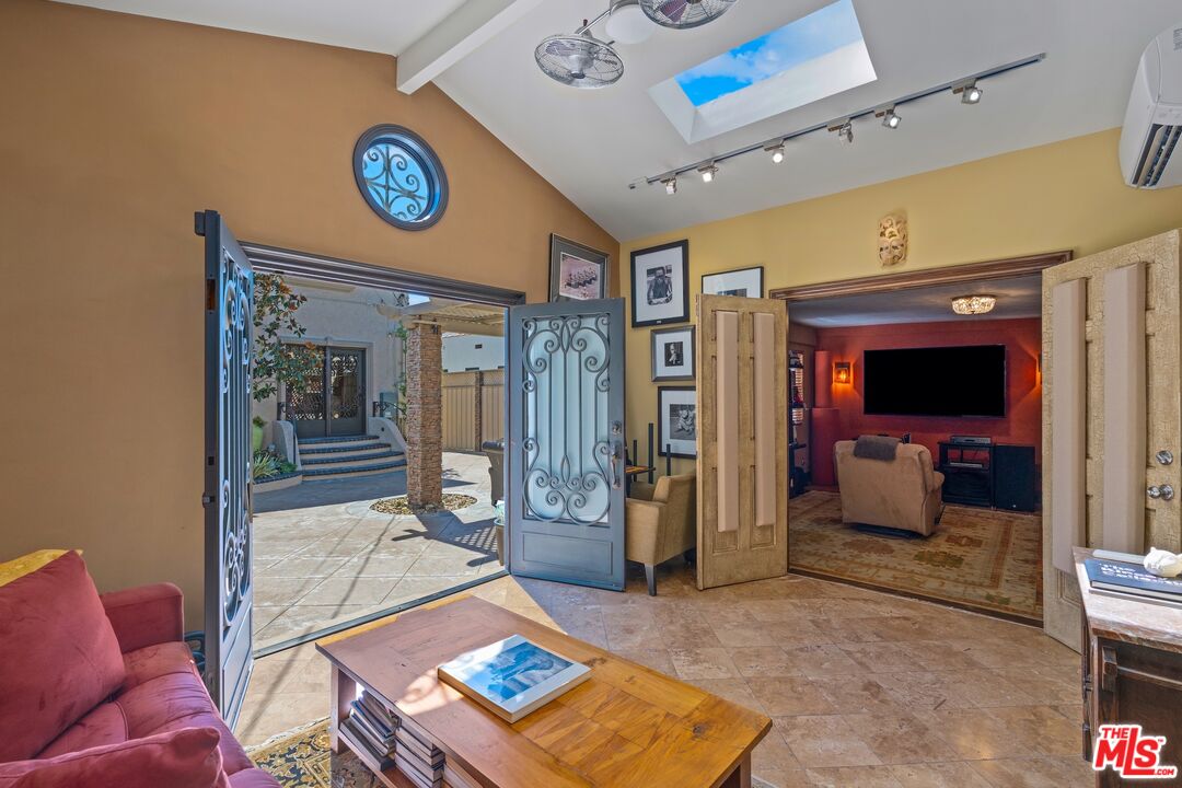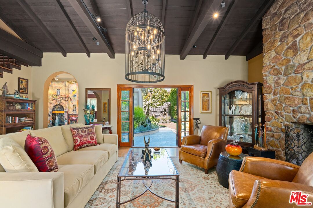 Your search for an elevated 1920s Spanish Revival concludes at 6657, where meticulous enhancements and preserved architectural romance anchor timeless character in the heart of Beverly Grove. Nestled behind mature hedges and a secure gated entry, the residence radiates a discreet elegance offering off-street parking, abundant natural light, and a fully permitted guest home for versatile living or hosting. Step inside to a vaulted, exposed wood-beam ceiling crowning the main level, a formal dining room, a thoughtfully appointed cook's kitchen with Wolf range, and an airy den flowing seamlessly to the tranquil backyard. Hand-wrought ironwork, a restored stone fireplace, and curated lighting honor the home's 1920s origins while embracing modern convenience. Upstairs, the primary suite with sitting room frames serene city and mountain vistas, while a secondary bedroom provides a welcome retreat from the city's vibrant pulse.Across decades of stewardship, worldly craftsmanship has shaped every finish from crackled door treatments, hand-stained baseboards, and refinished original oak floors to Ralph Lauren suede walls, designer lighting (Restoration Hardware, Swarovski), and bespoke iron railings. These artisan details give the home a layered sophistication that is rarely replicated in modern builds. The landscaped backyard, designed as a private oasis with bespoke fire pit and cohesive hardscape, also presents extraordinary untapped potential ample room for a pool addition, ADU expansion, or even thoughtful enlargement of the main residence. For buyers seeking not only a turnkey Spanish Revival but also the ability to imprint their own vision, this lot offers rare flexibility in Beverly Grove. Across decades of stewardship, no expense has been spared on upgrades ranging from new HVAC systems, full electrical/mechanical overhauls, custom roofing, to a Kohler generator, EV charging, clamped copper piping and more ensuring steadfast peace of mind. Although world-class dining, shopping, and cultural venues lie just beyond your doorstep, you may find little reason to leave this exquisitely maintained haven. For the connoisseur of historic architecture who values both authenticity and future-ready possibilities, a private viewing is strongly recommended. An extensively detailed record of improvements is available upon request.