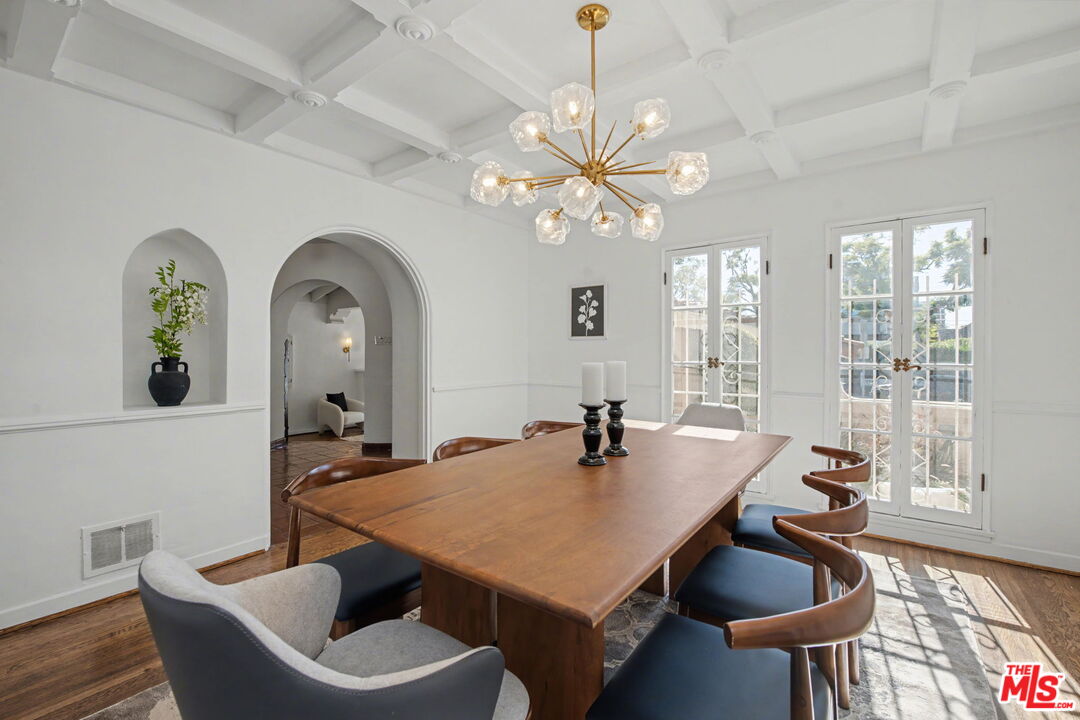 Step into timeless elegance with this stunning 1929 Spanish two-story home, overflowing with original charm. The formal foyer greets you with a sweeping staircase adorned with a wrought-iron railing, a true centerpiece. The living room dazzles with a vaulted ceiling, exposed wood beams, a fireplace, and a breathtaking leaded, stained-glass window. The formal dining room, with its wood-beamed ceiling, is perfect for intimate dinners or lively gatherings. The updated kitchen blends classic style with modern convenience, featuring quartz countertops, stainless steel appliances, and a cozy breakfast nook. Off the kitchen, the family room offers a second fireplace and door to the back yard. There is also one bedroom and full bath on this level. Upstairs, the primary suite is a peaceful retreat with two walk-in closets, a 1920s period-style bathroom, and a separate office. Two additional bedrooms share a beautifully preserved vintage bath. Below, the walk-out basement surprises with a kitchenette and versatile space perfect for a game room or gym with direct access to the backyard, made for enjoying SoCal living. This Spanish gem seamlessly combines historic charm and modern updates. Don't miss your chance to call it home!