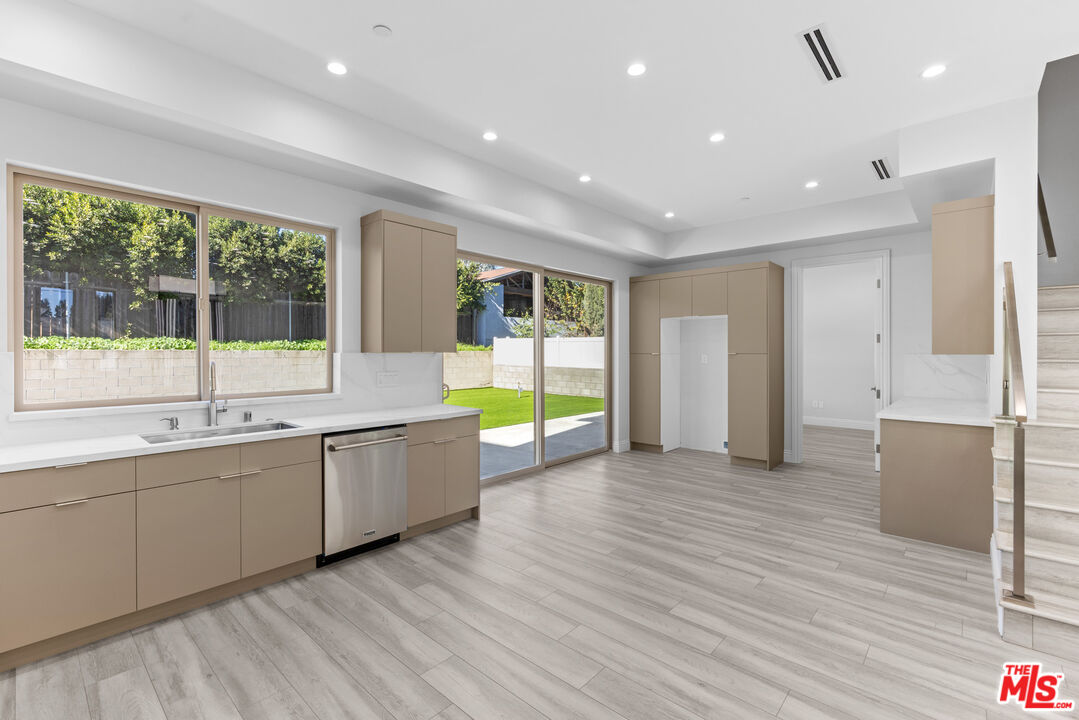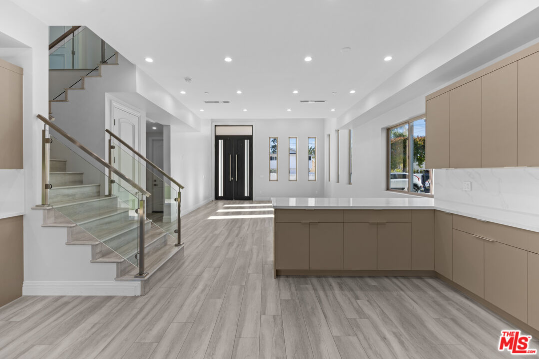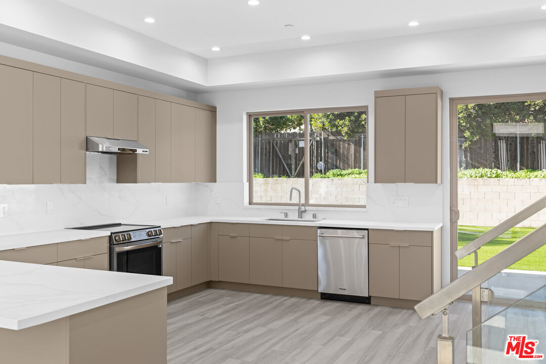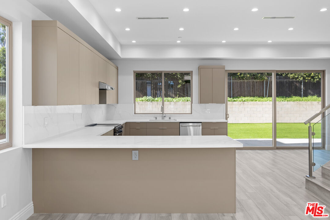 Located in the heart of Valley Glen, this striking 2025 new construction residence showcases contemporary architecture, refined finishes and a thoughtfully designed floor plan. A dramatic entry sets the tone, highlighted by 14-foot ceilings in the living room that create an immediate sense of scale, light, and architectural presence, while the remainder of the first floor offers 10-foot ceilings, enhancing the home's open, airy feel. The open-concept layout flows seamlessly into a sophisticated kitchen featuring sleek modern cabinetry, stainless steel appliances, and generous workspace designed for both entertaining and everyday living. The main level offers exceptional flexibility with two bedrooms, a full bathroom, and an additional powder room, ideal for guests, or a private home office. Upstairs, 9-foot ceilings provide generous volume with three generously sized en-suite bedrooms, each complemented by beautifully finished bathrooms that evoke a spa-like experience. The property is equipped with solar, modern electrical and gas systems, and all-new construction components, offering long-term peace of mind. Clean architectural lines and contemporary finishes complete this turnkey offering. Blending elevated design, modern efficiency, and a prime Valley Glen setting, this home presents a rare opportunity to own a brand-new luxury residence within an established neighborhood.