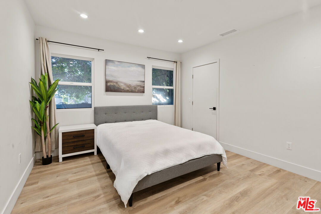 Beautifully renovated single-story contemporary home located on a quiet cul-de-sac, offering exceptional privacy and modern California living. The single-story layout unfolds with an open, light-filled floor plan highlighted by wide-plank wood flooring, vaulted ceilings, and clean architectural lines that create a sense of effortless flow throughout the home. Expansive glass doors frame views of the private backyard and invite abundant natural light while seamlessly connecting the interiors to the outdoor living spaces. The heart of the home opens to a resort-style setting, where a heated pool and spa are surrounded by mature hedging, multiple lounge areas, and thoughtfully designed landscapingcreating a tranquil retreat ideal for both relaxation and entertaining. The residence features four bedrooms and three bathrooms, including a detached ADU offering flexibility for guests, work, or extended living. Each space has been curated with modern finishes, refined materials, and a cohesive aesthetic that prioritizes comfort and functionality. A gated driveway with generous parking enhances privacy and convenience, while the home's central location places it moments from premier shopping, dining, and everyday amenities. With its seamless indoor-outdoor living, this property presents an exceptional opportunity in one of Los Angeles' most desirable neighborhoods.