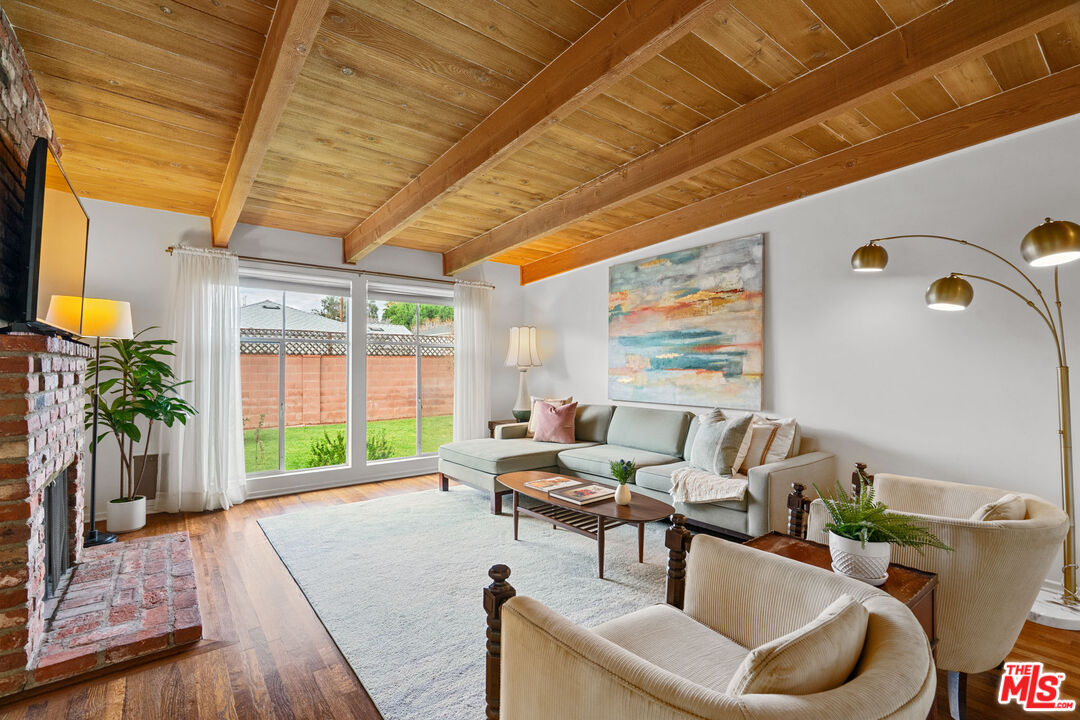 Set on a quiet cul de sac street in the heart of Chisholm Estates, this mid-century inspired ranch opens to light-filled living spaces and an easy connection to the backyard. The living room is filled with soft natural light through large windows overlooking the yard, while the dining room opens to the backyard through a sliding glass door, creating a gentle indoor-outdoor rhythm.Refinished wood floors run throughout the home, and a double-sided brick fireplace sits between the living and dining rooms, anchoring both spaces. The rooms flow easily, with clear separation between living areas.The kitchen moves comfortably into daily life, with a stainless hood fan, breakfast bar seating, and a built-in bar that naturally becomes a place for everyday meals or casual get-togethers. With views into the living areas and out to the backyard, it stays visually connected to the rest of the home. An eat-in kitchen area provides additional space for prep, work, or unhurried mornings.Three bedrooms are filled with natural light and offer flexibility for everyday living, work-from-home, or welcoming guests. The primary bedroom includes an attached full bath, complemented by an additional bathroom, a spacious laundry room, and a large two-car garage that support the home's practical, thoughtful layout.Central air and heat, along with a newer HVAC system, provide year-round comfort. Outside, the backyard remains quiet and manageable, with a covered patio well suited for outdoor meals, slow afternoons, or winding down at the end of the day.Surrounded by mature trees and well-established neighboring homes, Chisholm Estates offers a serene neighborhood setting, with parks, golf, shopping, dining, and major freeways all close by.
