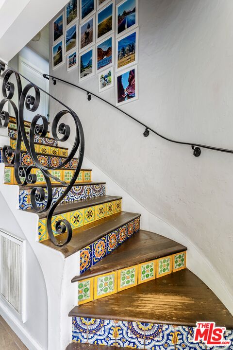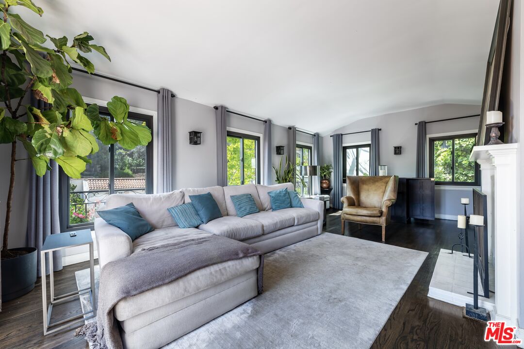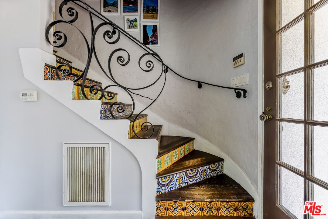 Welcome to this beautifully reimagined two-story Spanish in the heart of the Hollywood Hills. Full of character, natural light, and modern updates, this home combines timeless charm with today's functionalityplus a brand-new ADU for income potential, guests, or creative space.Step inside and you're greeted by large windows and an inviting flow. To the left, a recently updated kitchen features stone counters, re-engineered wood floors, and stainless steel appliances. The adjoining dining area offers views of the hills, creating the perfect backdrop for dinner parties or morning coffee.A stunning staircase with hand-painted Spanish tiles leads to the upper level. Here you'll find the primary suite, complete with an attached bonus room ideal for a home office, nursery, or cozy lounge. The renovated bathroom and guest bedroom both showcase charming beamed ceilings that bring warmth and character.The top-floor living room is a showstoppersoaring beamed ceilings, a dramatic fireplace, walls of windows, and doors that open to a spacious balcony with panoramic Hollywood Hills views.Downstairs, the newly built ADU (2023) offers its own kitchen, living area with exposed beams, bedroom, and full bath. This versatile space has its own private entrance and even connects to a generous basement that can serve as storage, a reading nook, or an office.Out back, you'll find an intimate outdoor area with just enough room for entertaining without the upkeep of a large yard.This is a rare opportunity to own a quintessential Hollywood Hills home with income-producing potential, modern updates, and timeless Spanish charm.