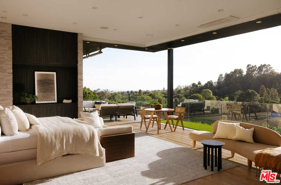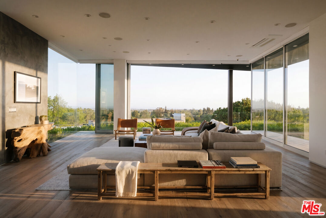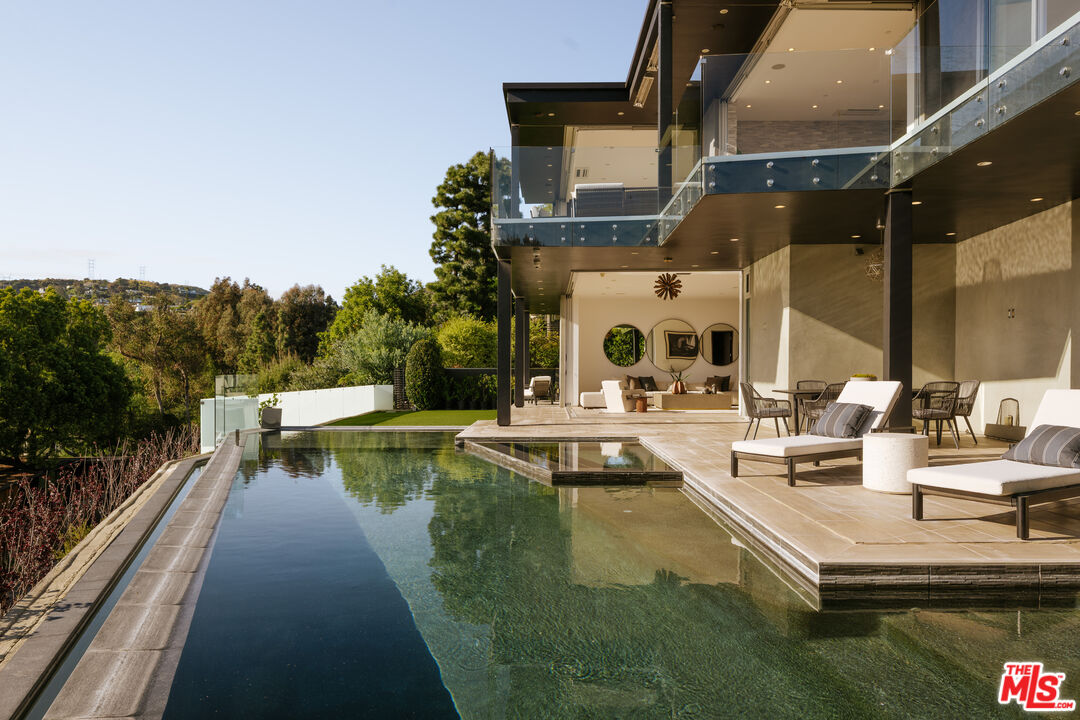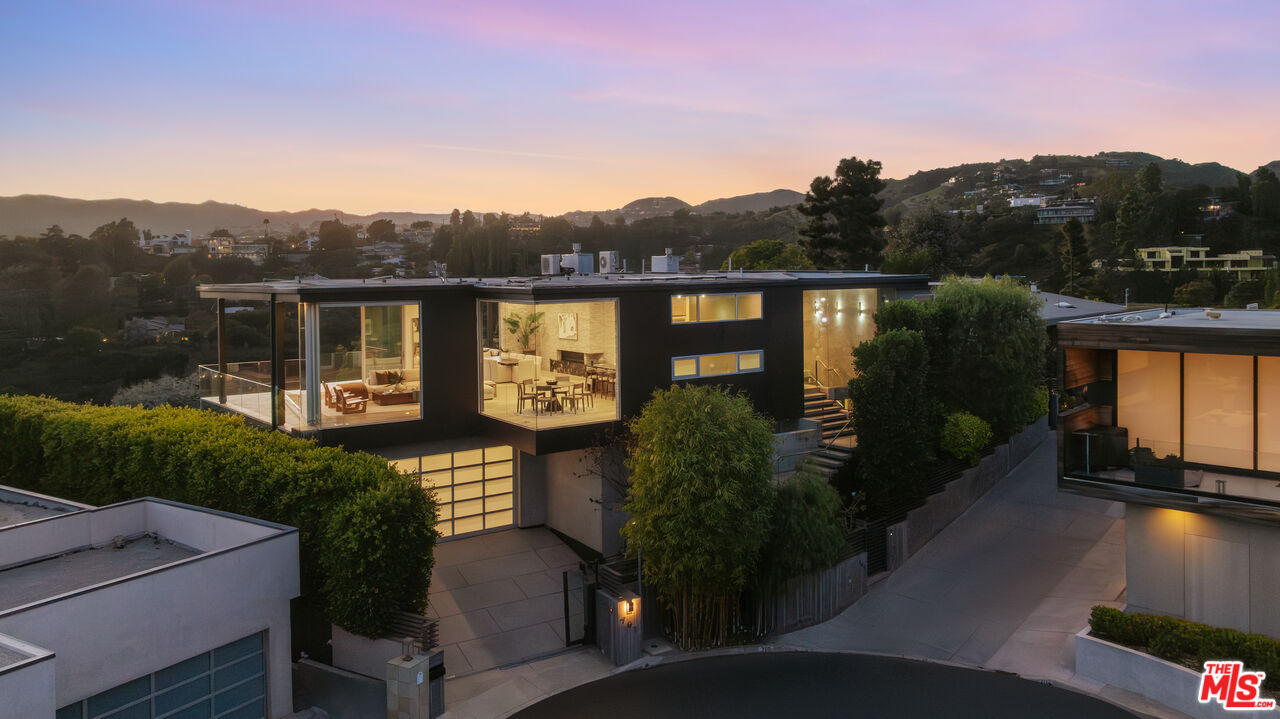 Perched at the pinnacle of one of Brentwood's most coveted cul-de-sacs, this custom modern trophy estate is nothing short of a masterpiece - where golden California light pours through soaring floor-to-ceiling glass, wrapping every inch of interior in a warm, cinematic glow that has to be seen to be believed. Commanding breathtaking panoramic views stretching from Downtown Los Angeles to the coastline and Crestwood Hills, the architecture dissolves the line between indoors and out, with disappearing glass panels that seamlessly marry the dramatic wrap-around deck, lush surroundings, and impeccably curated interiors into one intoxicating living experience. Entertain in the sleek chef's kitchen and sprawling dining room, then let the sun-drenched views from the oversized living room take your breath away. The primary suite is a private sanctuary, complete with a spa-inspired bath and walk-in closet, while four additional en-suite bedrooms offer the same effortless luxury. Descend to the lower level to discover a state-of-the-art home theater, glass-enclosed wine room, and gym. Outside, a dramatic infinity pool reflects the sky like a mirror, flanked by a lush grassy pad perfectly suited for soaking in the Southern California sun. This is Brentwood at its most extraordinary - a luminous trophy that lives as beautifully as it photographs.