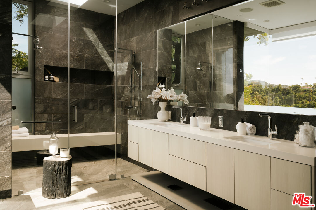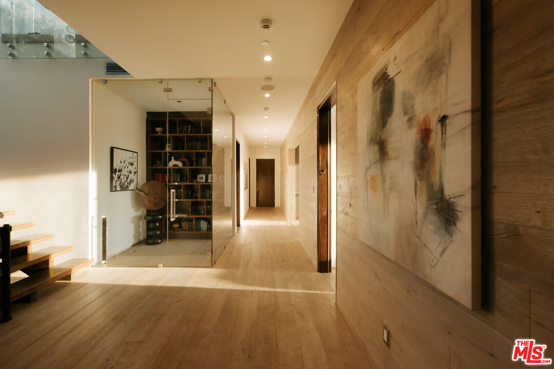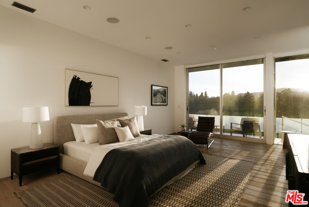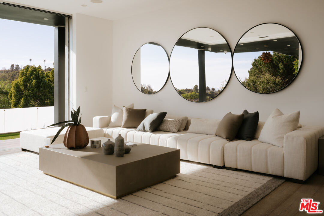 Perched at the pinnacle of one of Brentwood's most coveted cul-de-sacs, this custom modern trophy estate is nothing short of a masterpiece - where golden California light pours through soaring floor-to-ceiling glass, wrapping every inch of interior in a warm, cinematic glow that has to be seen to be believed. Commanding breathtaking panoramic views stretching from Downtown Los Angeles to the coastline and Crestwood Hills, the architecture dissolves the line between indoors and out, with disappearing glass panels that seamlessly marry the dramatic wrap-around deck, lush surroundings, and impeccably curated interiors into one intoxicating living experience. Entertain in the sleek chef's kitchen and sprawling dining room, then let the sun-drenched views from the oversized living room take your breath away. The primary suite is a private sanctuary, complete with a spa-inspired bath and walk-in closet, while four additional en-suite bedrooms offer the same effortless luxury. Descend to the lower level to discover a state-of-the-art home theater, glass-enclosed wine room, and gym. Outside, a dramatic infinity pool reflects the sky like a mirror, flanked by a lush grassy pad perfectly suited for soaking in the Southern California sun. This is Brentwood at its most extraordinary - a luminous trophy that lives as beautifully as it photographs.