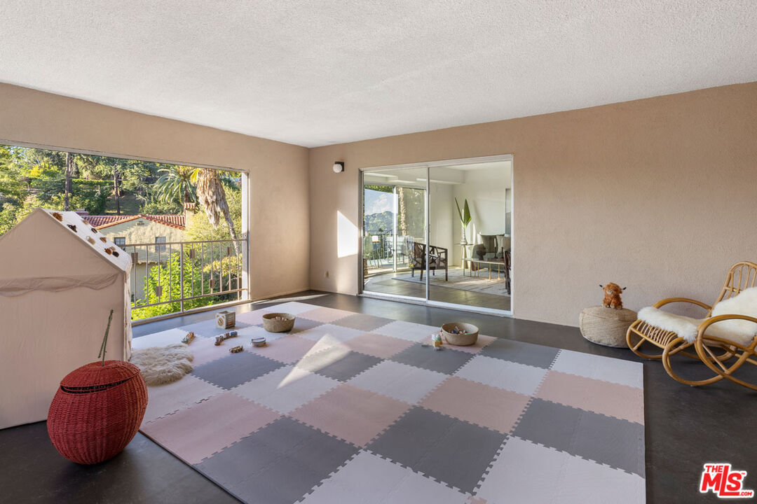 Tucked away in the serene hills of Glendale's coveted Rossmoyne neighborhood, this spacious mid-century home is a light-filled sanctuary with spectacular hillside views. Built in 1965 and mindfully updated, the residence spans two levels, with large windows and sliding glass doors seamlessly bringing the outdoors in. The bright and open living room is anchored by a fireplace; the kitchen with generous storage opens directly to the dining area. Three bedrooms include a primary suite with an en-suite bath; on the lower level, both bedrooms enjoy outdoor access. A den with a wet bar adds flexibility for a media room or creative space, and flow is easy to the large deck, a breezy spot for taking in the stunning vistas and colorful sunsets. Multiple patios create a tranquil setting for relaxing and entertaining amid lush natural surroundings. The great location puts you close to Verdugo Park and vibrant dining and shopping options, including the Americana at Brand and the upcoming Erewhon.