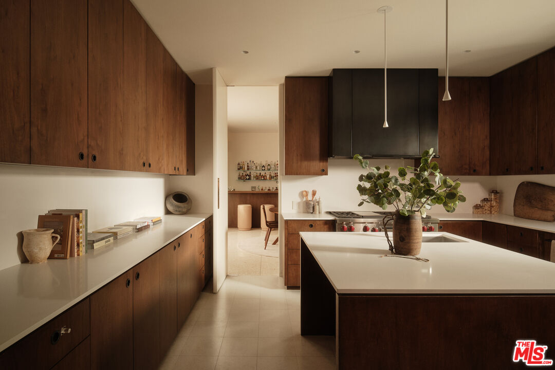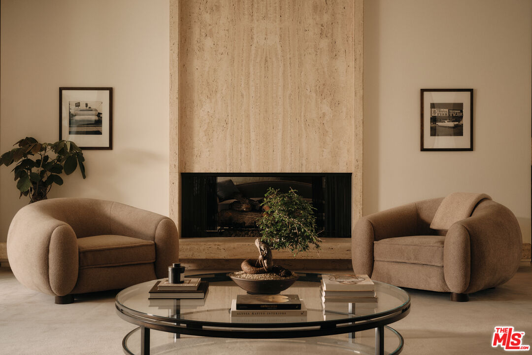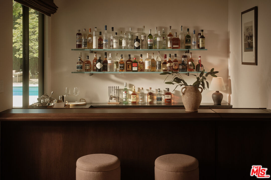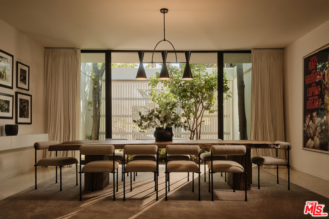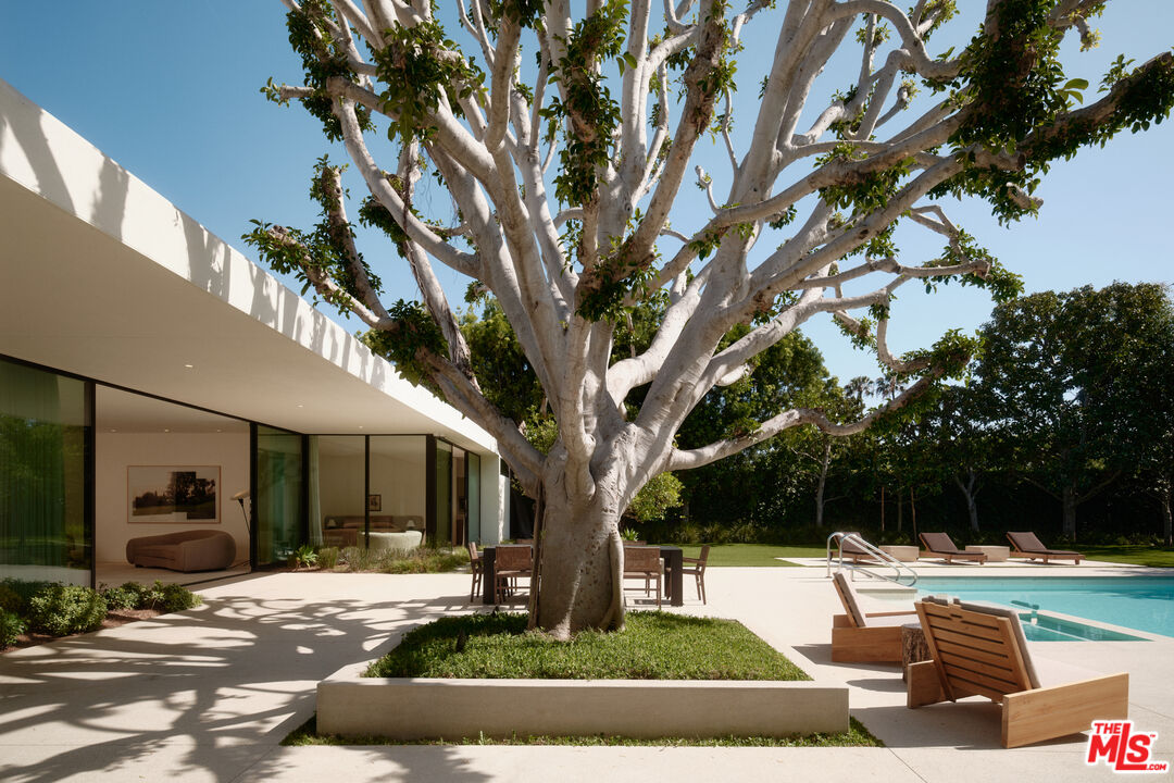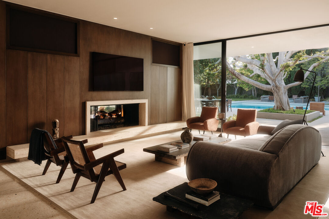 Discreetly nestled behind gates sits this light and bright iconic one-story mid-century home situated on a spectacular 27,800 sf lot. Designed in 1961 by Daniel Dworsky, the man behind Bradley's International Terminal at LAX, UCLA's Drake Stadium and the Federal Reserve Bank in Los Angeles. This flawless floor plan with high ceilings throughout was gutted and reimagined by Waldo Fernandez and has all the finishes appropriate for today's lifestyle. A double-door entry welcomes you into this 4-bedroom, 5-bath home, plus an attached gym/guest room. Floor-to-ceiling glass flanks the formal dining area, and the original double-sided fireplace anchors the living room and family room. Great walls for art, open floor plan, and terrazzo and hardwood floors compliment this extremely rare offering. A separate full bar and gourmet kitchen are perfect for large scale entertaining. Walls of glass overlook a park-like backyard, stunning pool, and outdoor kitchen.